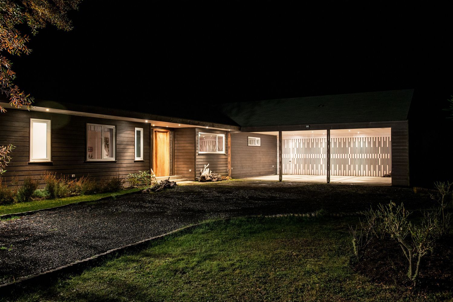Głównym założeniem projektowym było stworzenie przestronnego, jasnego domu dla licznej rodziny, umożliwiającego swobodne funkcjonowanie zarówno we wnętrzach, jak i na zewnątrz, co ma szczególne znaczenie przy zmiennej pogodzie regionu. Dom podzielono na dwie przenikające się bryły w kształcie litery „T”, co pozwoliło maksymalnie otworzyć budynek na otaczający krajobraz. W jednej części zaplanowano strefę prywatną z sypialniami, natomiast w drugiej znajdują się przestrzenie wspólne i użytkowe. Projekt uwzględnia także możliwość rozbudowy – w kolejnym etapie przewidziano trzy dodatkowe sypialnie oraz powiększenie tarasu.