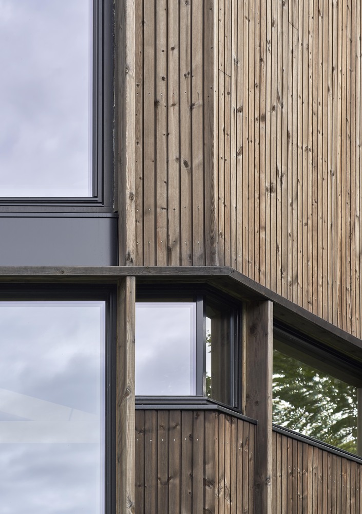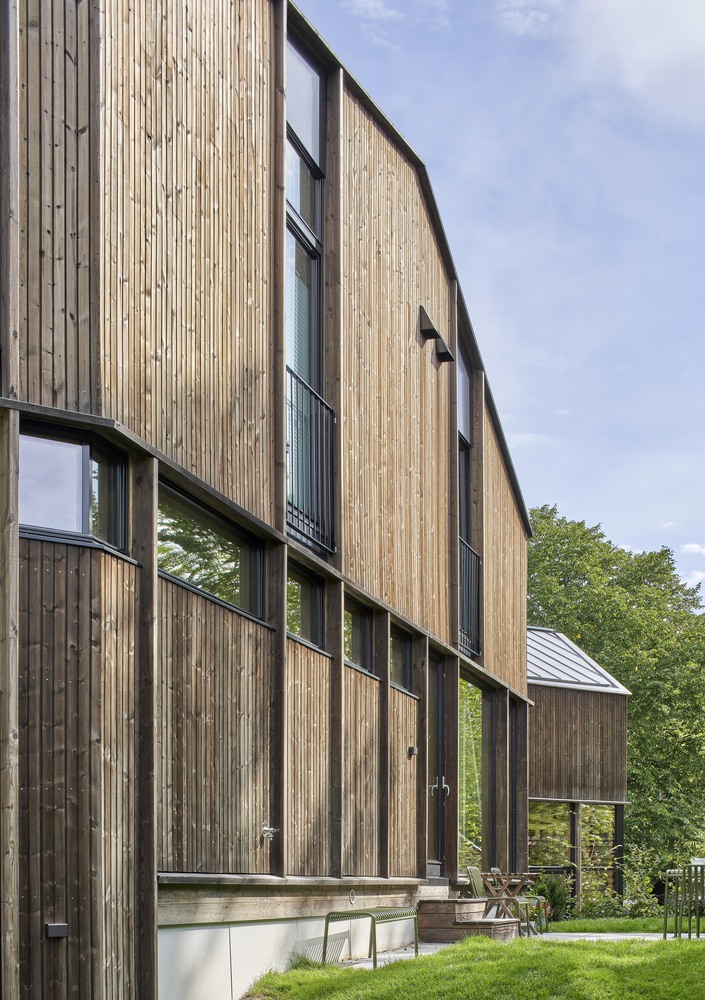Szczególnie wyróżniającą się cechą Risalleen Houses jest drewniana konstrukcja, która stanowi centralny element atmosfery budynków. Zewnętrzne elewacje domów pokryto pionowym klejonym drewnem bukowym Baubuche, które podkreśla naturalny charakter obiektów, a jednocześnie doskonale komponuje się z nowoczesną architekturą.