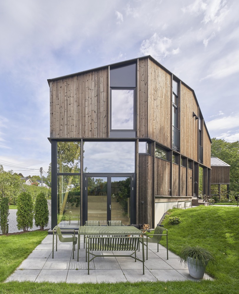 Projekt Risalleen Houses zakładał renowację istniejącej bryły oraz stworzenie w jej miejscu dwóch nowoczesnych domów jednorodzinnych. Nowe budynki, inspirowane stylem nowoczesnej stodoły, wyróżniają się dwuspadowymi dachami i elegancką formą. Domy zostały zaprojektowane z uwzględnieniem charakterystyki okolicy, koncentrując się na wkomponowaniu w naturalne otoczenie i tworzeniu przestrzeni z widokiem na naturę.