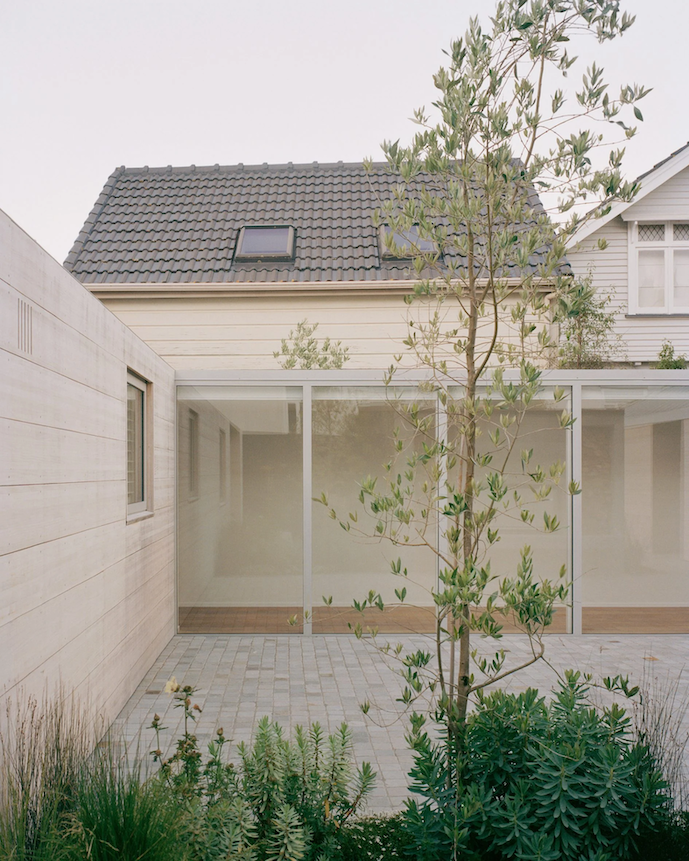 Seear-Budd Ross, firma odpowiedzialna za projekt, podzieliła RK Residence na dwie wyraźne bryły, połączone przez przeszklony łącznik. Taki podział odpowiada różnym wymaganiom i zapewnia zróżnicowaną funkcjonalność domu. Jedna bryła zawiera część dzienną oraz garaż, podczas gdy druga jest bardziej prywatna i obejmuje sypialnie i gabinet. „Dom podzielono na dwa pawilony, salonowy i sypialny, z dziedzińcem i przeszklonym łącznikiem pośrodku” – wyjaśnia Thomas Seear-Budd, założyciel studia. Celem było stworzenie przestrzeni, która stopniowo staje się bardziej prywatna, a zarazem otwiera się na widok na plażę i otaczający krajobraz.