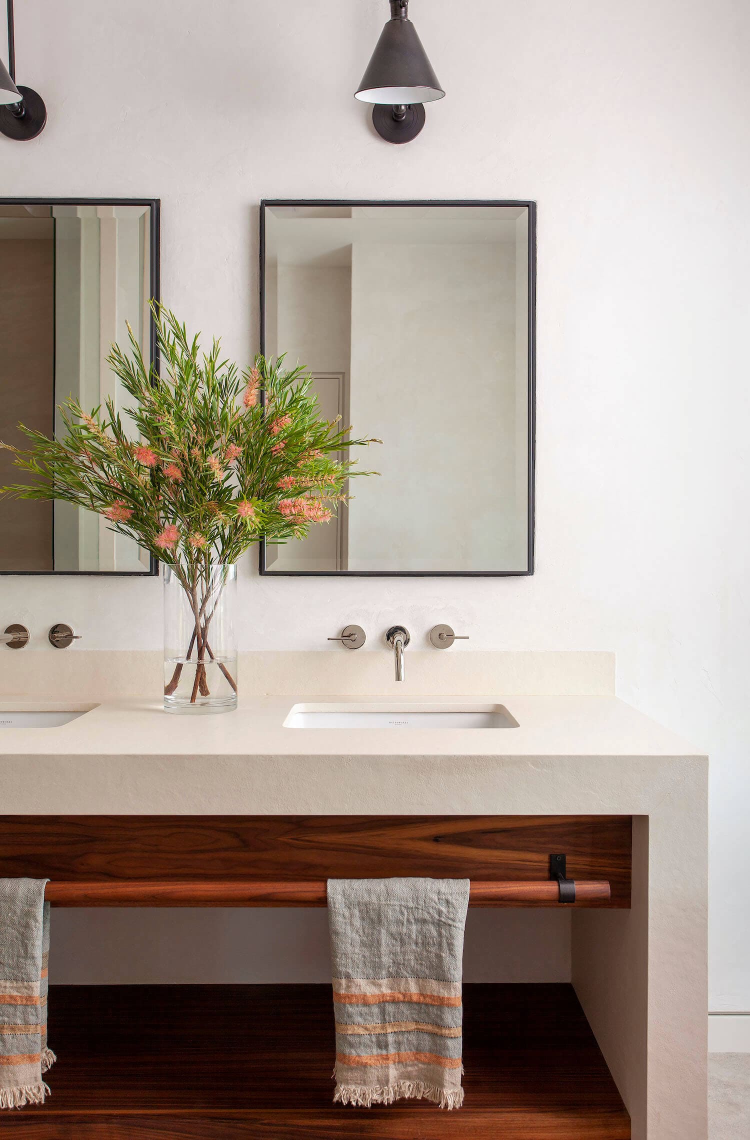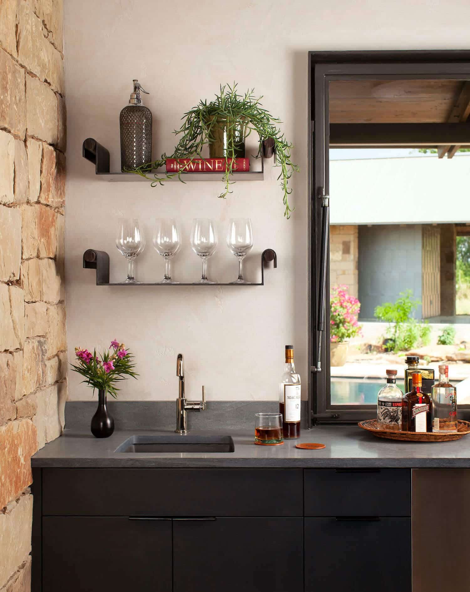We wnętrzach dominuje naturalność i ponadczasowość materiałów. Projektanci z Britt Design Group użyli drewna, kamienia, betonu, stali i tynku, aby stworzyć przestrzeń elegancką, ale nieprzytłaczającą – taką, która nie konkuruje z pięknem otoczenia. Zadaszone werandy, strefy relaksu z kominkiem i podwójnym telewizorem, jadalnia z barem otwieranym na zewnątrz oraz liczne przestrzenie półotwarte pozwalają w pełni cieszyć się życiem na świeżym powietrzu. To dom stworzony z myślą o komfortowym życiu w zgodzie z naturą, w duchu minimalizmu i luksusu, z wyraźnymi inspiracjami architekturą wiejską i nowoczesną stodołą.