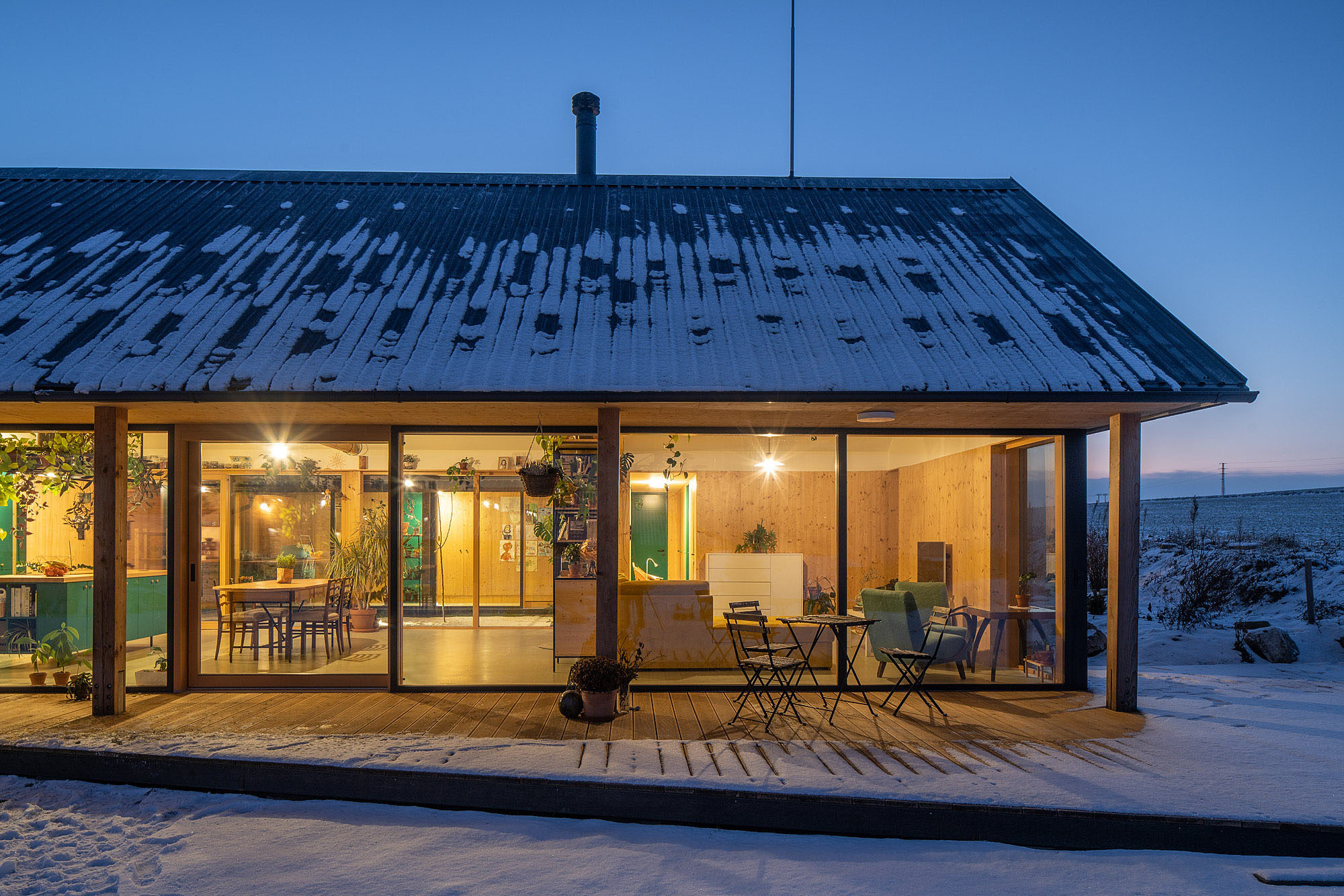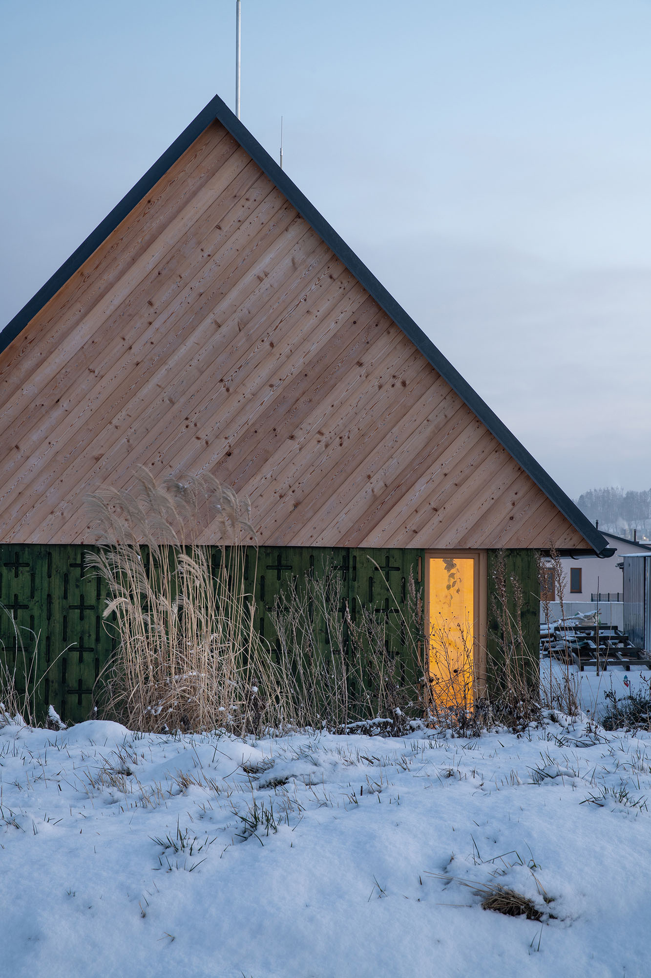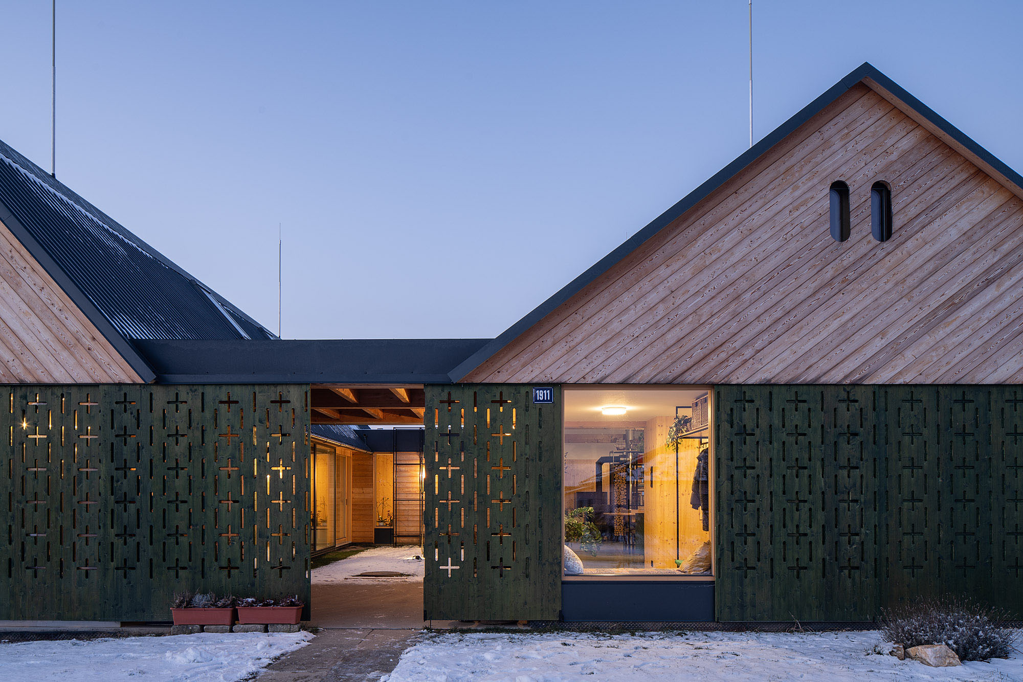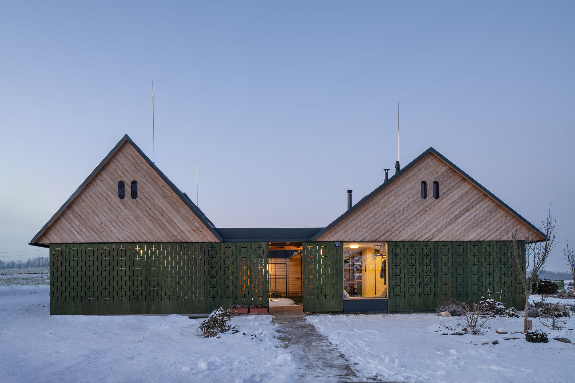 Projekt opiera się na lokalnych, ekologicznych materiałach, wspiera zrównoważony rozwój i dobry mikroklimat mieszkalny. Dzięki dobrze zaprojektowanemu dachowi i przeszklonym ścianom, dom minimalizuje zużycie energii i wtapia się w krajobraz Kotliny Humpoleckiej, przy jednoczesnym zachowaniu indywidualnego charakteru.