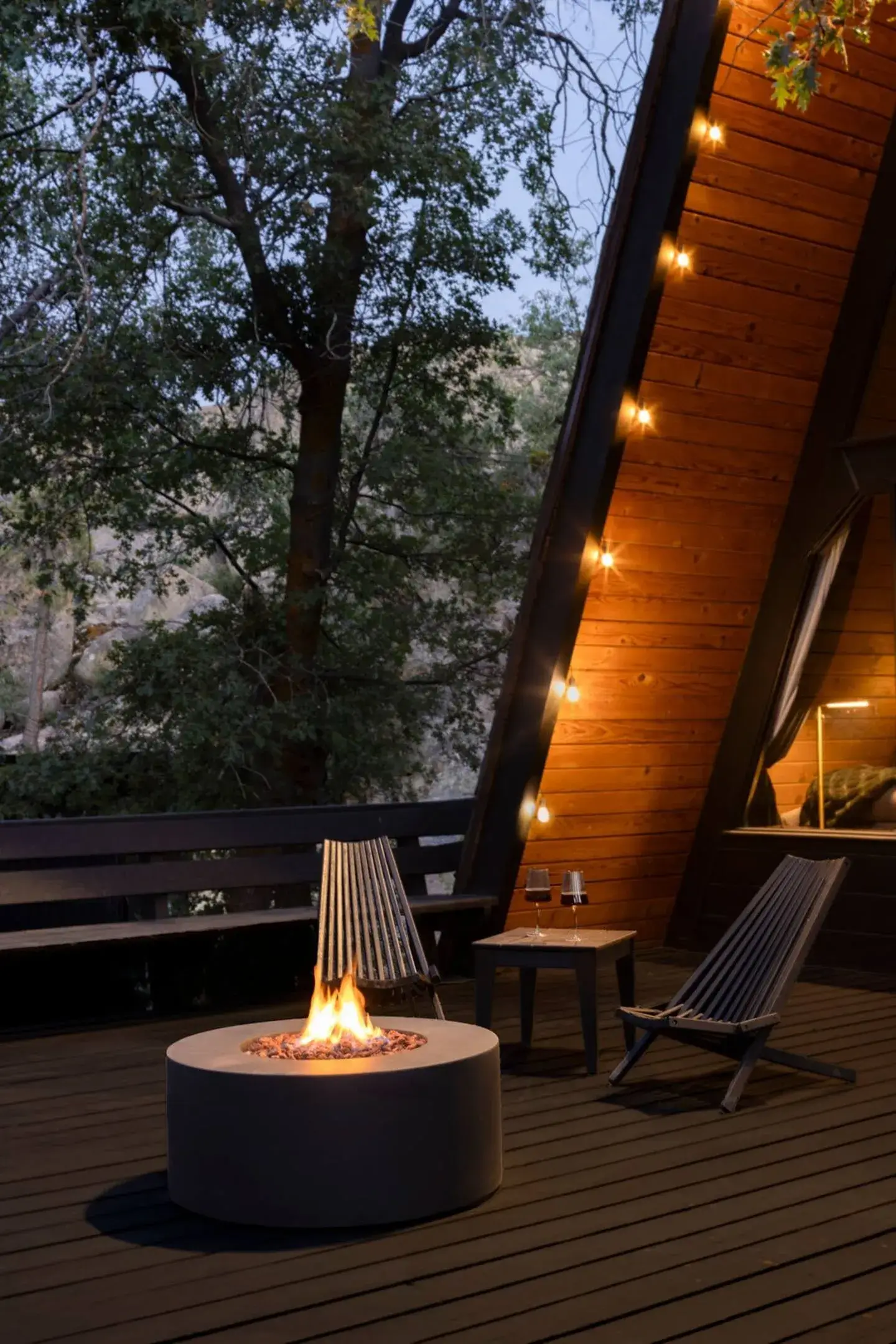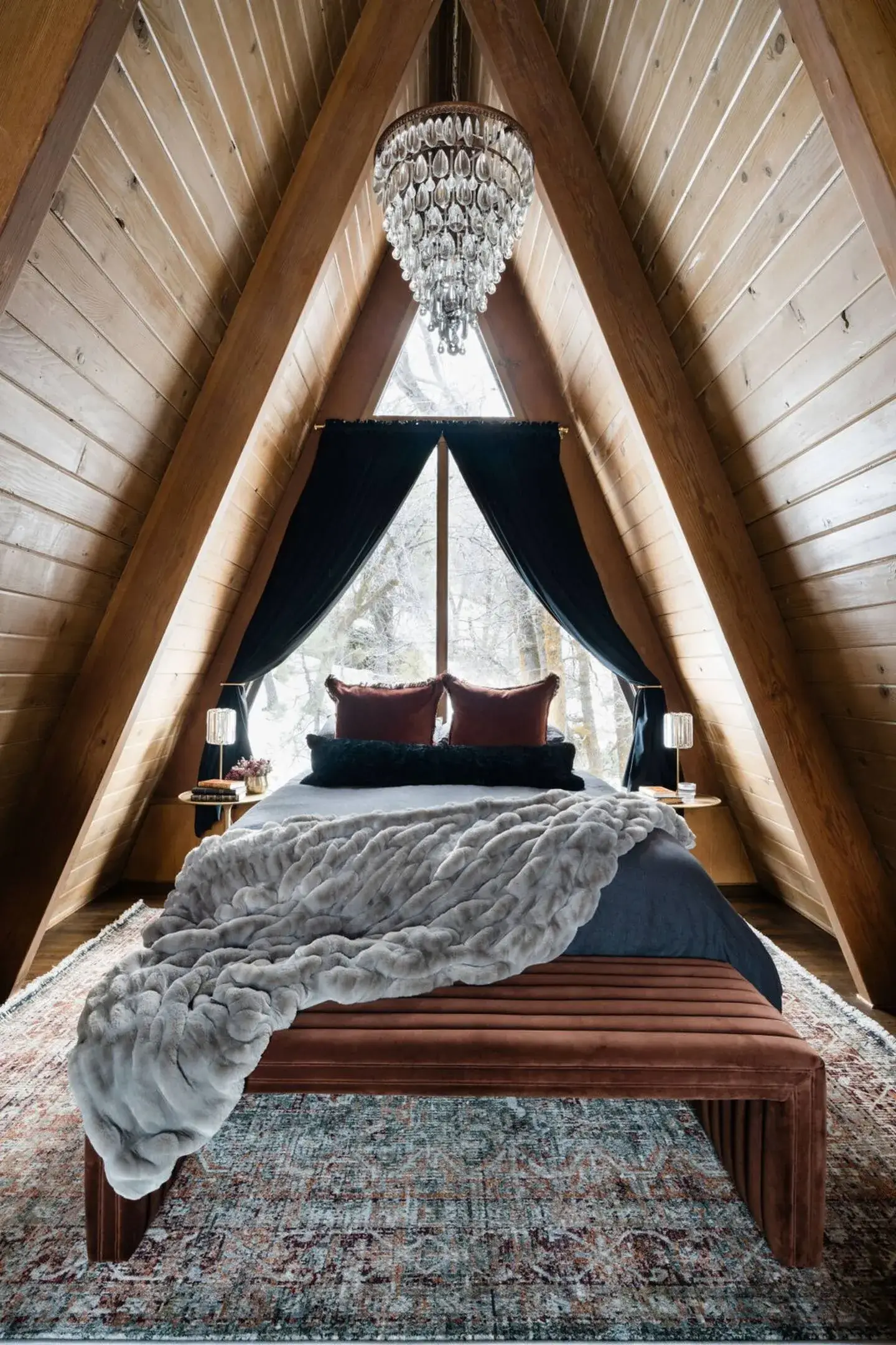 Projektantka Jacqueline Blum i jej mąż Brent pracowali nad wieloma przebudowami domów — od wiktoriańskich, przez hiszpańskie, po kwintesencję bungalowów na plaży. „Renowacja i projektowanie to nasz dziwny język miłości” żartuje projektantka. Para mieszka teraz w San Diego i od jakiegoś czasu szukała domku w górach San Bernardino, gdy w drodze na rodzinne wakacje w Joshua Tree zobaczyli tę ofertę. Przepiękny A-Frame. Natychmiast się odwrócili, żeby zobaczyć ją na własne oczy. Dom z 1955 roku został zbudowany ręcznie przez nauczyciela stolarstwa w szkole średniej oraz jego przyjaciół i rodzinę. Jest rzekomo najstarszym domem w kształcie litery A w okolicy.
