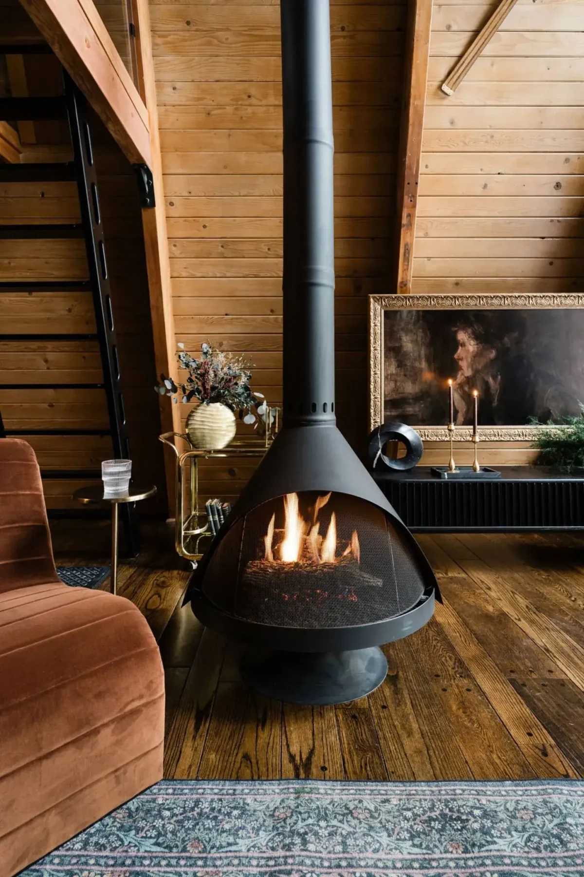 Blum chciała wykorzystać mocne strony domu, takie jak istniejące szerokie podłogi z desek i ściany wyłożone drewnem. „Nie chcieliśmy całkowicie tworzyć czystej karty” mówi Blum. Rozpoczęła proces tak, jak zrobiłaby to dla każdego klienta, wymyślając cel, który miałoby pokierować projektem. „Miało to być miejsce, w którym chcesz, aby czas się zatrzymał”.