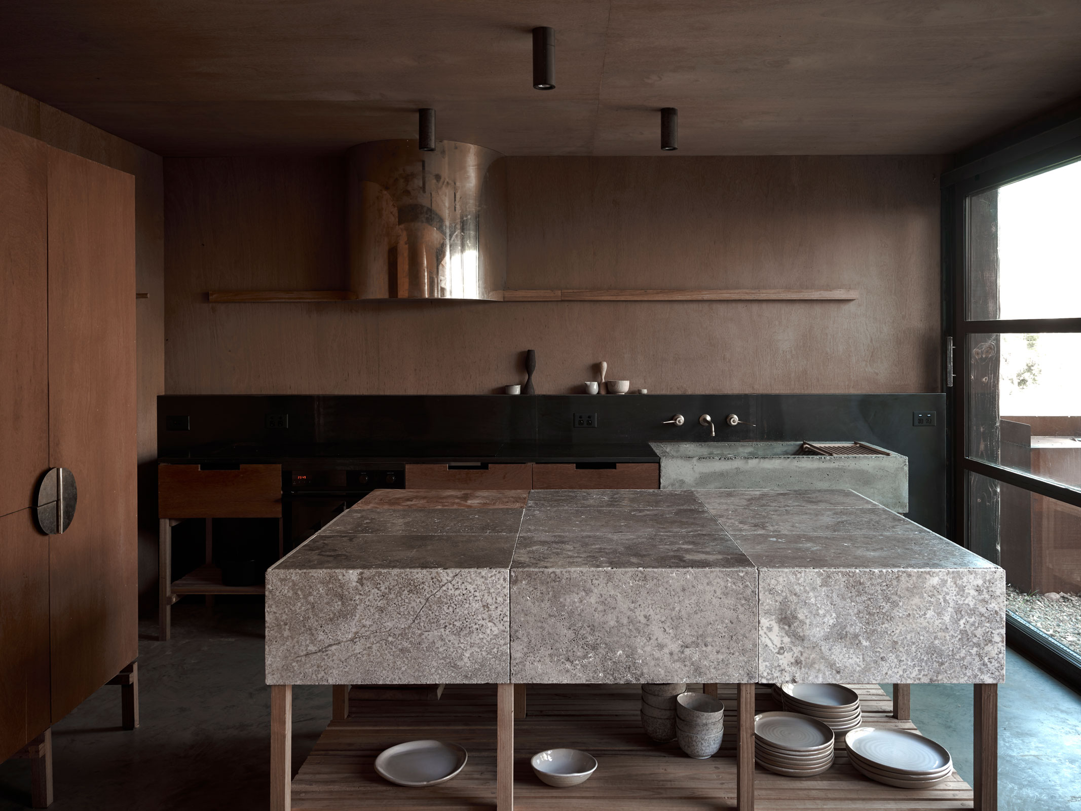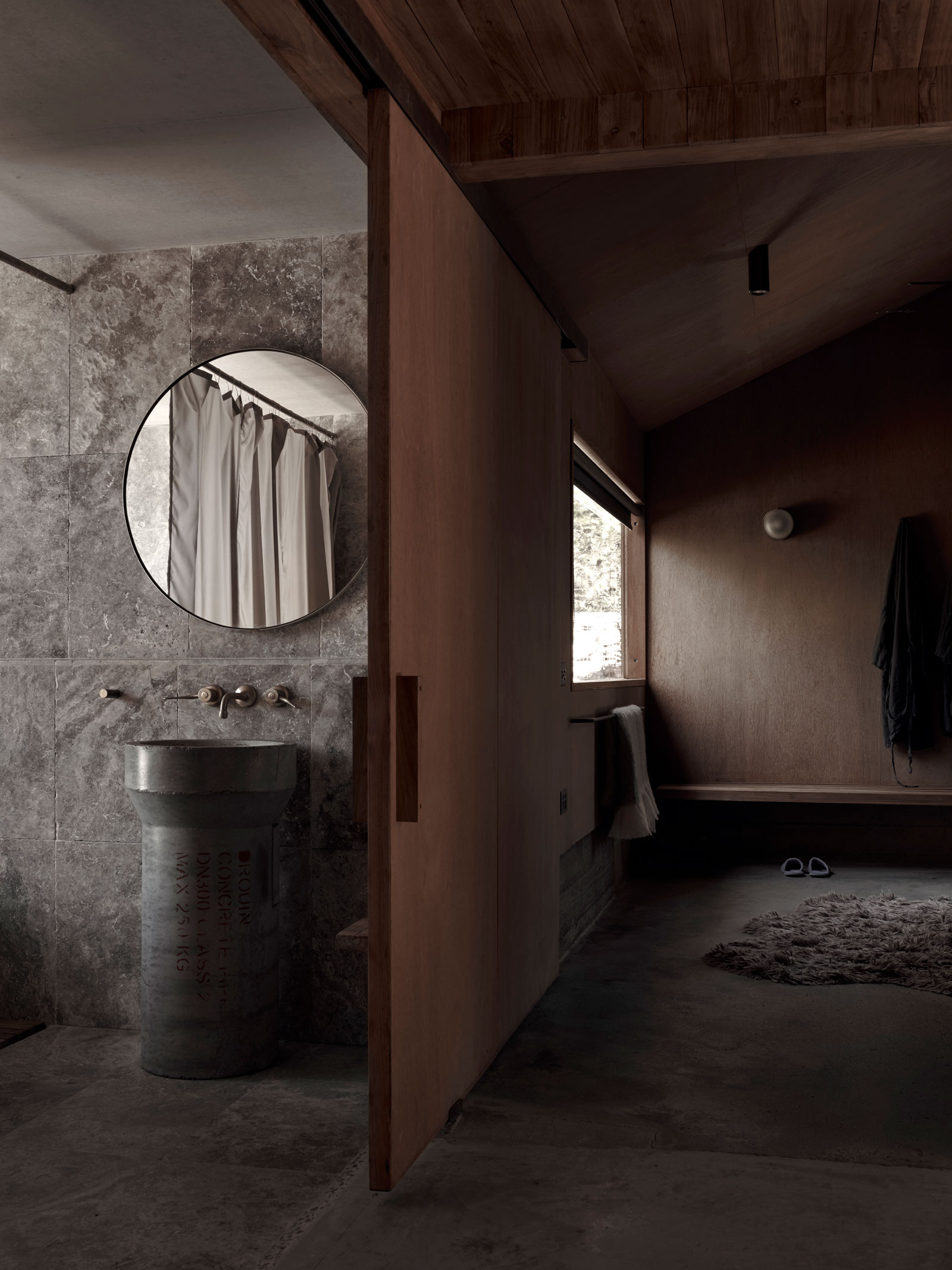 Ross Farm nie jest typowym ośrodkiem wypoczynkowym – to raczej laboratorium idei i emocji, w którym każde pomieszczenie jest efektem eksperymentu z formą, teksturą i światłem. Andrea Moore traktuje projekt jak otwarty proces, w którym architektura powstaje poprzez odkrywanie, a nie przez powielanie. Wspólnie z lokalnymi rzemieślnikami stworzyła meble, lampy, umywalki i elementy wyposażenia specjalnie na potrzeby tego miejsca.