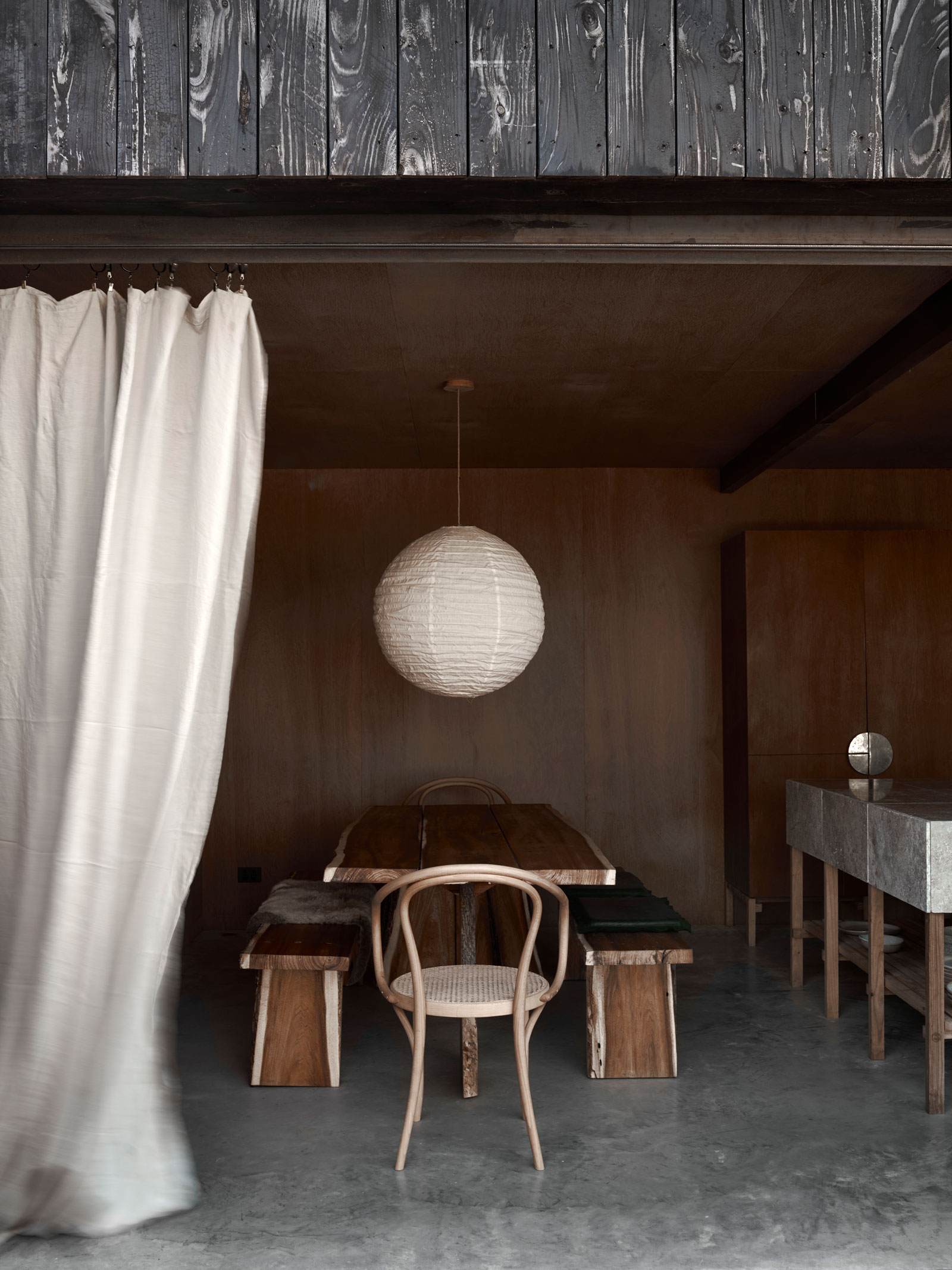 Ostatnim etapem była realizacja The Dairy – trzech dawnych pomieszczeń mleczarni połączonych w kształcie litery L. Ta część jest najbardziej nastrojowa: ciemniejsze drewno, przytłumione światło i japońskie inspiracje nadają jej intymny, niemal medytacyjny klimat.