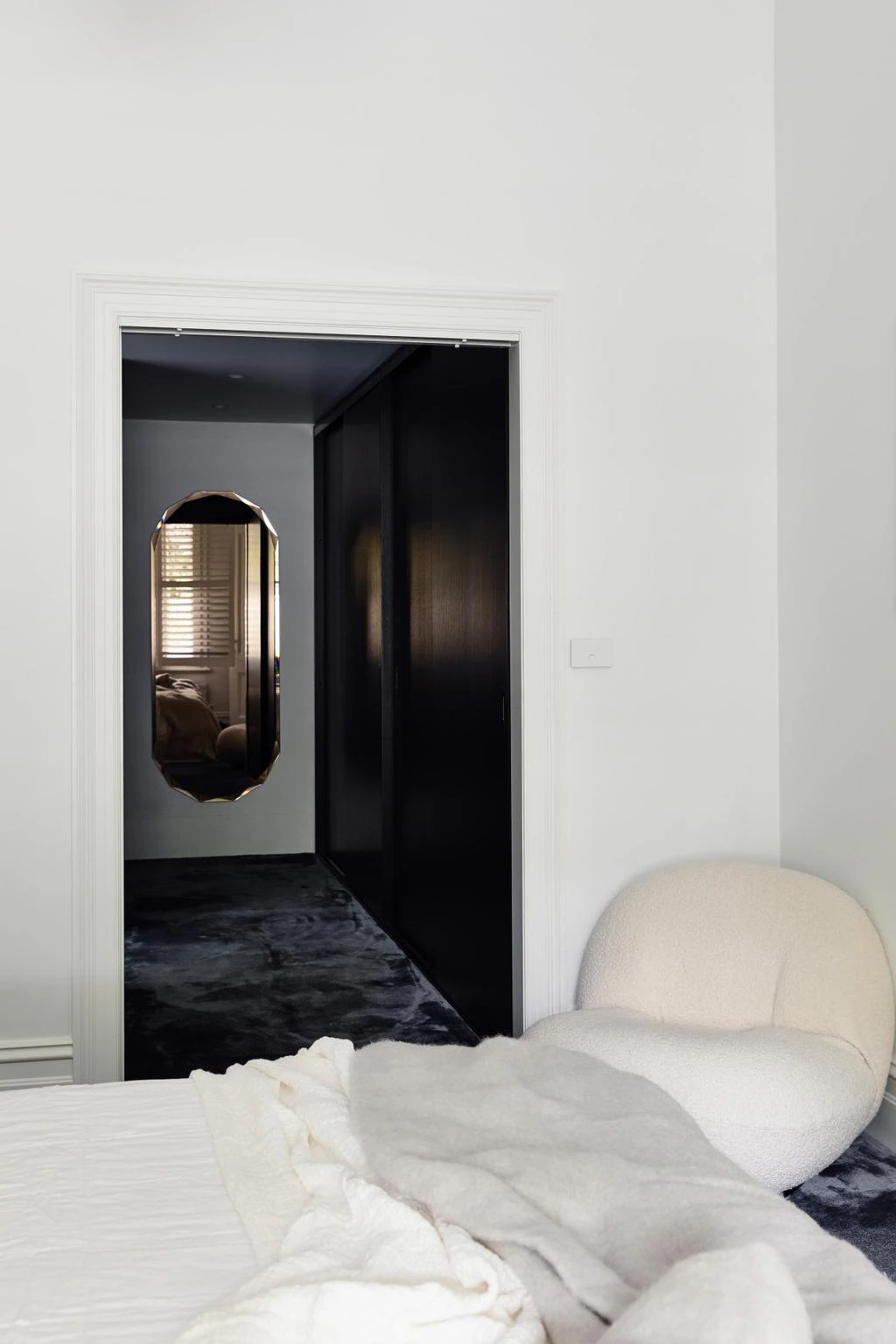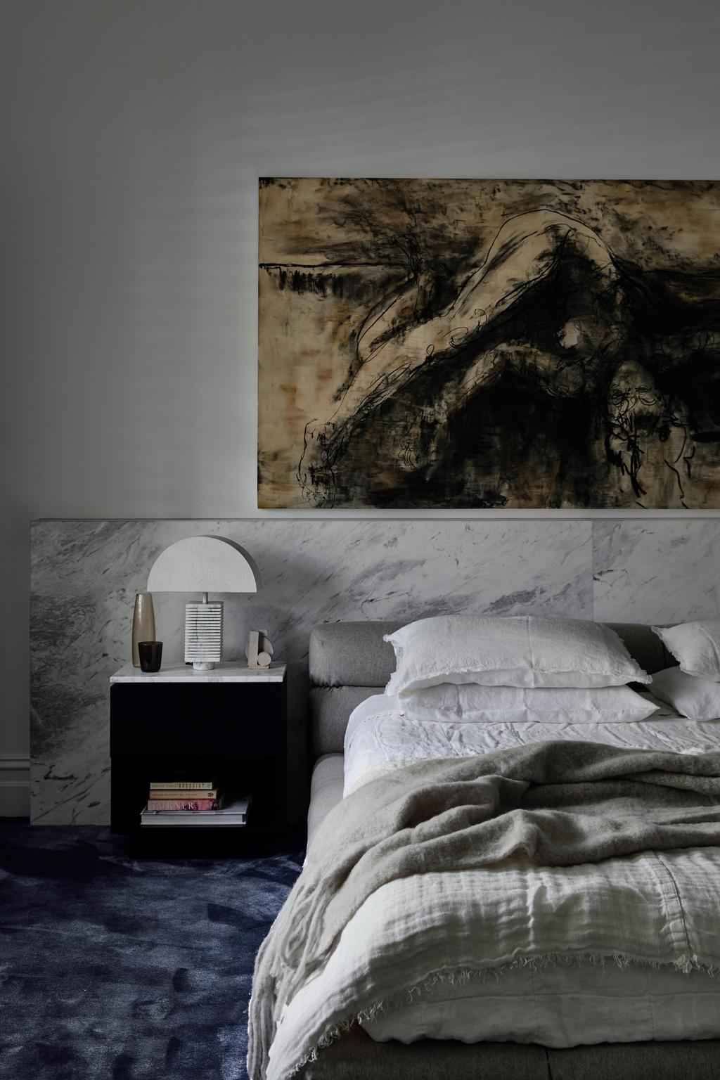 Sypialnia główna z widokiem na korony drzew, luksusowe łazienki z marmurem Elba Blue i detale takie jak rzeźbione stoliki nocne czy kafle INAX od Artedomus tworzą spójną, harmonijną całość. Projekt Pete’a Kennona to nie tylko dom – to architektoniczna opowieść o rodzinie, ich stylu życia i potrzebie połączenia estetyki z funkcjonalnością.
