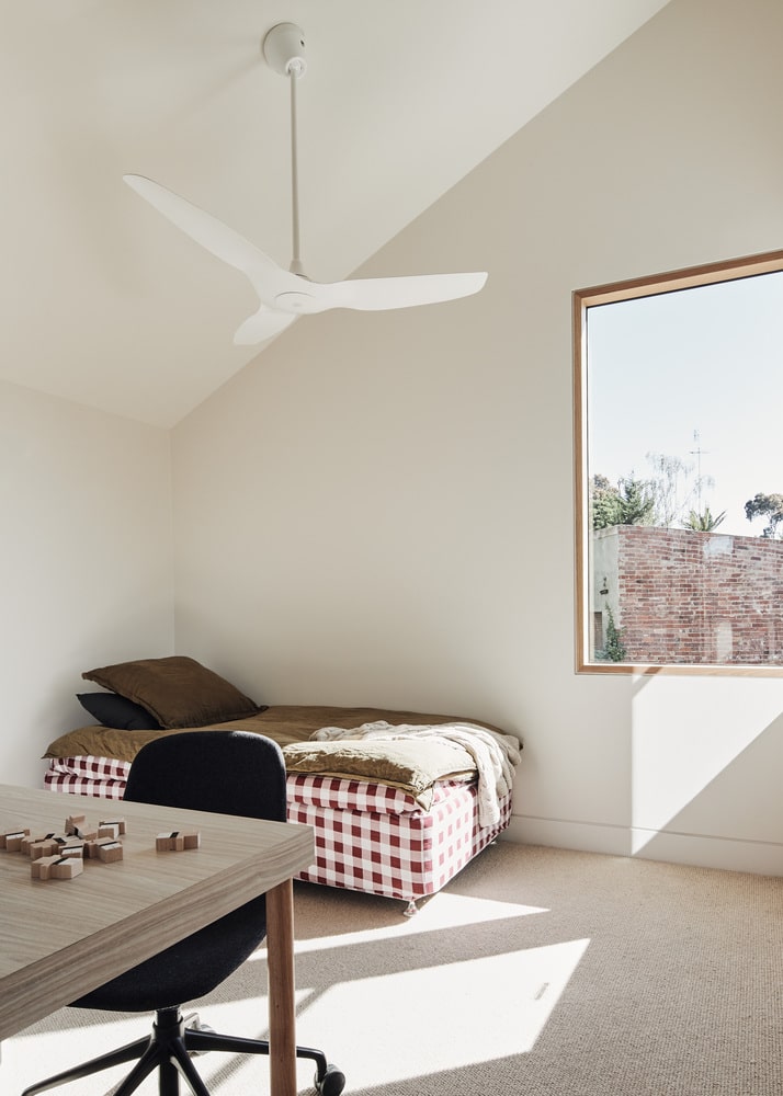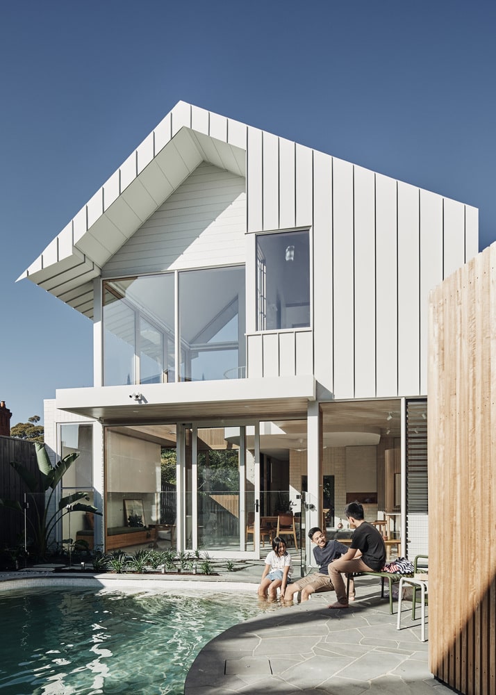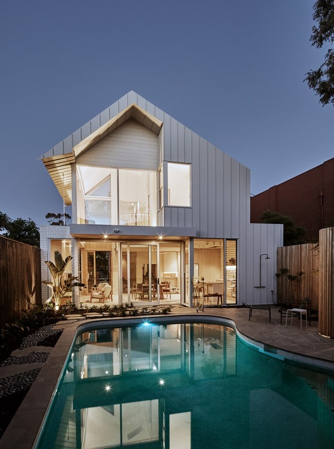 Zespół Timmins+Whyte Architects z australijskiego Collingwood postanowił usunąć wcześniejsze rozszerzenie budynku i zaprojektować je na nowo – jako dużą, przeszkloną strefę dzienną o otwartym planie. Główna ściana została całkowicie przeszklona od podłogi po sufit, tworząc wrażenie przezroczystej tafli, która zaciera granice między wnętrzem a ogrodem. Nowy projekt nie tylko zalewa wnętrze światłem, ale też wykorzystuje techniki pasywnego chłodzenia, istotne w klimacie Australii. Inspiracją dla formy bryły były tradycyjne japońskie latarnie tōrō – symbolicznie wprowadzające światło i spokój.