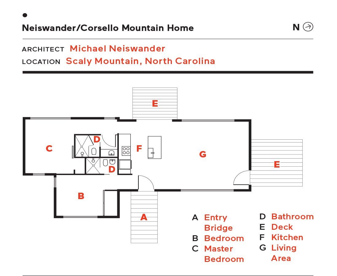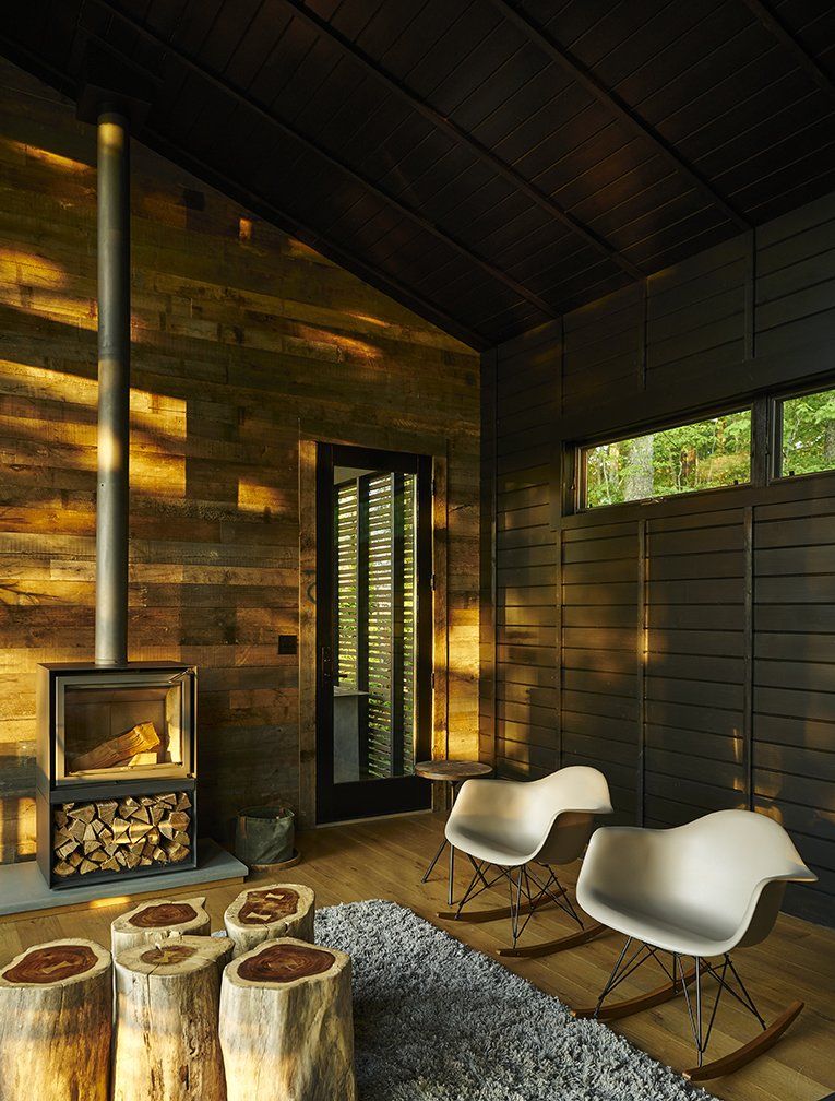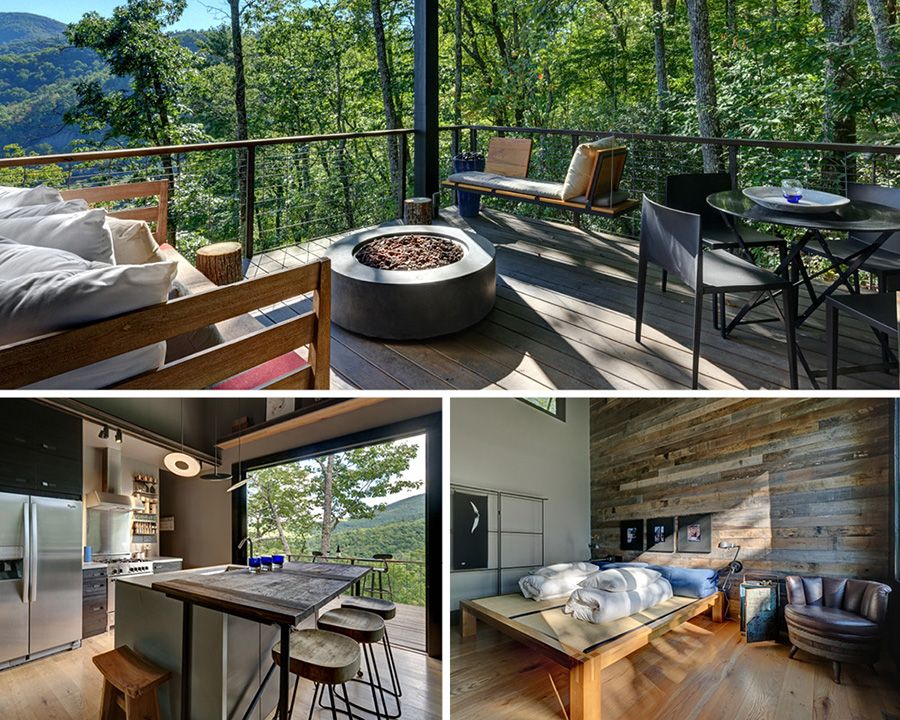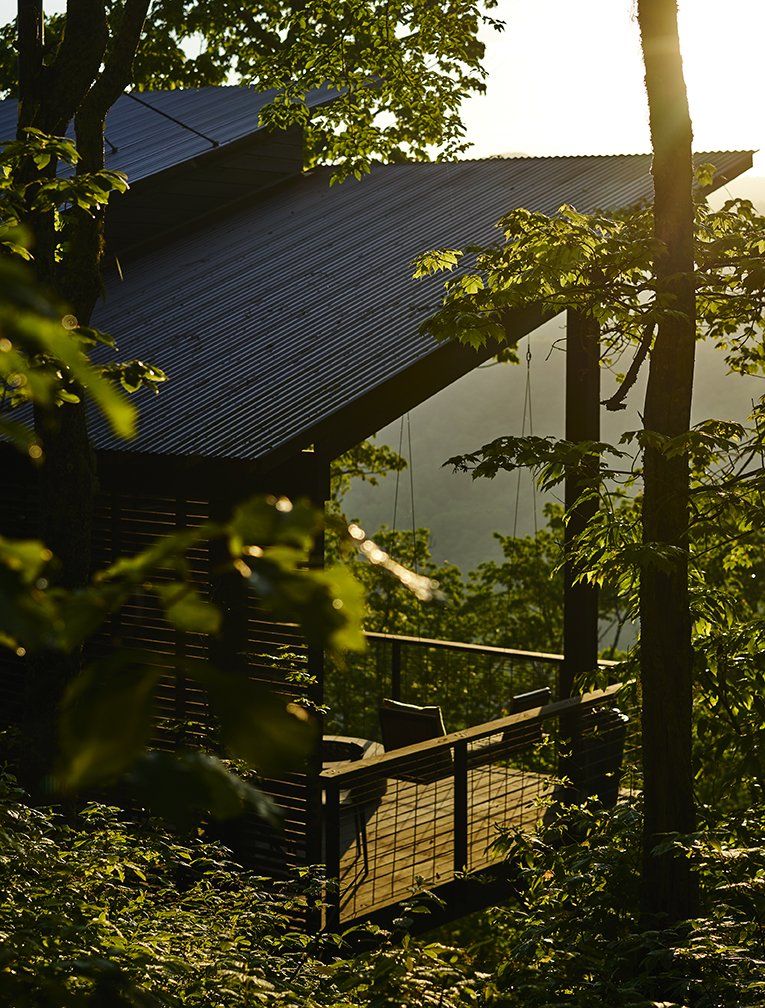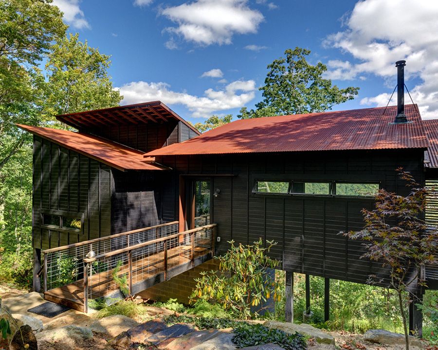 Całoroczny domek weekendowy położony wysoko w górach Karoliny Północnej, na wysokości około 1100 m n.p.m., to prywatna oaza spokoju dla dwóch mieszkańców Atlanty – architekta Michaela Neiswandera z pracowni ASD/SKY oraz adwokata Nicka Corsello. Niewielki dom o powierzchni około 90 m² został zaprojektowany zgodnie z filozofią zen i inspirowany japońskimi bungalowami, które właściciele poznali podczas podróży do Kioto. Prosta, betonowo-drewniana bryła, czarne elewacje nawiązujące do techniki shou sugi ban oraz oszczędna forma sprawiają, że dom harmonijnie wpisuje się w górski krajobraz. Ta współczesna architektura domu łączy japoński minimalizm, rustykalny charakter i nowoczesne rozwiązania, wpisując się w nurt, który często reprezentuje także nowoczesna stodoła – bliskość natury, funkcjonalność i szczerość materiałów.