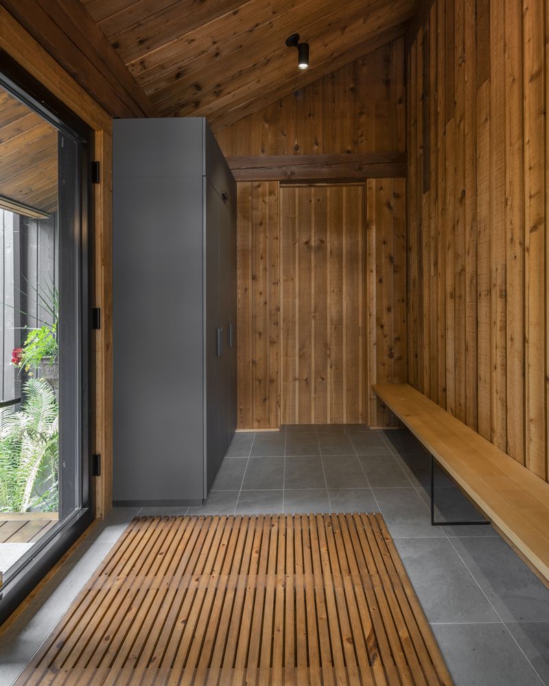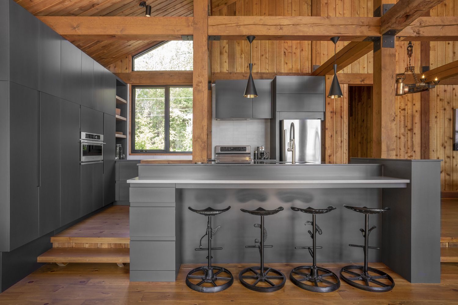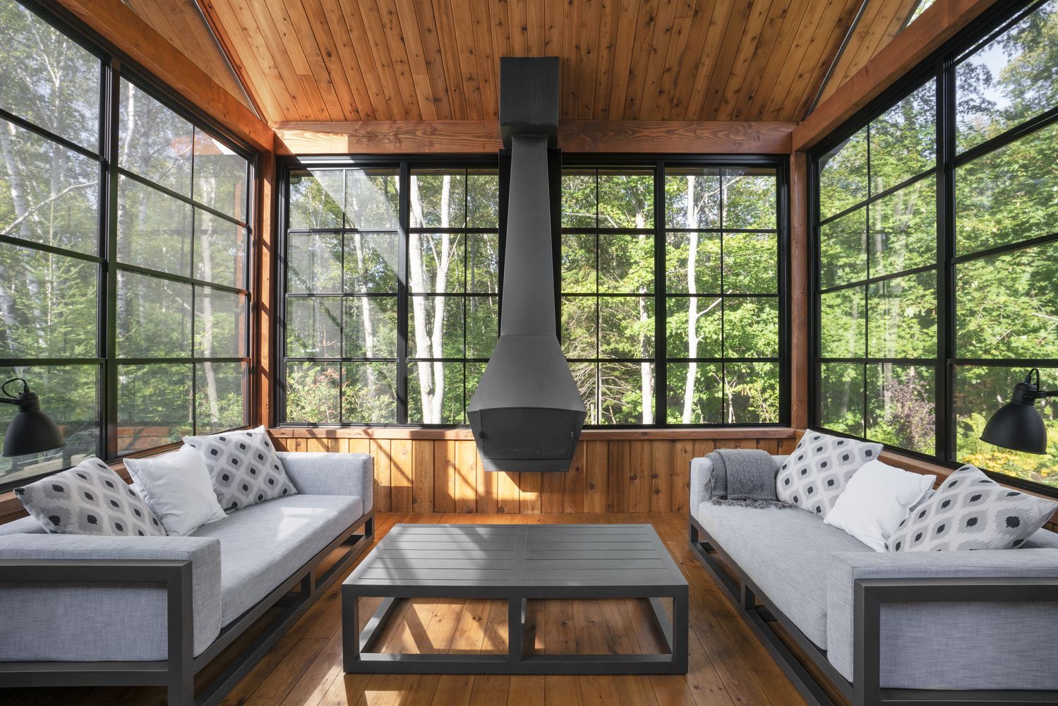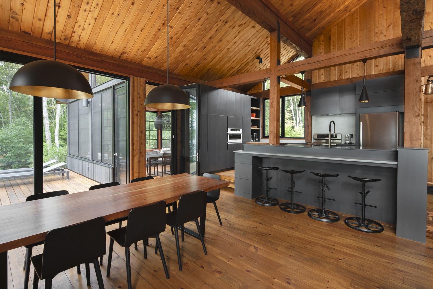 Dom drewniany stojący w gminie Saint Donat w kanadyjskiej prowincji Quebec, zbudowano ponad 50 lat temu. Wymagał wielu modyfikacji, by mógł służyć właścicielom równie wygodnie w lecie i w zimie. Właściciele chcieli poprawić jego właściwości energetyczne, idąc z duchem współczesnych czasów. Modernizacji i rozbudowy domu podjął się architekt Cardin Julien. Zdecydował się na utrzymanie obecnego charakteru budynku, naśladując jego proste geometrycznego kształty oraz wykorzystując w projekcie drewno i inne surowe materiały, takie jak kamień, szkło i stal.