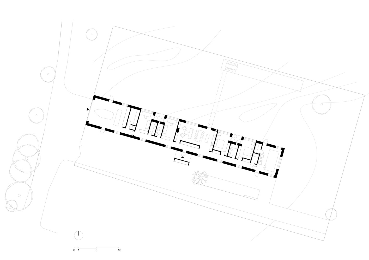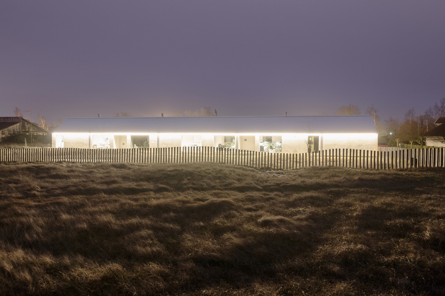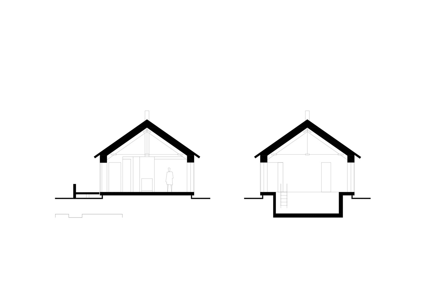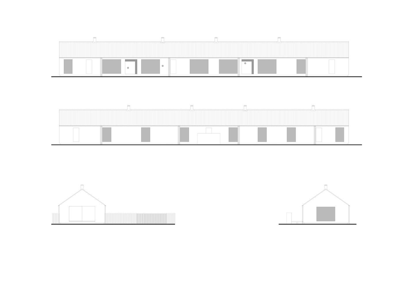 Wnętrze domu charakteryzuje się otwartą przestrzenią biegnącą przez całą długość budynku, tworząc wrażenie przestronności i intymności. Przeszklone drzwi prowadzą na ogród, zapewniając płynne połączenie z naturą. Dom zbudowany jest z betonu komórkowego, który zapewnia odporność na silne wiatry charakterystyczne dla tego regionu, a także pozwala na minimalną ingerencję w strukturalną izolację. Całość projektu przypomina tradycyjne domy rybackie z okolicy, ale z nowoczesnym podejściem do konstrukcji i designu.