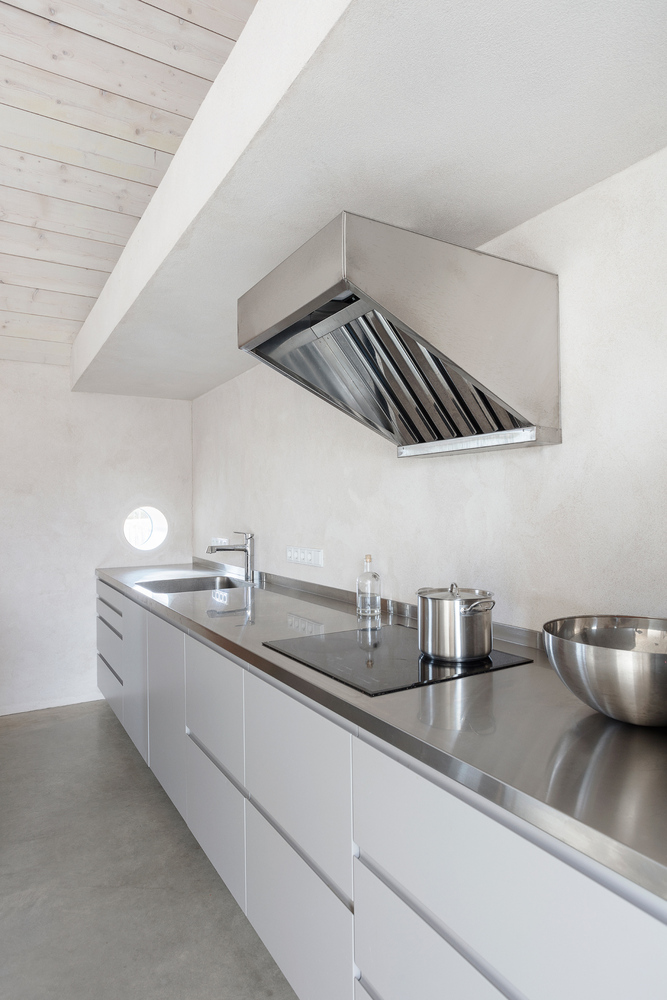 Wybór betonu komórkowego do budowy Salt House nie jest przypadkowy. Dzięki swojej grubości 500 mm, materiał ten zapewnia wymaganą wiatroszczelność bez dodatkowej izolacji cieplnej. Wnętrze domu, mimo swojej surowości, jest bardzo funkcjonalne i komfortowe, a dynamiczny układ przestrzeni, pełen otwartych i zamkniętych stref, stwarza unikalny klimat i umożliwia podziwianie morza z różnych perspektyw.