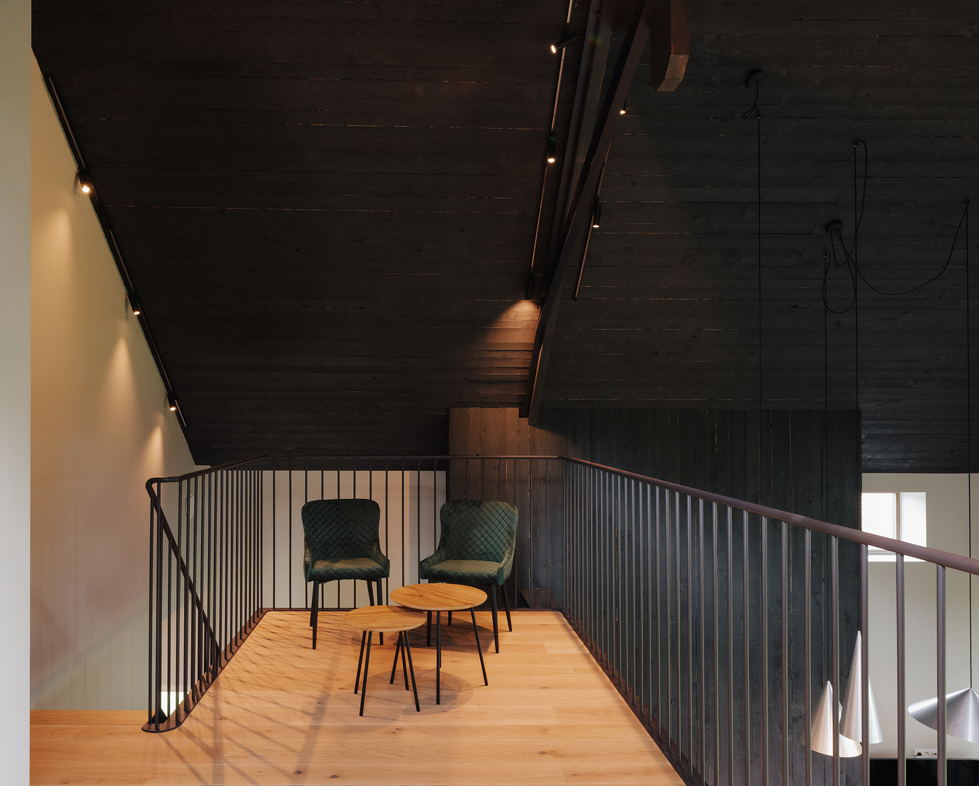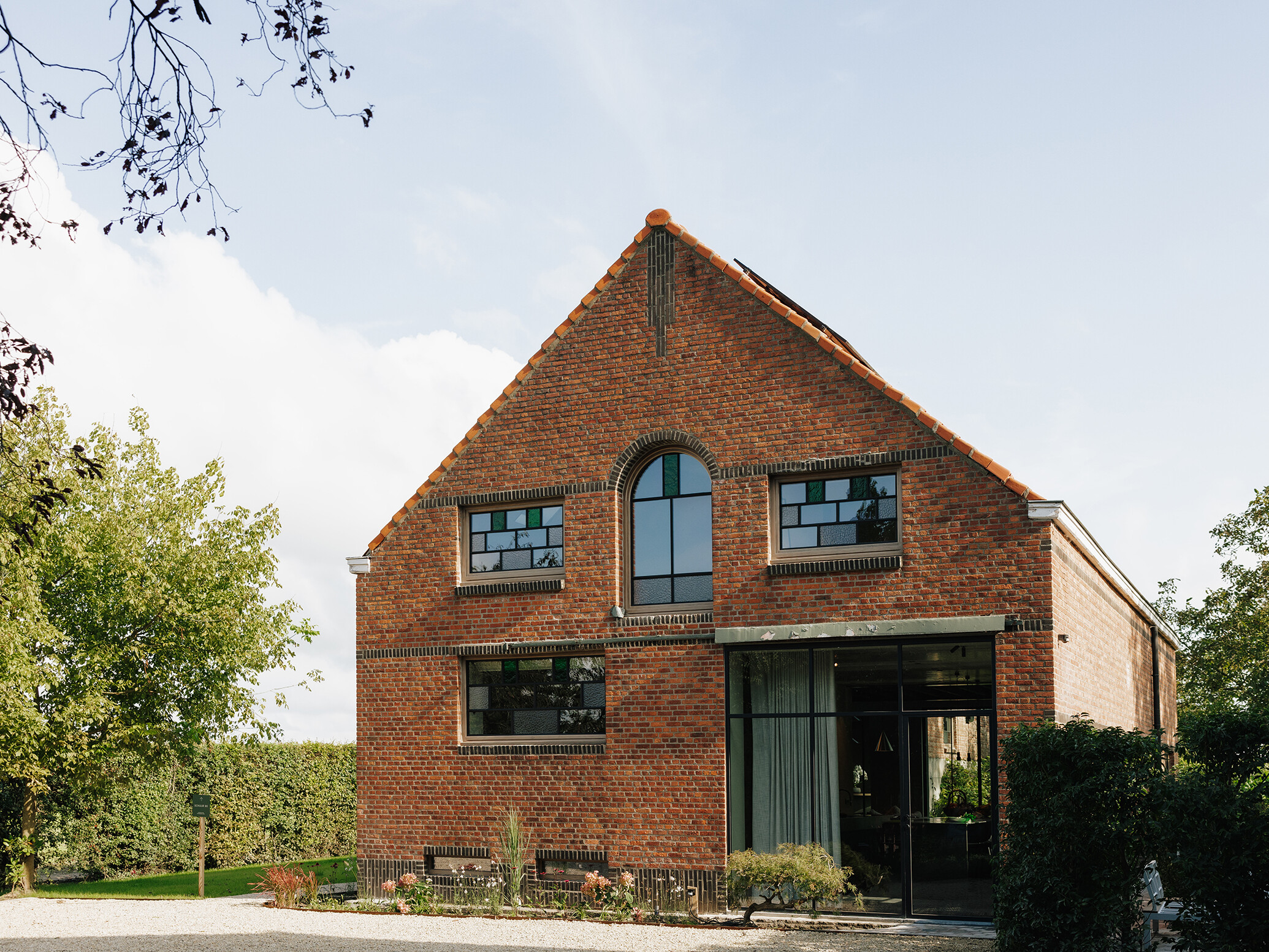 Budynek zachował swoją historyczną, ceglaną fasadę, natomiast jego wnętrze zostało całkowicie przekształcone i dostosowane do współczesnych potrzeb. Przestrzeń otwiera się na otaczający krajobraz dzięki dużym, stalowym przeszkleniom, które kadrują widoki na pola i ogrody.