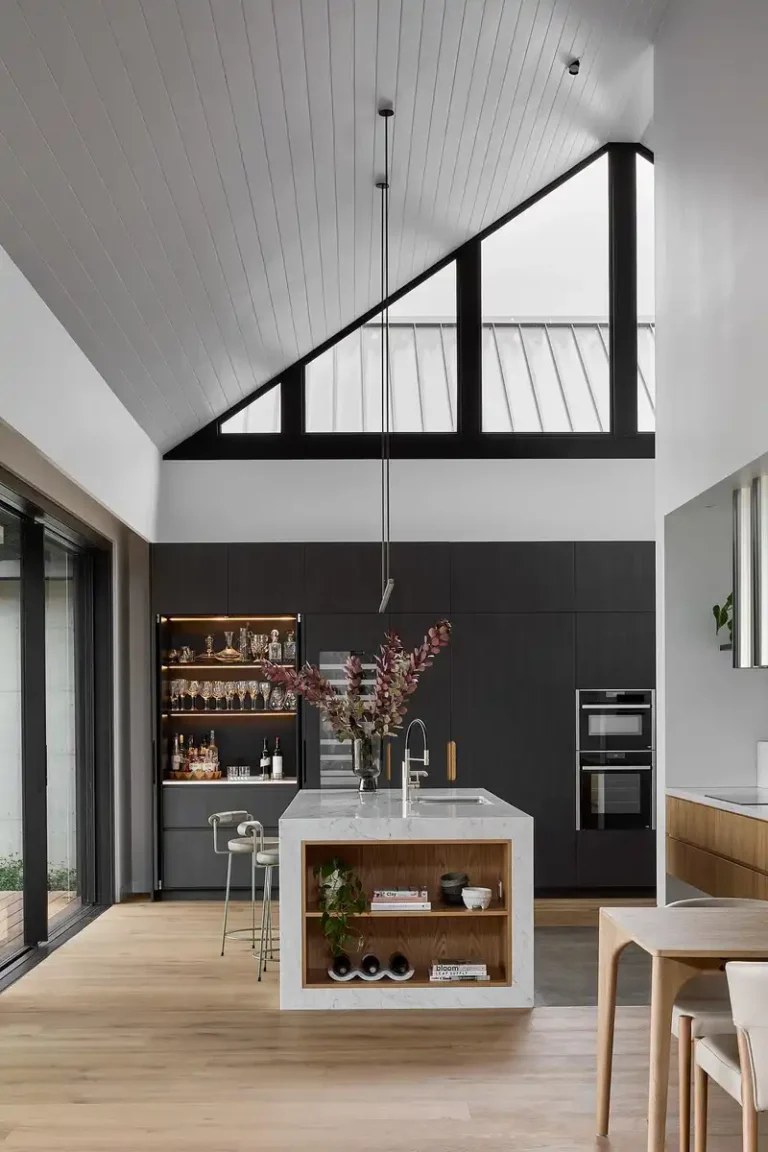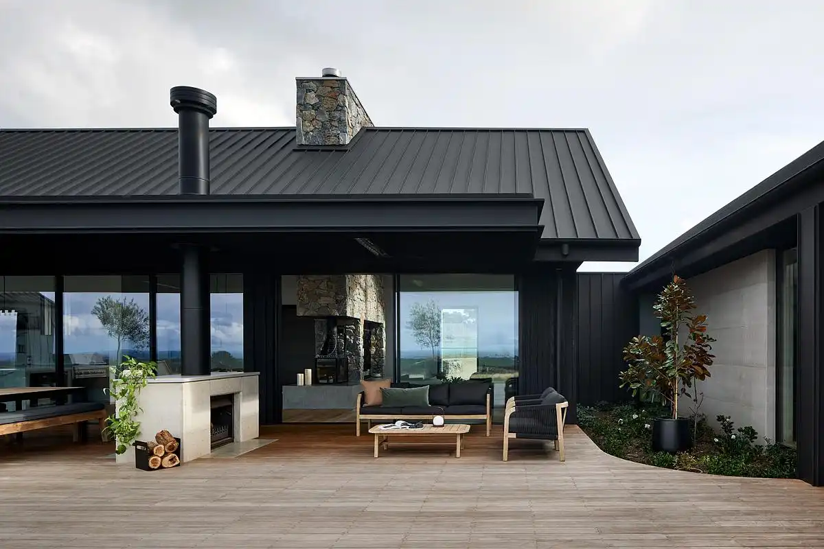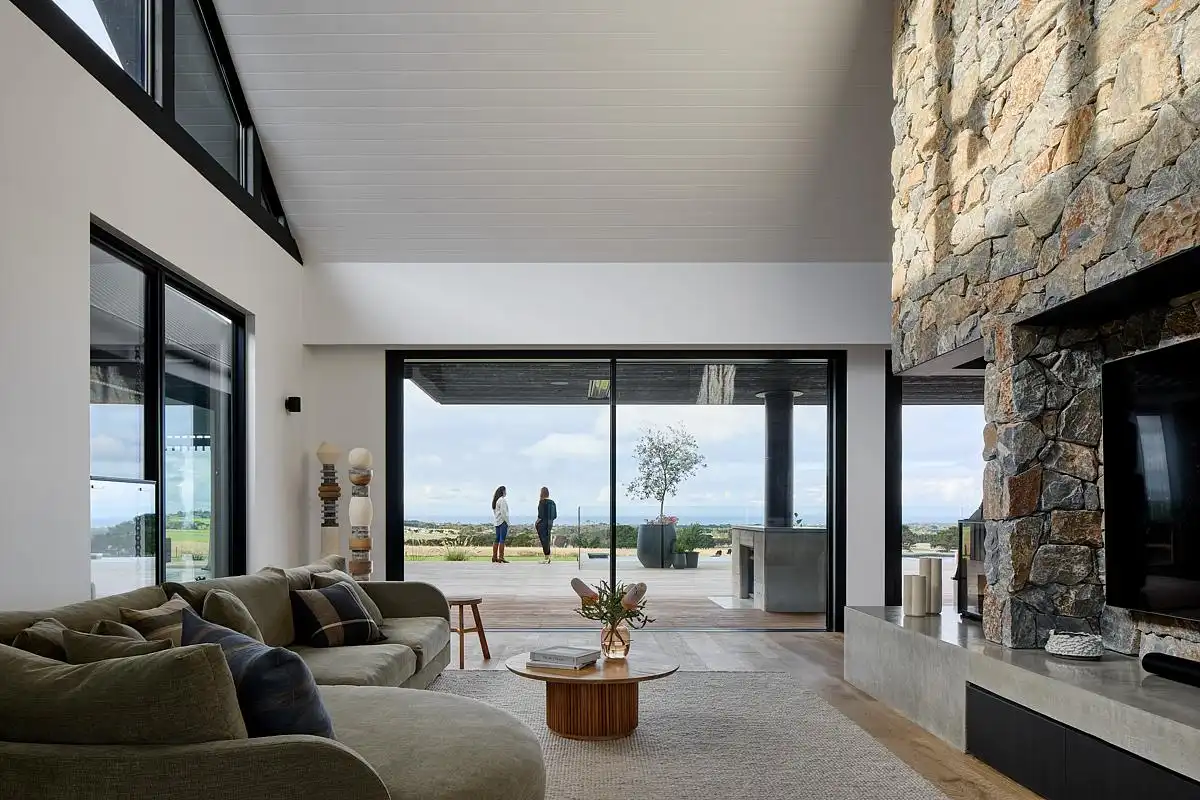 Scotchmans View Farmhouse powstał jako odpowiedź na potrzebę zmiany stylu życia – odejścia od miejskiej intensywności na rzecz przestrzeni, krajobrazu i bliskości natury. Układ funkcjonalny pozwala na jednoczesne współistnienie kilku pokoleń, oferując zarówno wspólne przestrzenie integrujące domowników, jak i wyraźnie wydzielone strefy prywatne.