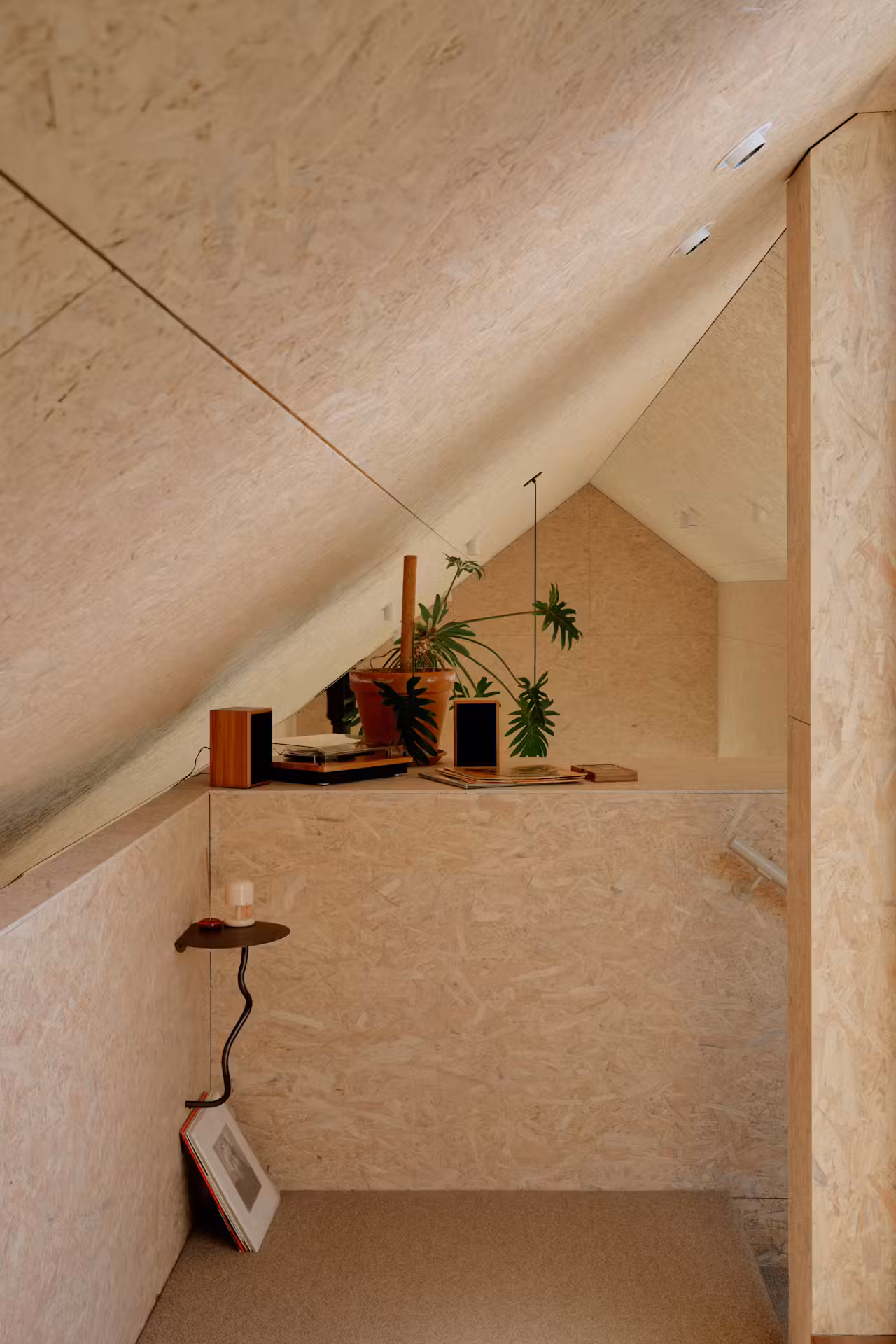 Scout na pierwszy rzut oka przypomina zespół połączonych brył, w których dwuspadowy dach wyrasta z masywnej bazy wykonanej z falistej stali. Materiały nawiązują do tradycyjnej zabudowy regionu, czerpiąc inspirację z naturalnego kontekstu i miejscowych technik budowlanych.