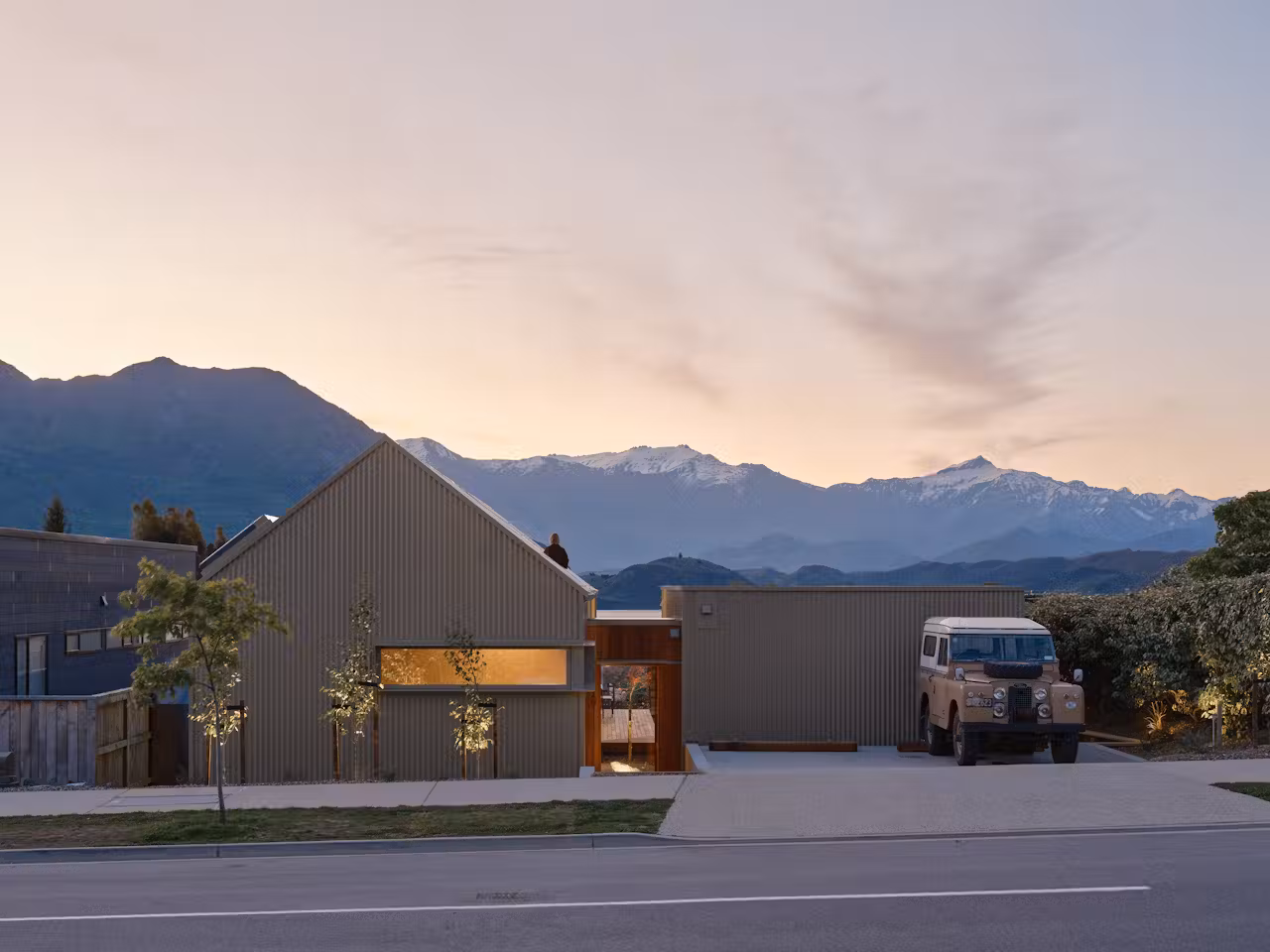 W centralnej części domu znajduje się otwarta antresola z balkonem wychodzącym na jezioro Wānaka, a duże drewniane tarasy rozszerzają strefę mieszkalną na zewnątrz, łącząc się z elewacjami wykończonymi cedrem. Te detale podkreślają przynależność domu do miejsca, subtelnie zacierając granice między architekturą a krajobrazem.