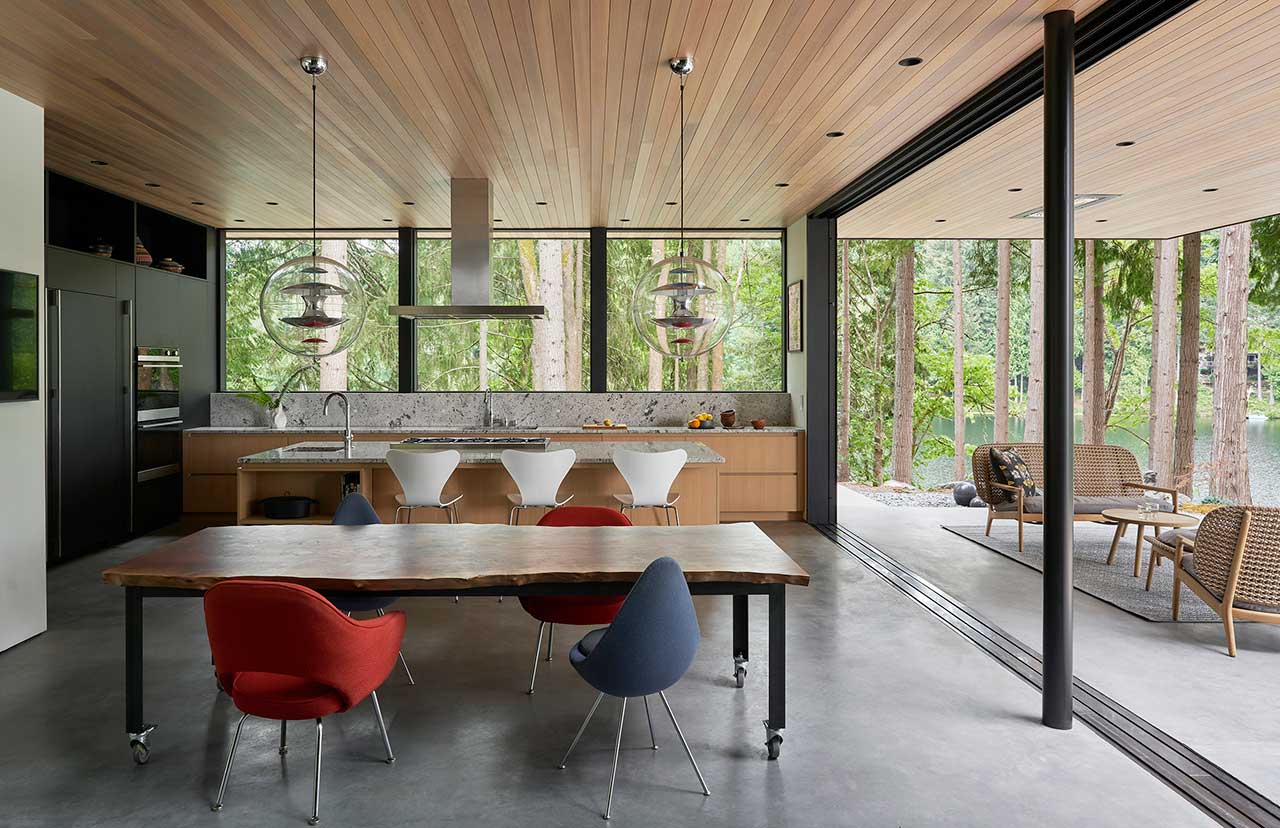 Rezydencja Scout Lake to wyjątkowy dom rodzinny o powierzchni 362 m², położony nad jeziorem, w miejscu dawnego obozu skautów. Zlokalizowany na obszarze chronionym, w otoczeniu gęstego lasu, dom został zaprojektowany przez Stephenson Design Collective z ogromnym poszanowaniem dla środowiska i lokalnego krajobrazu. Ten minimalistyczny projekt łączy w sobie elementy nowoczesnej stodoły, skandynawskiej estetyki oraz inspiracje z popularnej gry Minecraft, której dyrektorem kreatywnym jest właściciel domu.