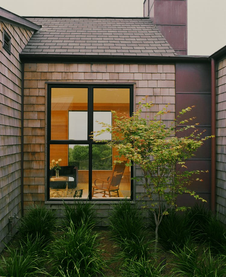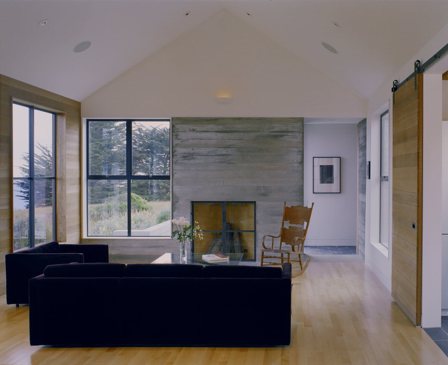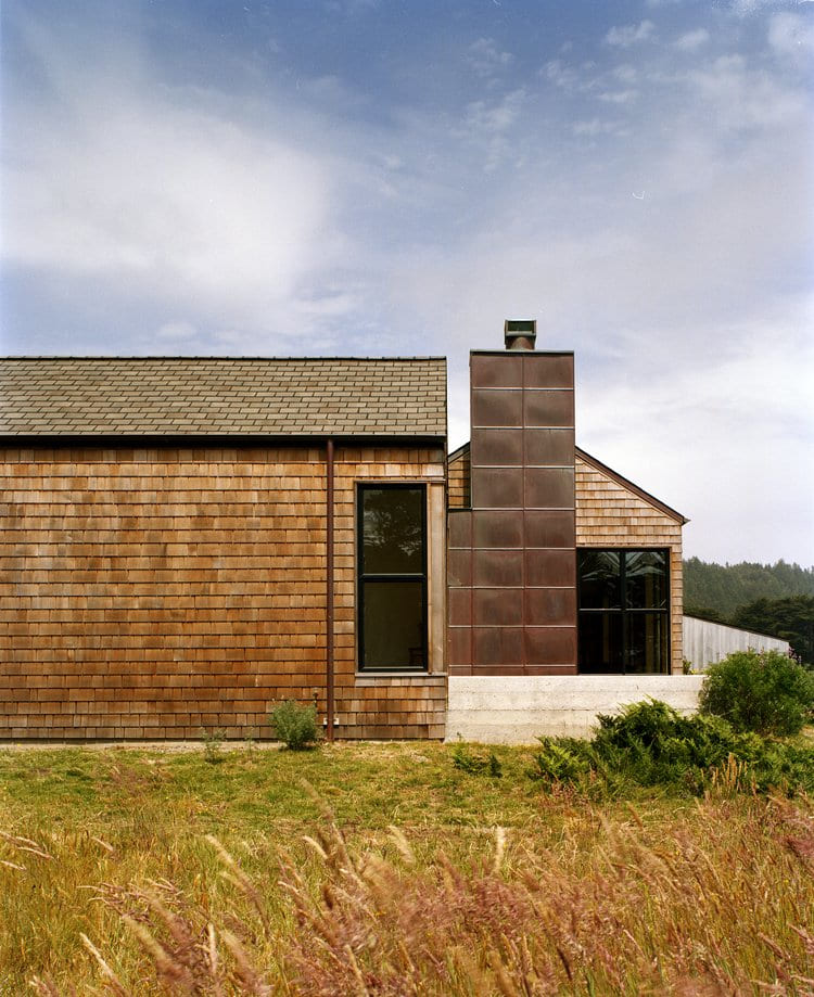 Rezydencja Sea Ranch Residence II została zaprojektowana na spektakularnym, sześćdziesięciostopowym klifie nad brzegiem Oceanu Spokojnego w Kalifornii. Ten wyjątkowy dom, przypominający nowoczesną stodołę, składa się z dwóch prostych, dwuspadowych skrzydeł połączonych centralnym kominem pokrytym miedzią. Cała kompozycja otacza wewnętrzny dziedziniec, który zapewnia osłonę przed wiatrem i intymną przestrzeń do relaksu. Architektoniczna forma odpowiada zarówno surowemu krajobrazowi nadbrzeża, jak i potrzebie prywatności oraz otwarcia na oceaniczne widoki.