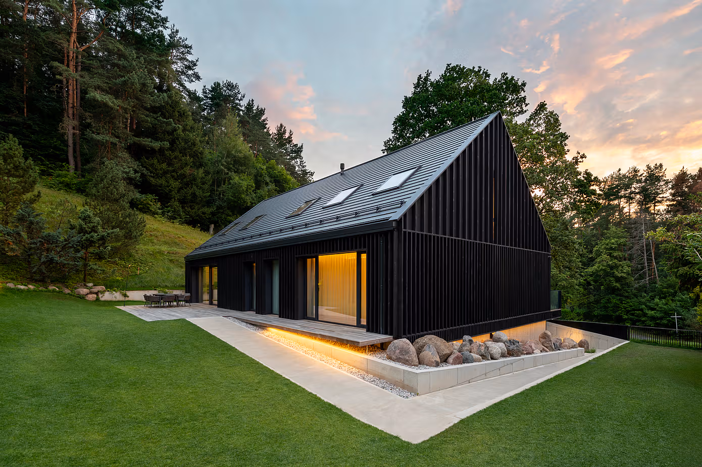 Na ulicy Bistryčios w Wilnie powstał dom, który powściągliwie wpisuje się w krajobraz objęty ścisłą ochroną przyrodniczą i konserwatorską. Projekt Shadow of Tradition autorstwa Devyni Architektai to współczesna interpretacja tradycyjnej litewskiej architektury wiejskiej, zrealizowana przy użyciu zwęglonego drewna, prostego dachu dwuspadowego i bryły osadzonej w zboczu.