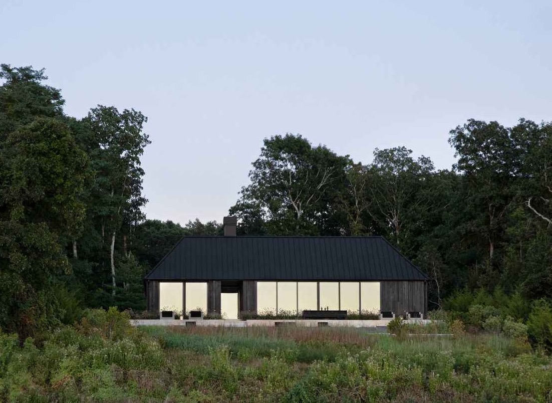 Projekt Shagwong, autorstwa pracowni Adam Jordan Architecture, to nowoczesny dom wypoczynkowy zlokalizowany w prestiżowej dzielnicy East Hampton w stanie Nowy Jork. Usytuowany bezpośrednio przy nabrzeżu, budynek oferuje spektakularne widoki na wodę, które przenikają do wnętrza dzięki przemyślanej orientacji pomieszczeń. Inwestycja została zaprojektowana z myślą o relaksie i weekendowym wypoczynku poza miastem – z dala od zgiełku, w pełnym kontakcie z naturą. Nowoczesna stodoła o parterowej zabudowie stanowi doskonałe połączenie prostoty, elegancji i funkcjonalności.