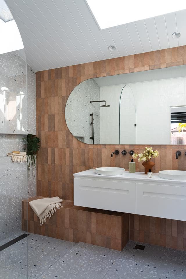 Wnętrze domu zostało zaprojektowane w duchu nowoczesnej architektury – dominują jasne barwy, naturalne materiały i rozwiązania zapewniające funkcjonalność i trwałość. Zastosowanie płytek lastryko, przemyślany podział stref oraz retro detale nadają wnętrzom ciepła i stylu. Pokoje dzieci zostały oddzielone od sypialni głównej, zapewniając prywatność i komfort wszystkim domownikom.