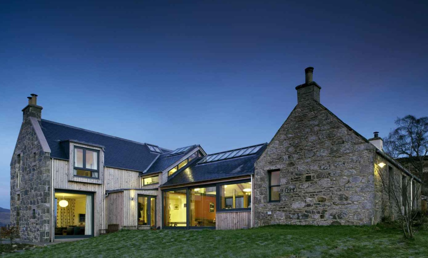 Ekologiczna chata w szkockim krajobrazie