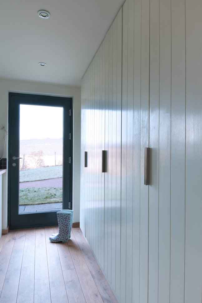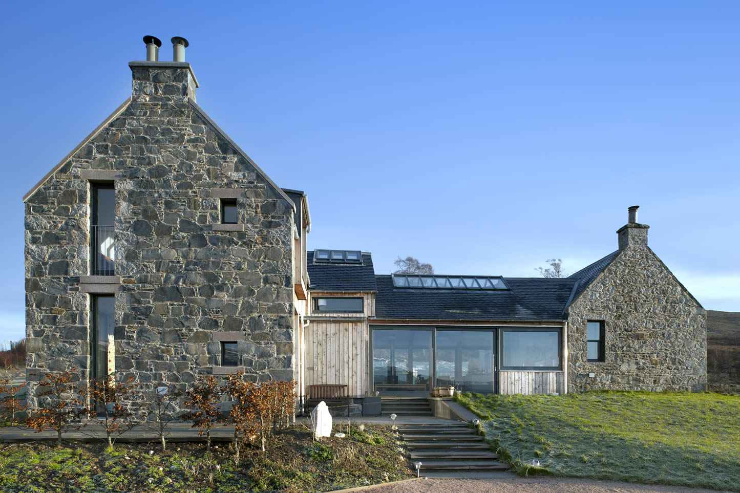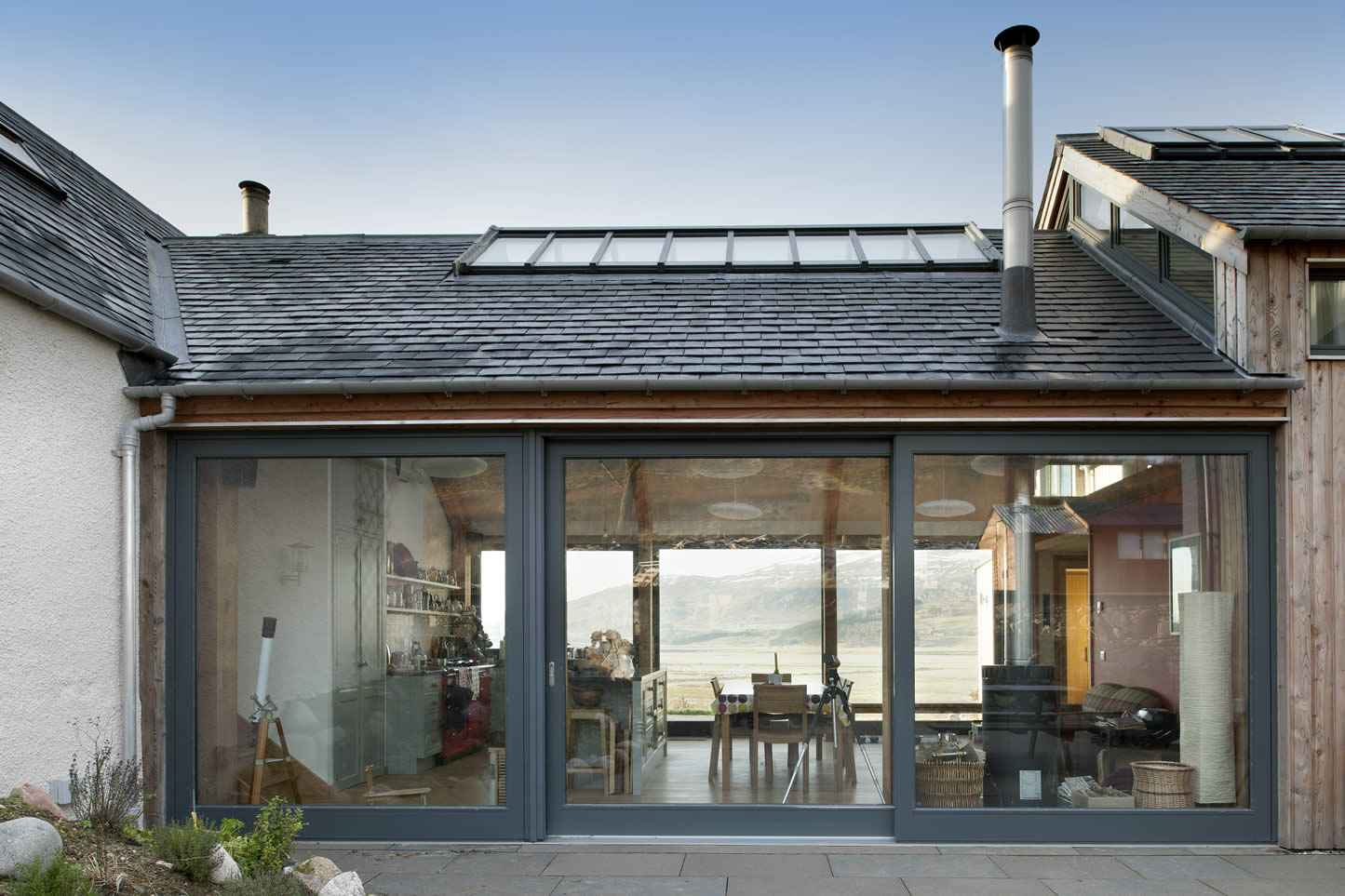Rozbudowa Shepherd’s Cottage to także historia osobista właścicieli, którzy przez lata pielęgnowali marzenie o stworzeniu miejsca dla całej rodziny. Zakup dodatkowej ziemi oraz współpraca z renomowanym szkockim biurem architektonicznym zaowocowały stworzeniem przestrzeni o wysokim standardzie i silnym związku z lokalnym rzemiosłem. Materiały, takie jak modrzewiowa okładzina, celowo dobrano tak, aby nie naśladowały starej chaty, lecz naturalnie się z nią komponowały. Całość łączy nowoczesne rozwiązania konstrukcyjne z rustykalnym urokiem – to nowoczesna stodoła, która nie epatuje formą, ale przekonuje treścią i odpowiedzialnością środowiskową.
