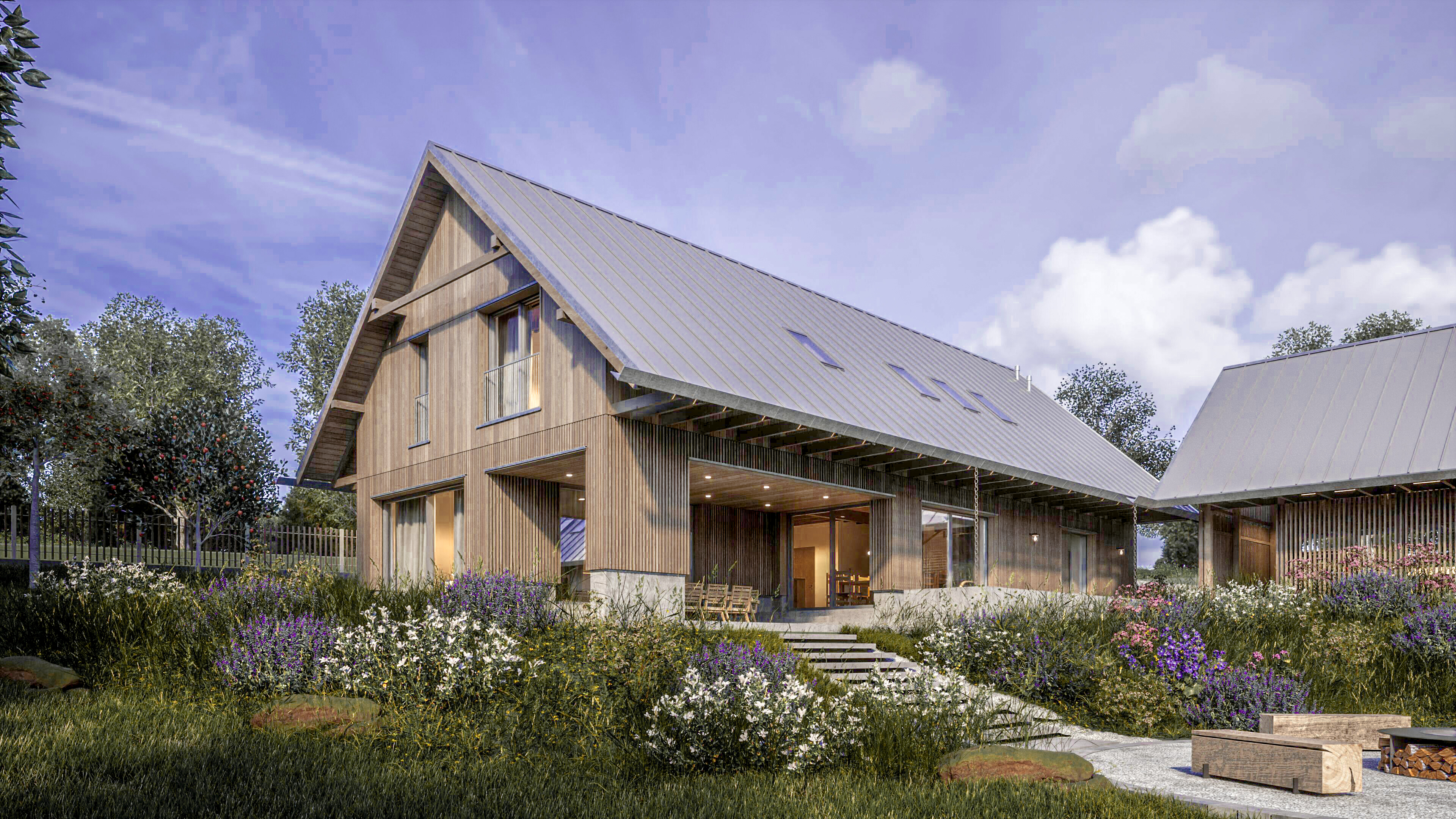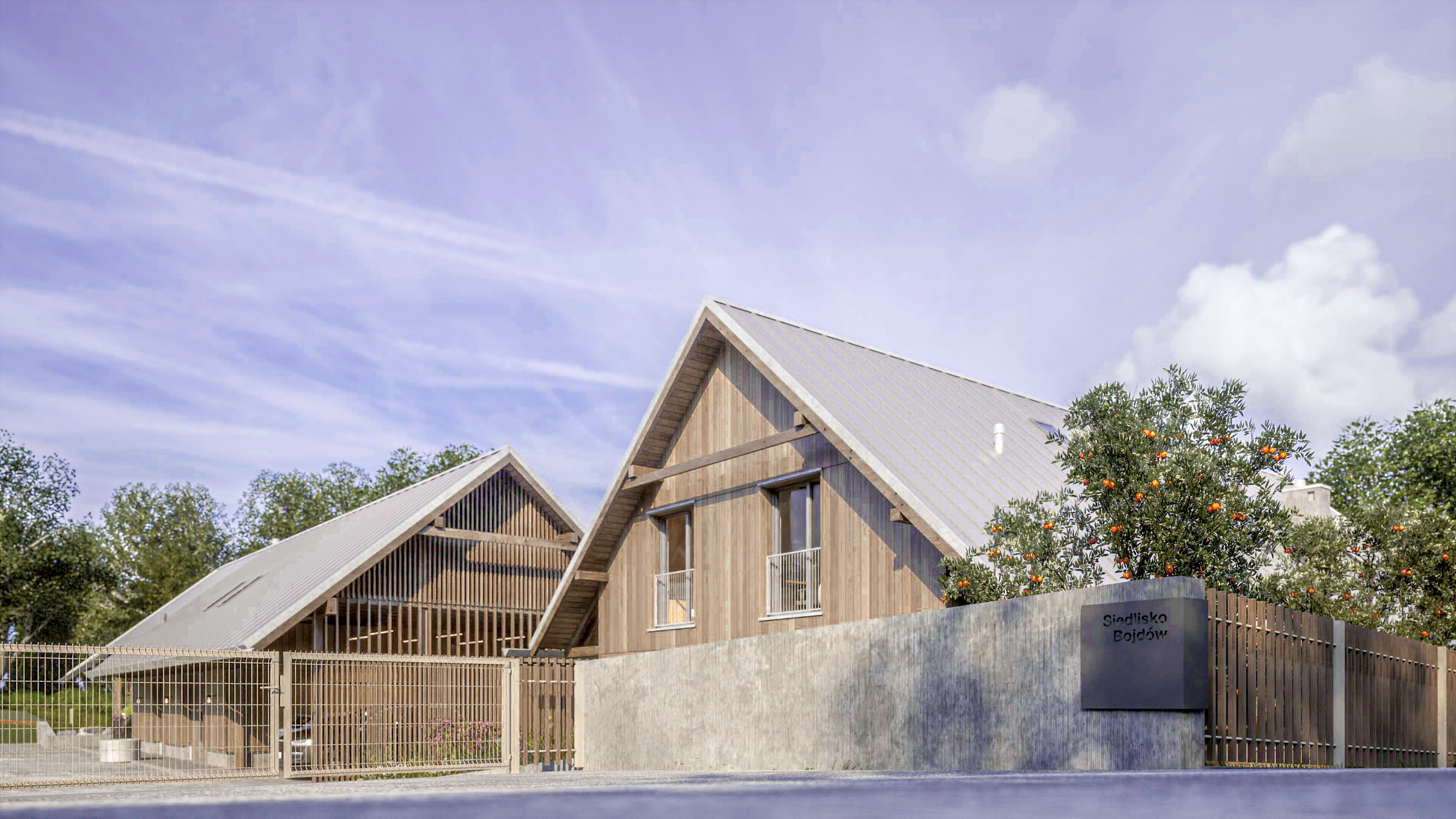Kontekst i regionalne ukształtowanie architektury były pretekstem do stworzenia rustykalnej zabudowy siedliskowej na przedmiotowej działce. Otoczeniem dla założenia są doliny i ochraniające je lasy grądowe składające się głównie z grabów i dębów. Naturalne tło tworzy rozproszona sąsiednia zabudowa mieszkalna jednorodzinna jak i zabudowa zagrodowa. Przedmiotowe budynki zagrodowe wpisują się w krajobraz i stanowią kontynuację zabudowy podmiejskiej w bardziej ekstensywnym układzie.