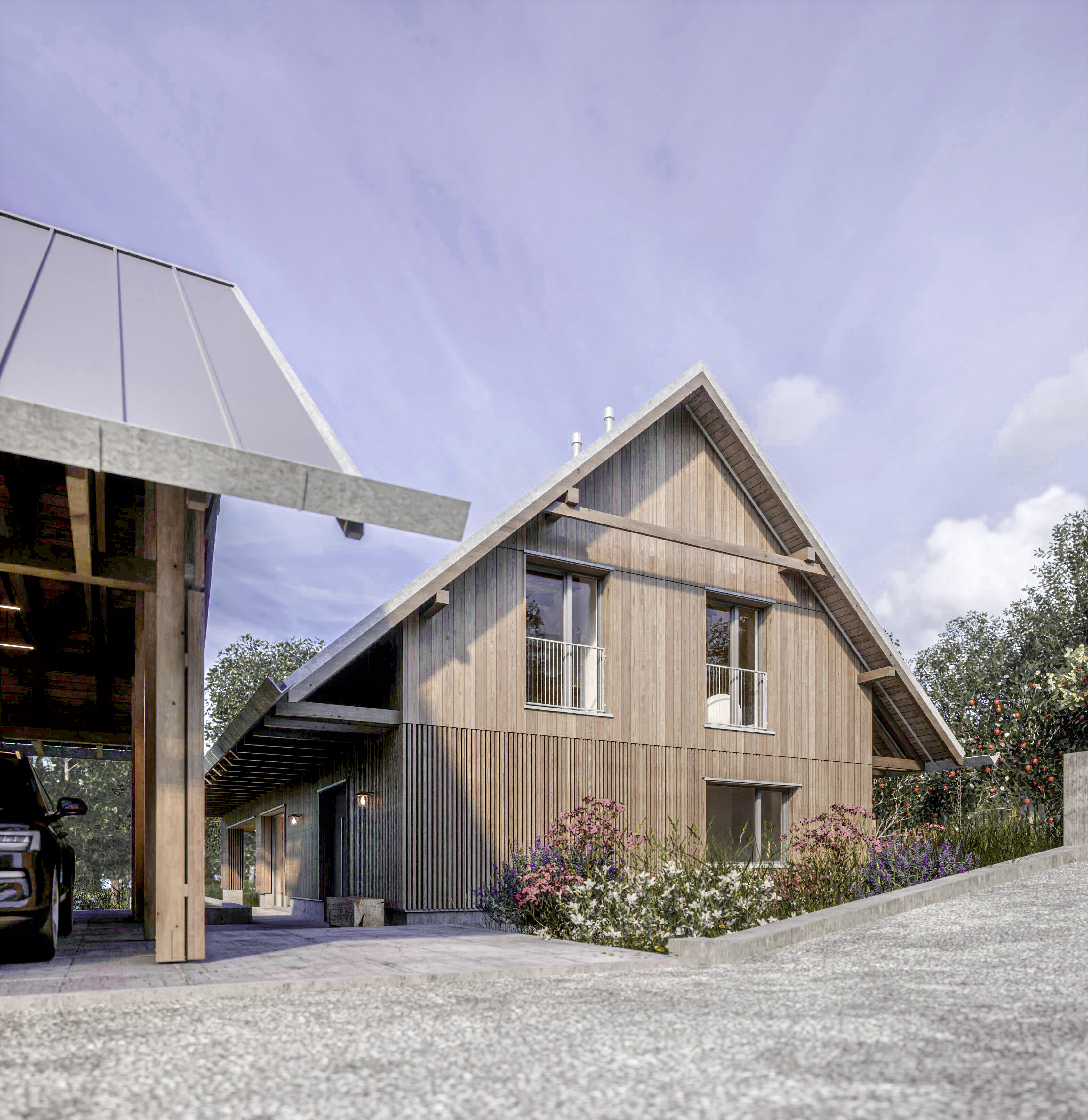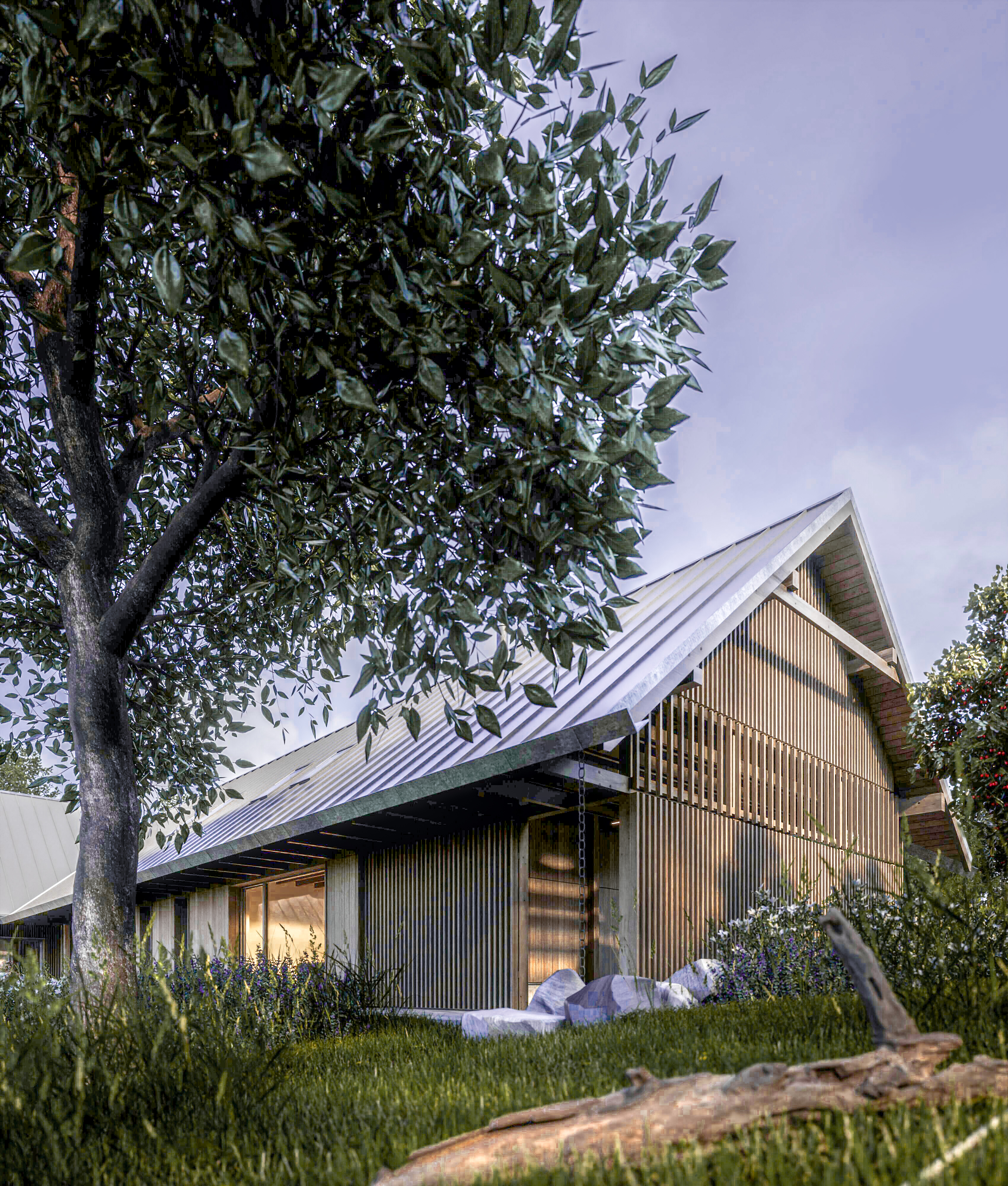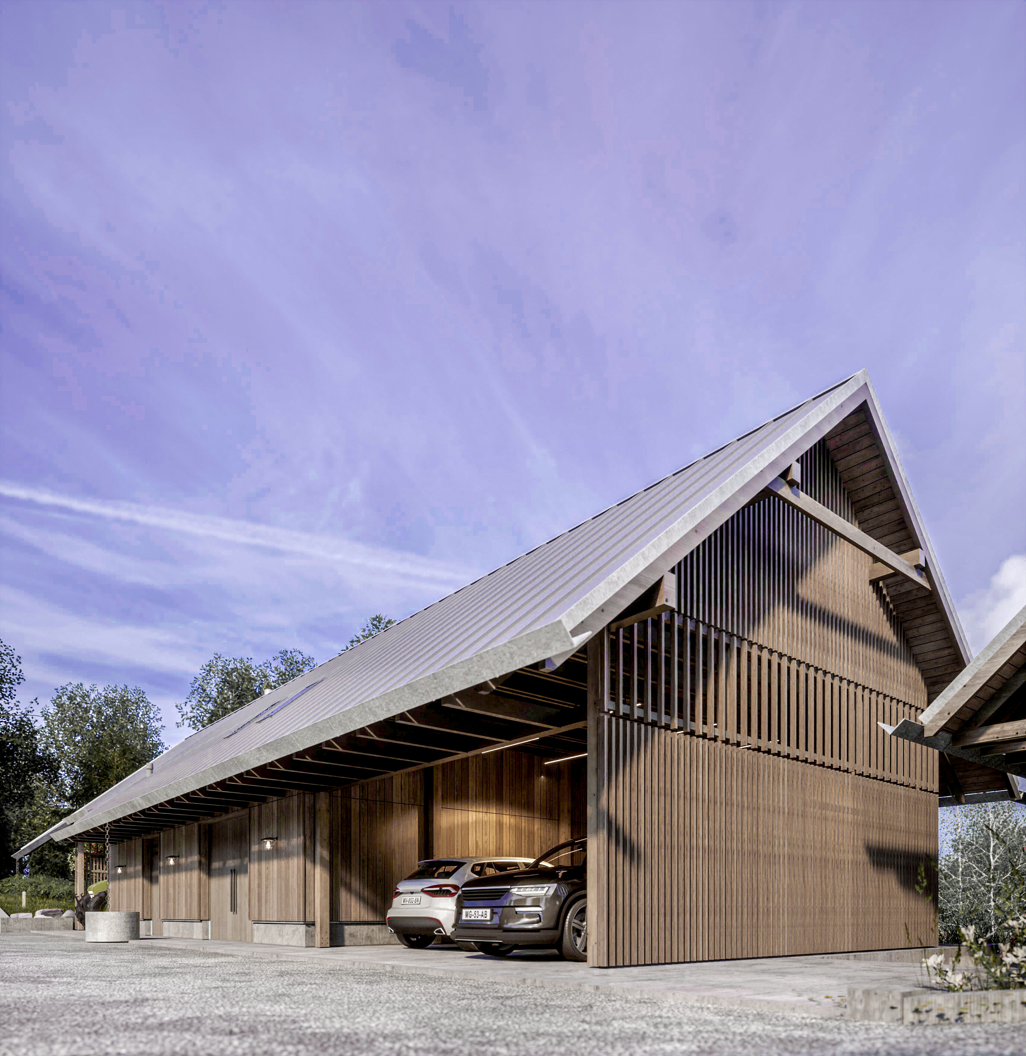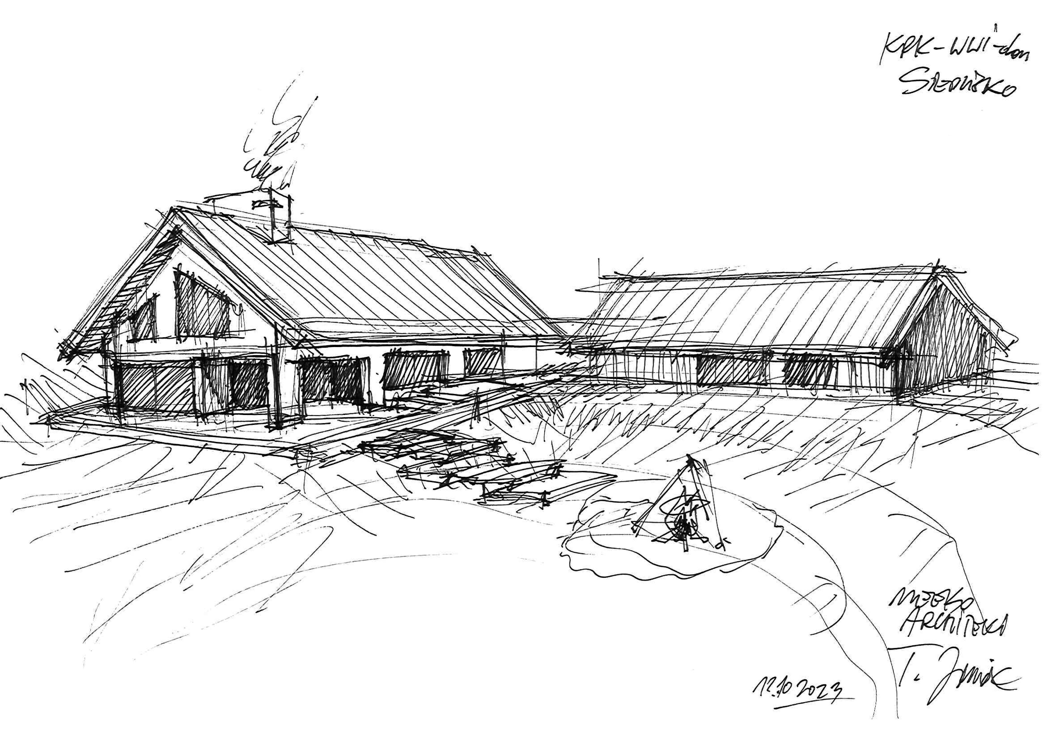 Siedlisko w Dolinie Kluczwody to projekt, który powstał na specjalne życzenie jego użytkowników. Program użytkowy jest dostosowany dla rodziny 2+3, która między innymi zajmuje się działalnością rolniczą. Zamiłowanie i rolnicza pasja inwestorów ukierunkowana jest na pozyskiwanie wolnych od sztucznych środków ochrony roślin i zanieczyszczeń ekologicznych warzyw, owoców oraz nasion bylin ozdobnych. Dlatego budynki w naszym założeniu pełnią określone funkcje, gdzie budynek gospodarczy jest połączony funkcjonalnie z dwoma wiatami na samochody oraz sprzęt rolniczy. W budynku znajduje się magazyn płodów rolnych oraz narzędziownia i warsztat. Dodatkowym atutem jest mała pracowania, gdzie inwestor może spokojnie przygotować swoje produkty do dalszej dystrybucji.