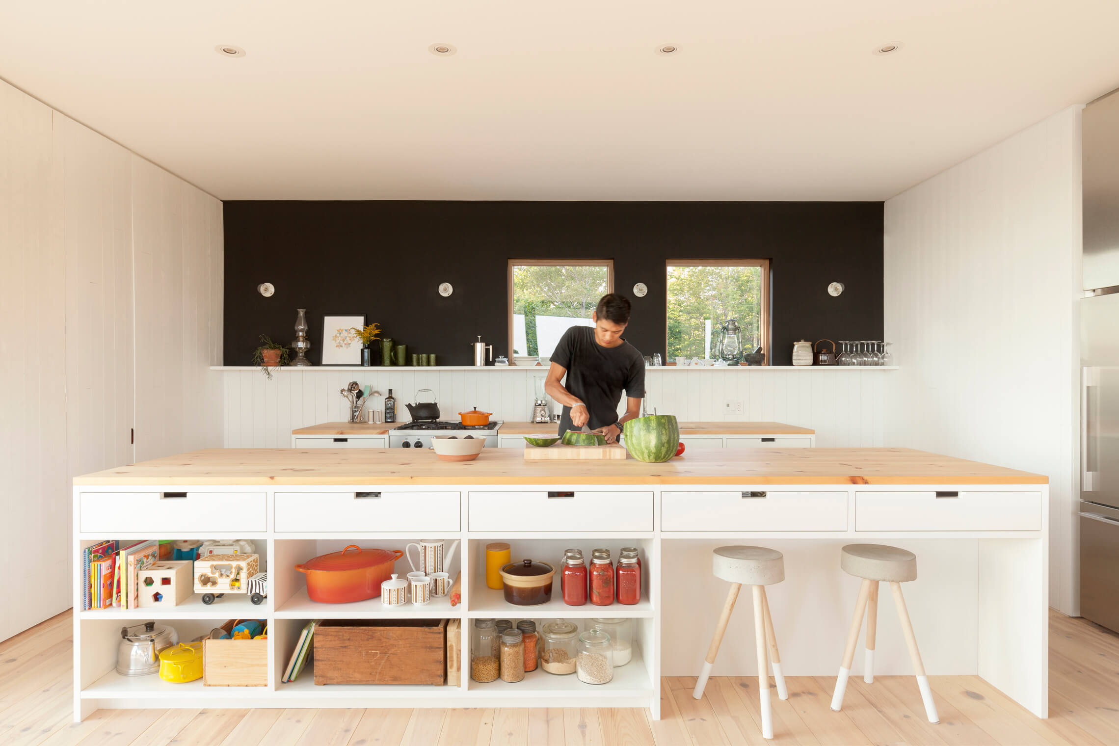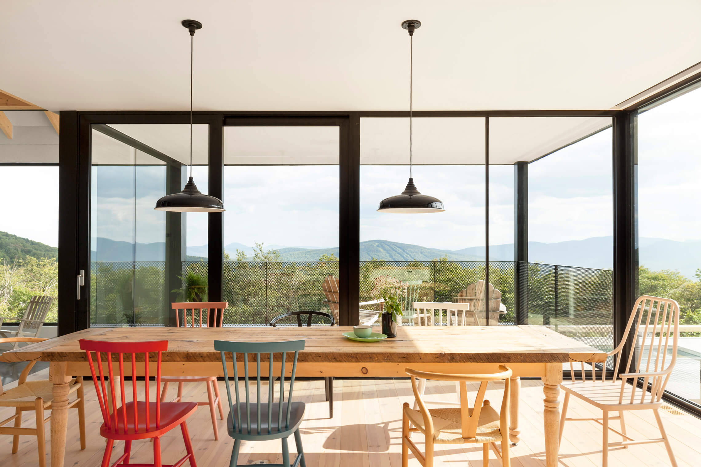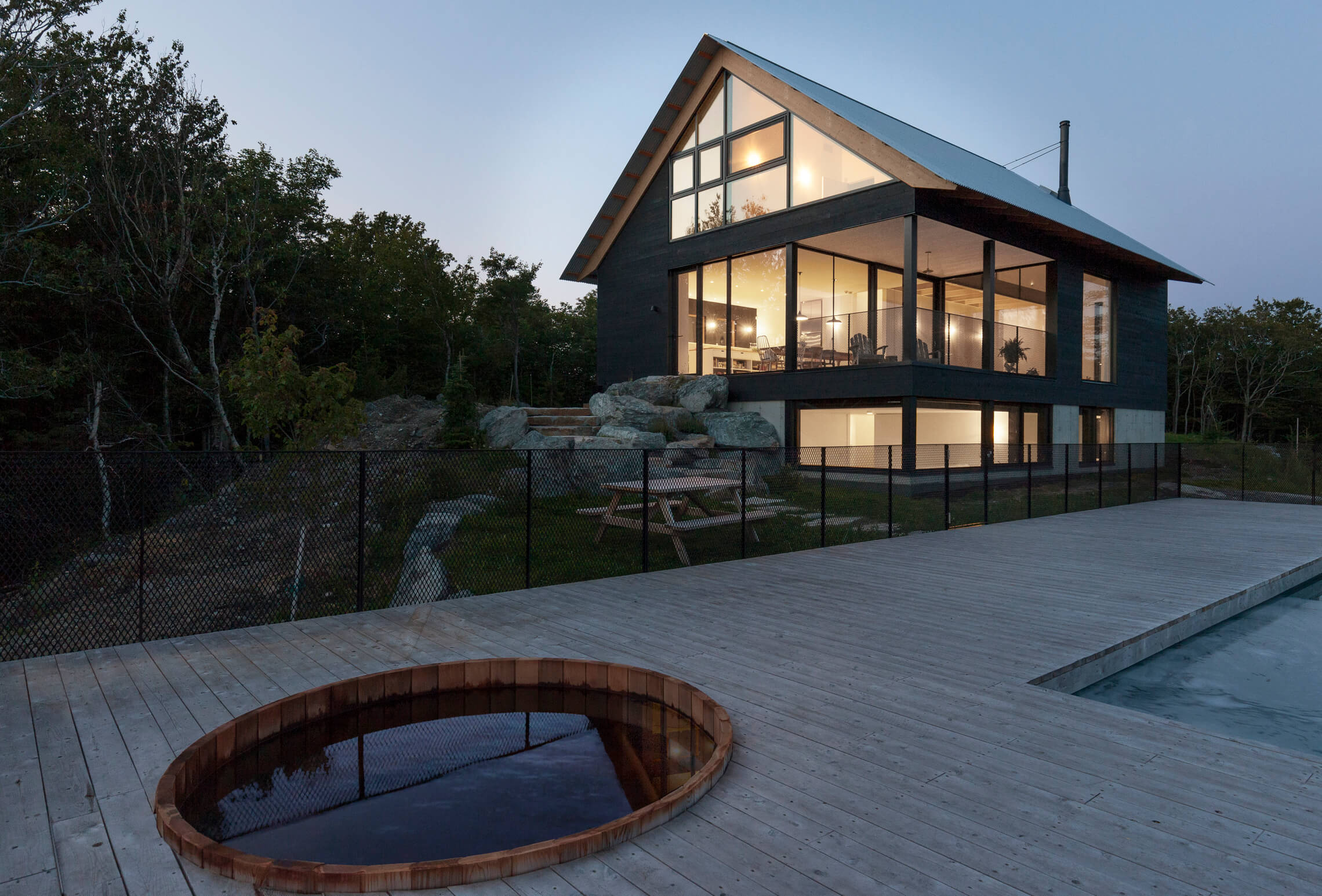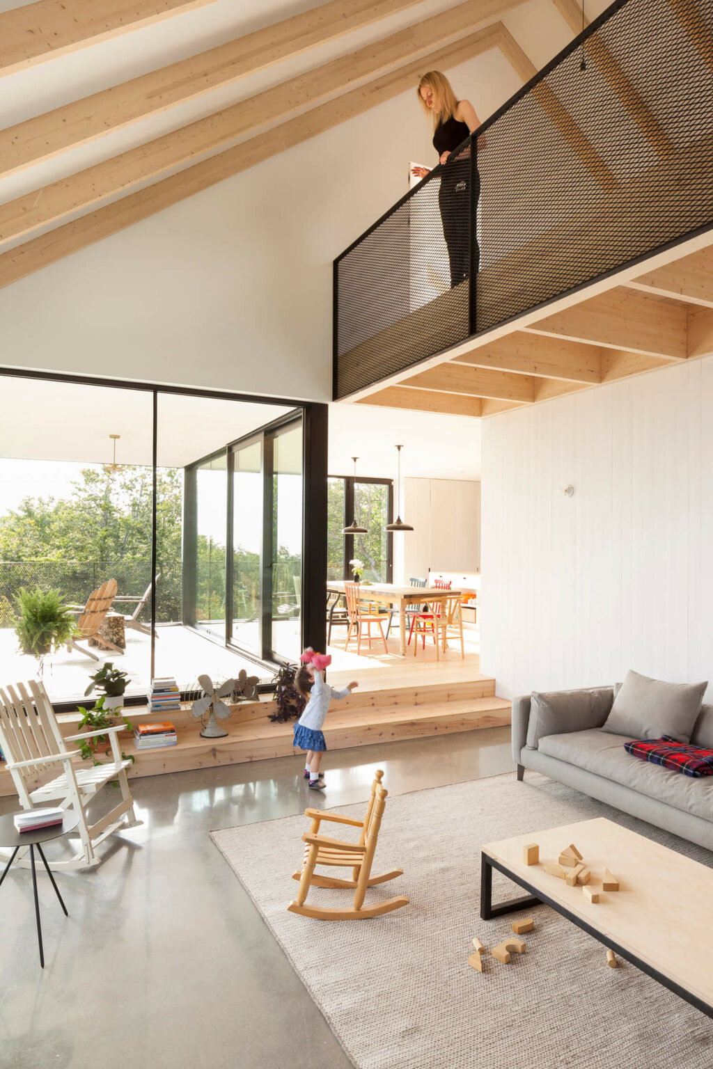 Zlecenie miało na celu stworzenie spokojnego, dzikiego schronienia dla trzyosobowej rodziny, z naciskiem na gościnność i komfort dla rodziny oraz przyjaciół. Program przestrzenny rozciąga się na trzech poziomach: dwie główne sypialnie znajdują się na poddaszu, trzy sypialnie gościnne w piwnicy, a przestronną, otwartą część dzienną, w której znajdują się salon, kuchnia, jadalnia i duża galeria z loggią, umieszczono na parterze, skąd rozciąga się spektakularny widok na okoliczne góry.