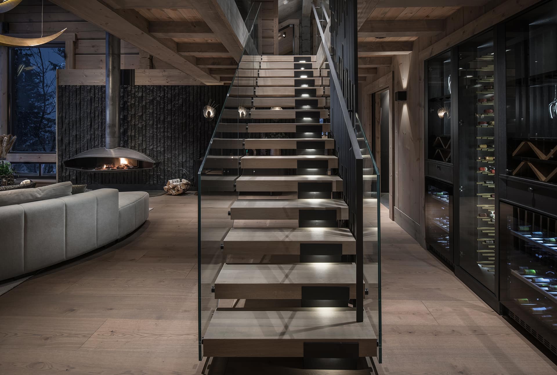 Na jednym końcu salonu znajduje się korytarz prowadzący do dwóch sypialni oraz dużej łazienki z sauną — doskonałym miejscem do relaksu i odprężenia. Duża główna sypialnia jest wyposażona w własną łazienkę i garderobę, oferując luksusową prywatność i komfort. Na drugim piętrze znajduje się dodatkowy hol, który pełni rolę salonu z własną łazienką, a także gabinetu lub sypialni. Przestronna część sypialna, z oddzielnym korytarzem, wyposażona jest w garderobę i dwie urocze sypialnie, które mogą pomieścić specjalnie zaprojektowane okrągłe podwójne łóżka, zapewniające wyjątkowy styl.