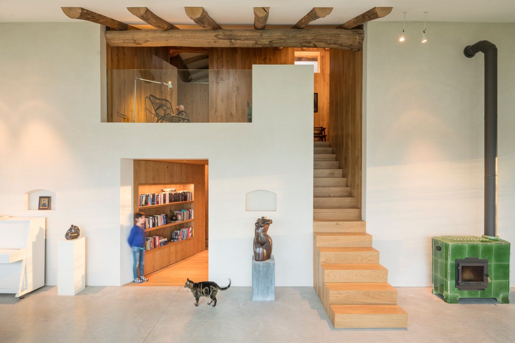 Rozbudowa tradycyjnego budynku gospodarczego typu Stolp w północnej Holandii stanowi odpowiedź na pytanie, jak powiększyć obiekt o wyraźnej, historycznej formie, posiadający nisko opadający dach z trzech stron i wysokie wrota stodoły od czwartej. Stolp to charakterystyczna forma wiejskiej zabudowy, z centralną, wysoką przestrzenią przeznaczoną dawniej na magazyn siana, wokół której funkcjonowały pomieszczenia mieszkalne i gospodarcze. Nowy projekt umiejętnie wykorzystuje ten archetyp, zachowując jego tożsamość i jednocześnie nadając mu współczesną funkcję mieszkalną.