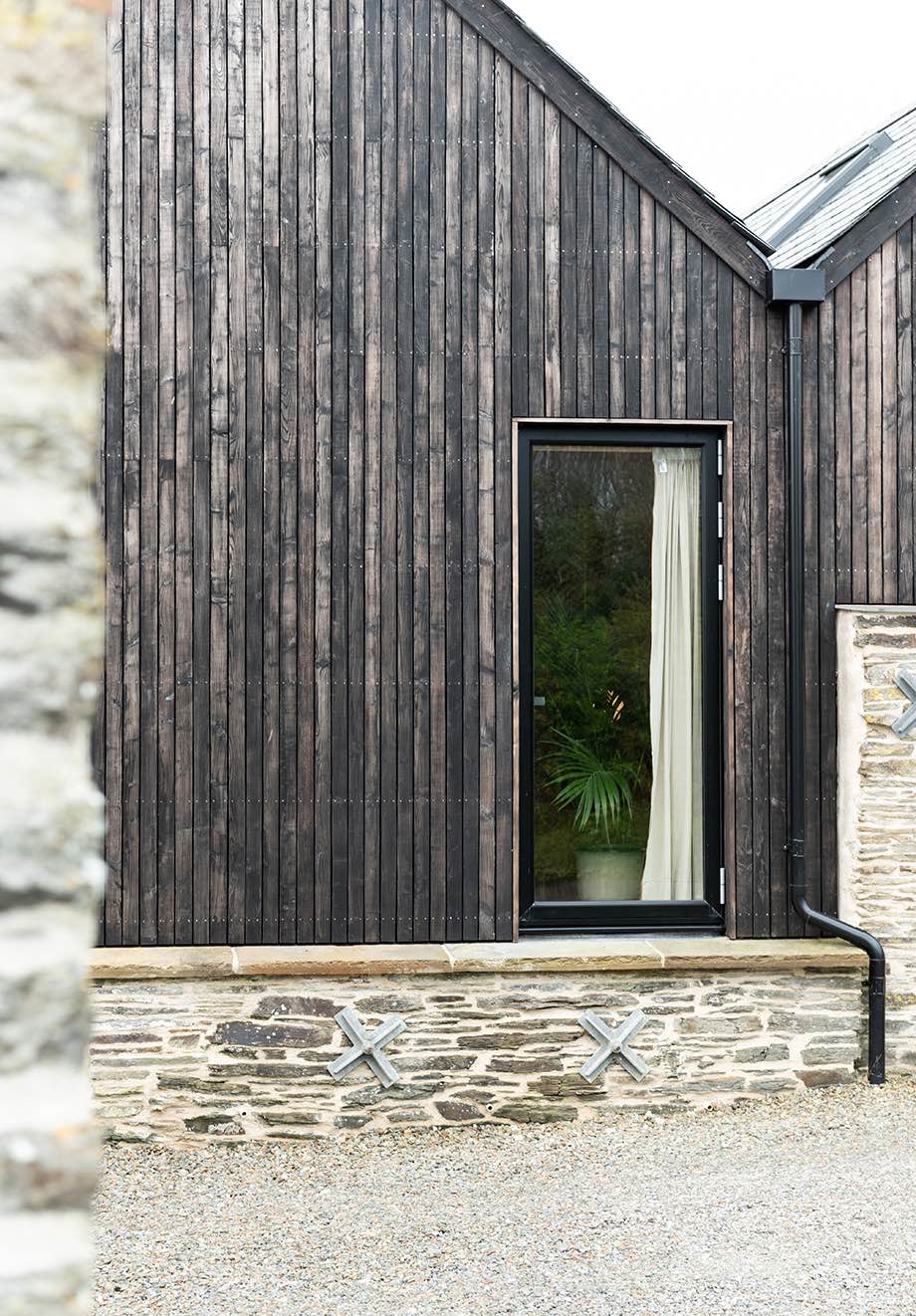 Stara stodoła przez lata popadała w ruinę – jej dach uległ zniszczeniu, a jedynym świadectwem przeszłości pozostały kamienne mury. Architekci postanowili zachować oryginalny obrys budynku, delikatnie podnosząc kalenicę, by zapewnić odpowiednią wysokość we wnętrzach. Nowa drewniana konstrukcja została osadzona lekko na zachowanych murach, wyraźnie odróżniając współczesną interwencję od historycznej tkanki.