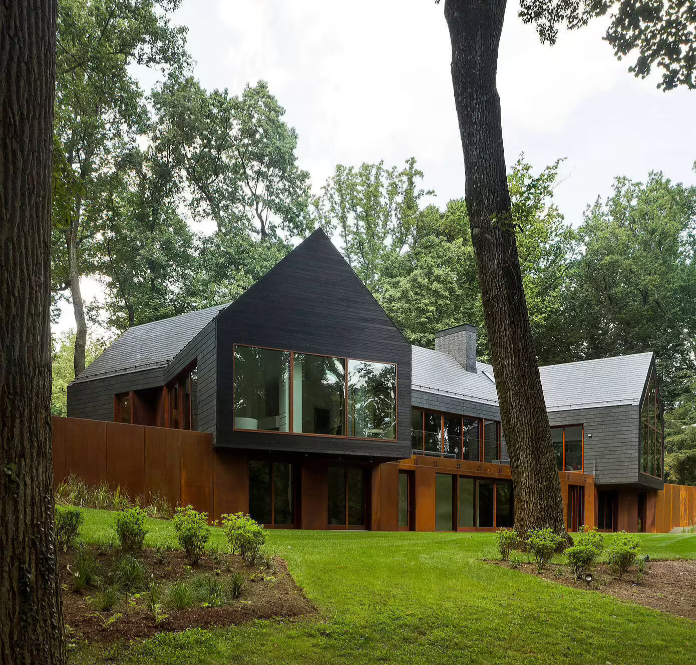 Położony na 3 akrach otoczonych terenami chronionymi przez Maryland Environmental Trust, Slate House to współczesny dom o powierzchni 7000 stóp kwadratowych, który zastąpił zniszczony w pożarze dom z lat 60. Projekt, pełen szacunku do otaczającej przyrody i historii miejsca, stał się symbolem odrodzenia i nowego początku.