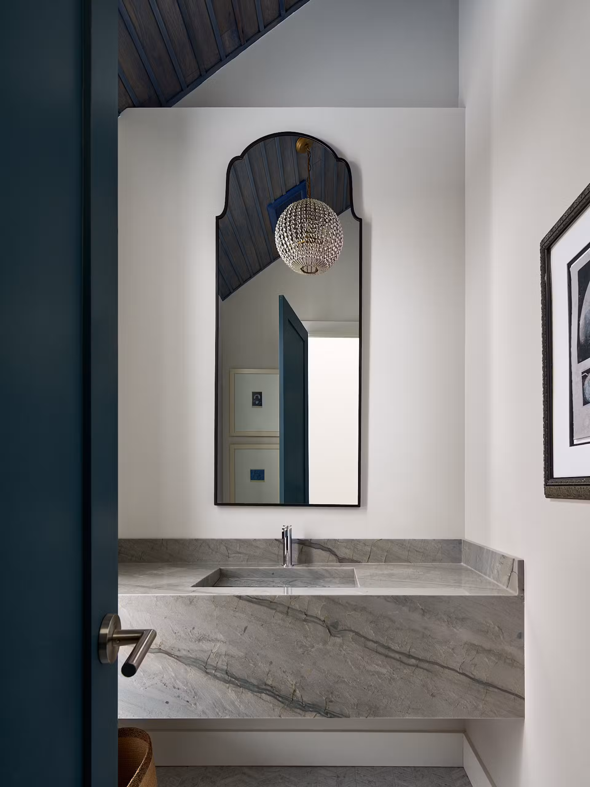 Na życzenie klienta dom został utrzymany w całości w bieli, w tym okna, co nadaje mu minimalistyczny charakter. W projekcie znalazły się również akcenty kolorystyczne, nawiązujące do barw pobliskich Badlands, które wprowadzają element zabawy i kontrastu. Parter budynku, głównie jednopoziomowy, koncentruje się na przestrzeniach wspólnych, takich jak kuchnia, jadalnia i salon, podczas gdy sypialnie znajdują się w podwyższonym poziomie piwnicy oraz w osobnym apartamencie dla gości.