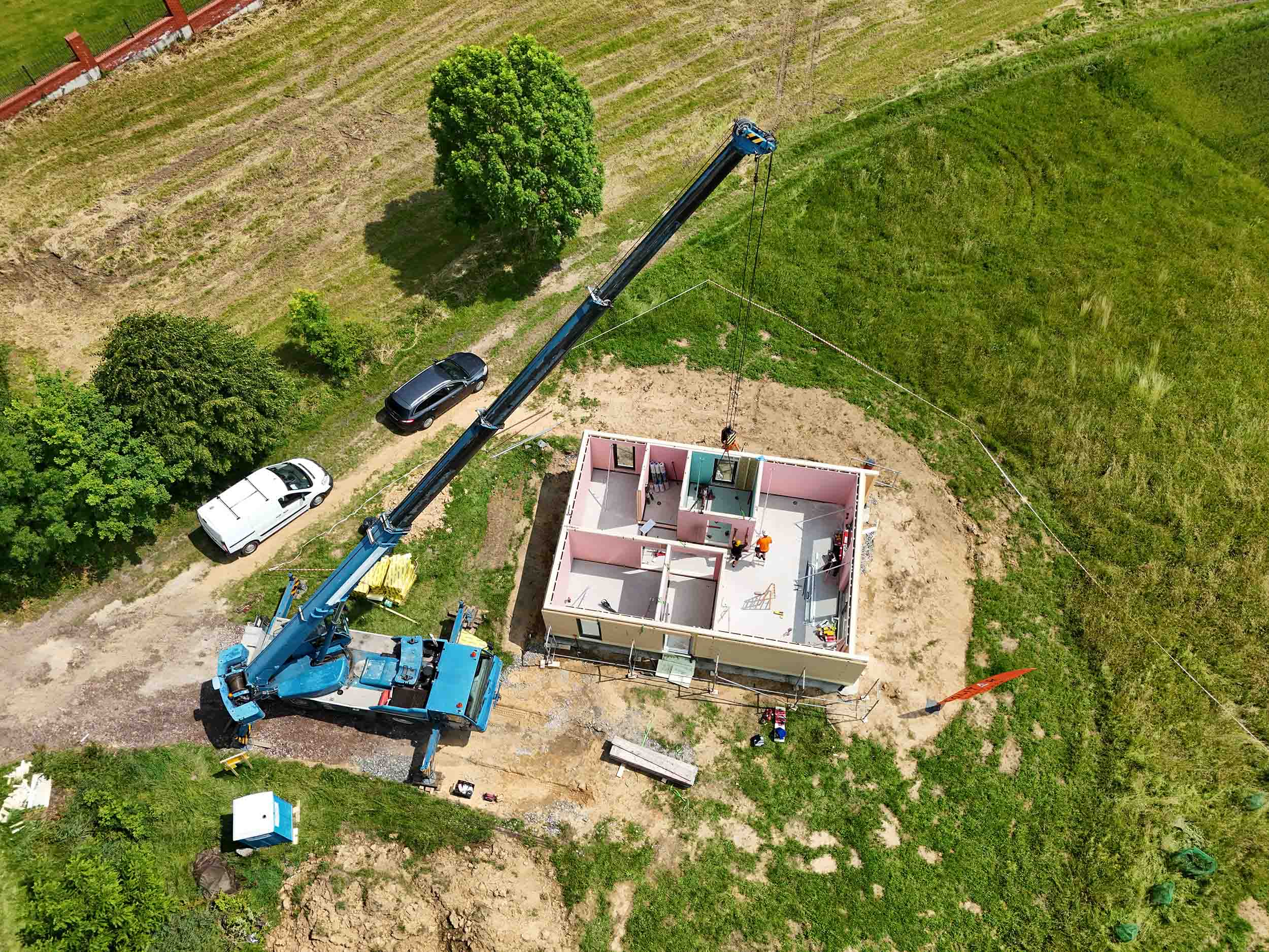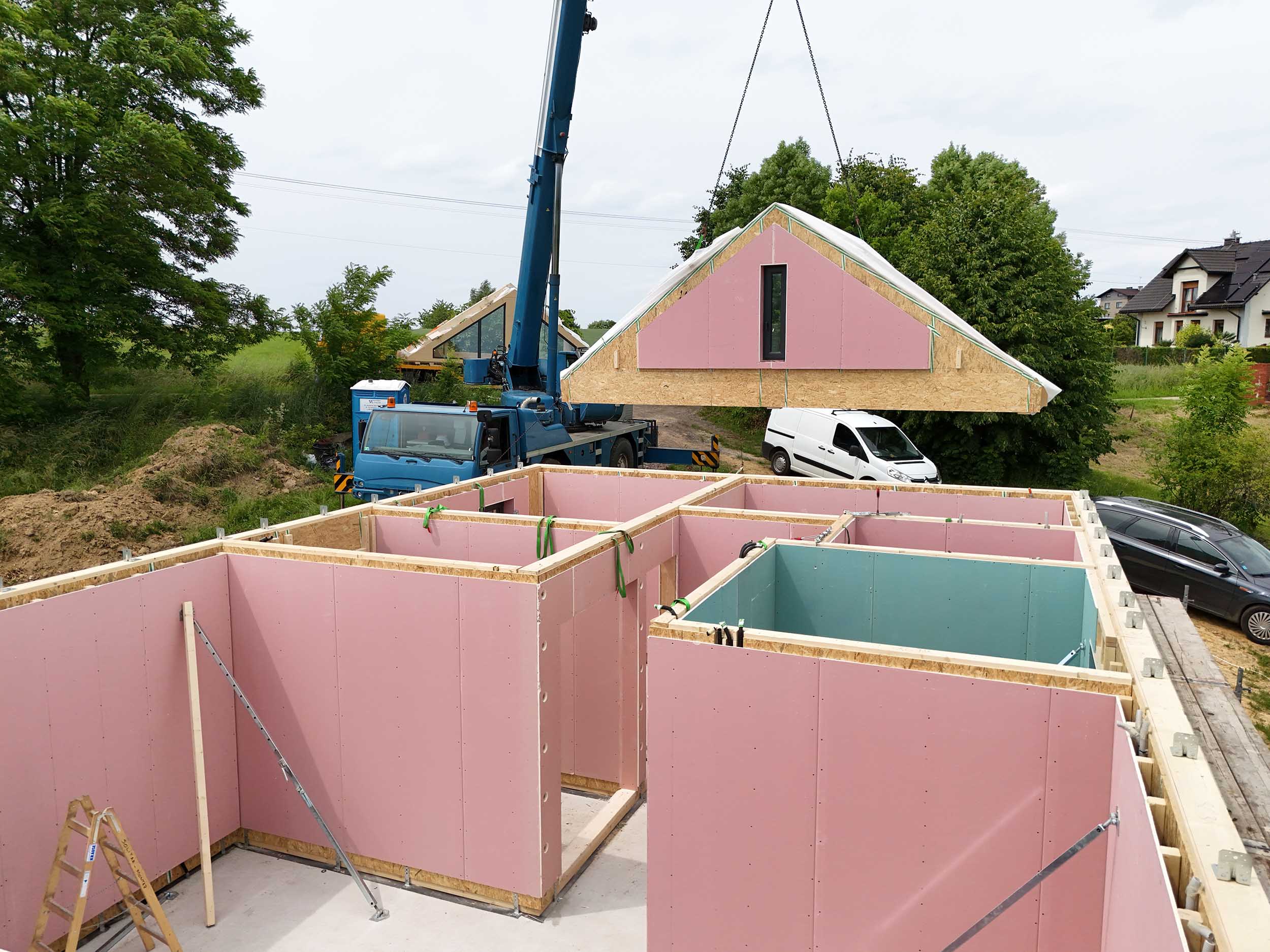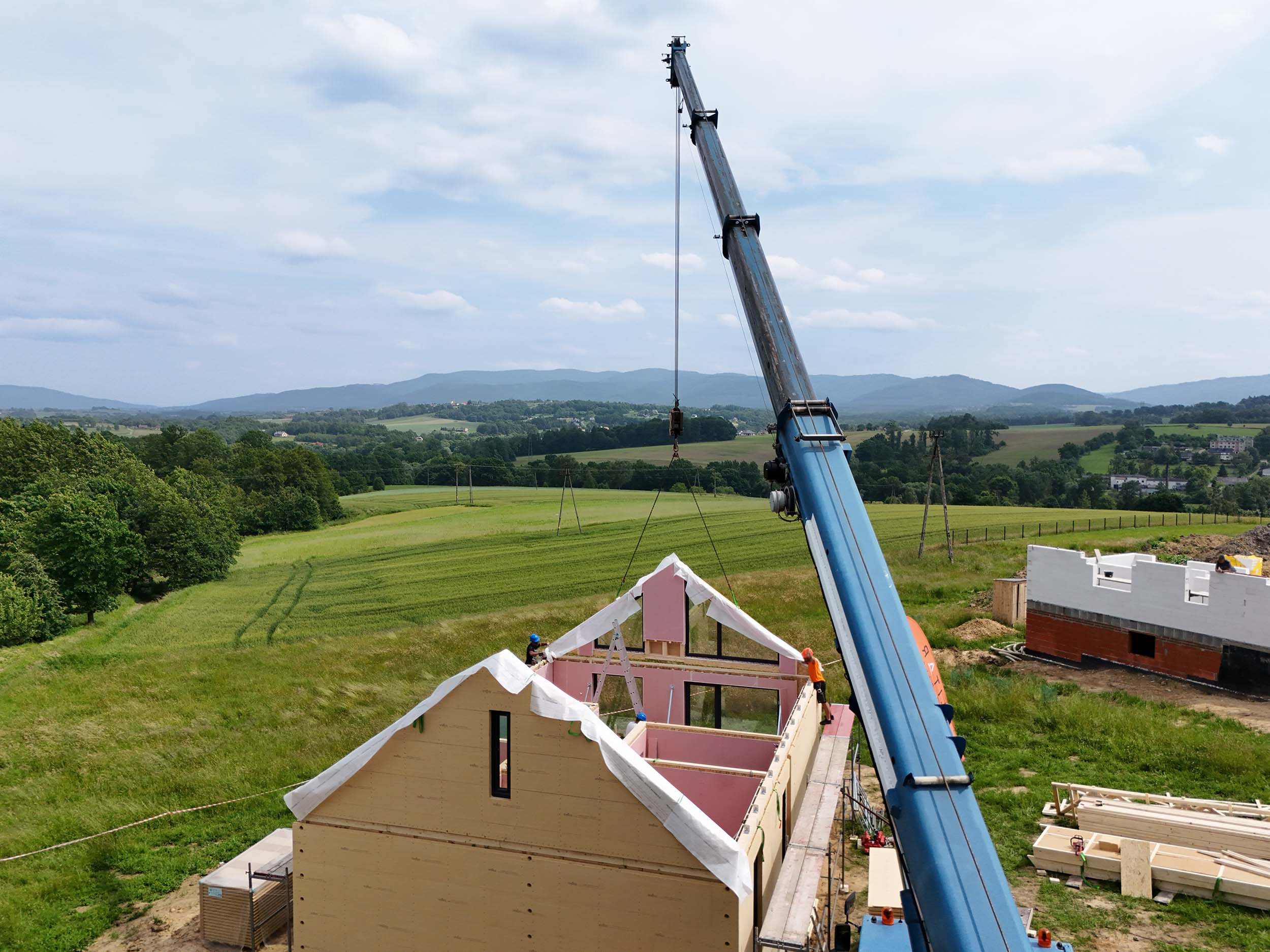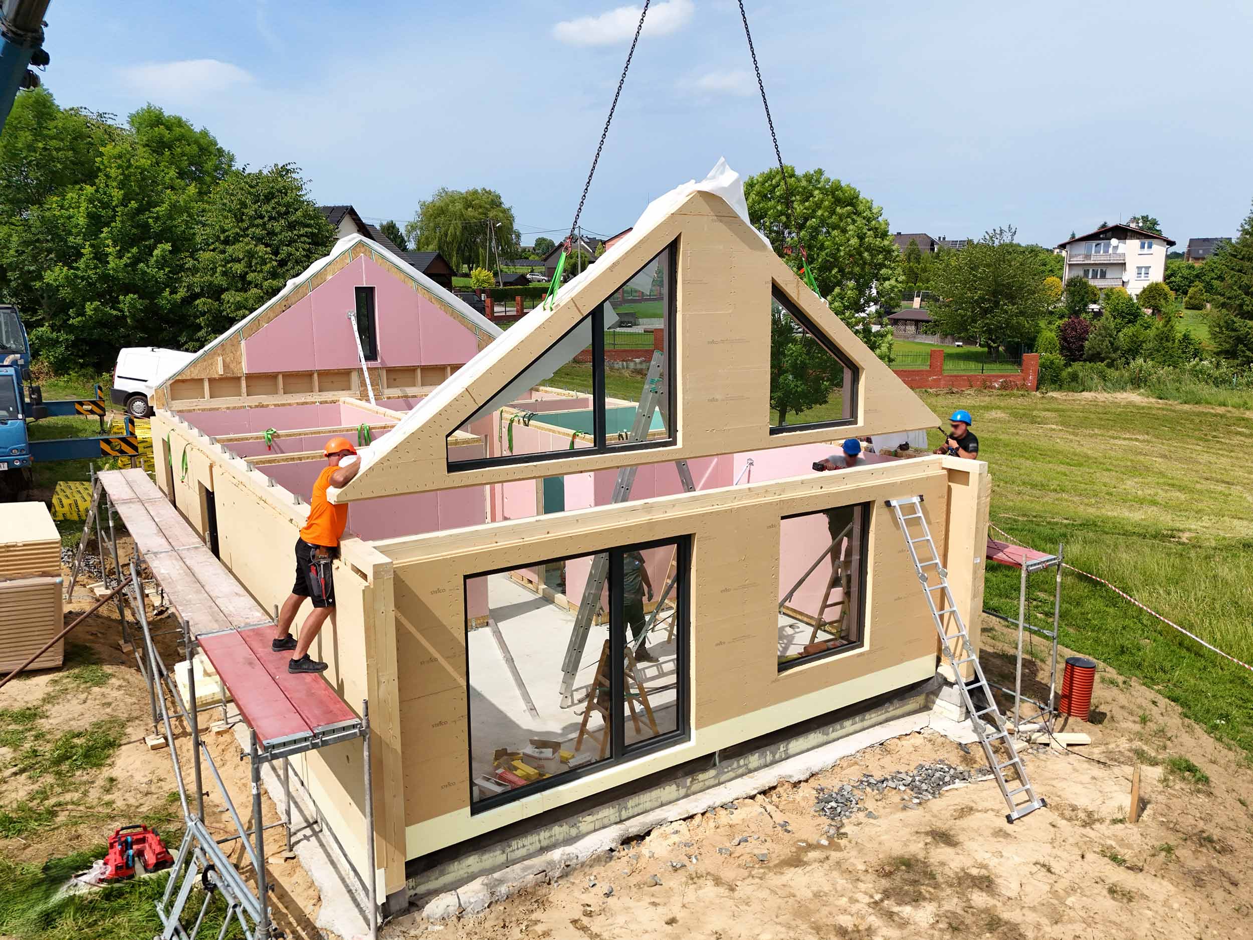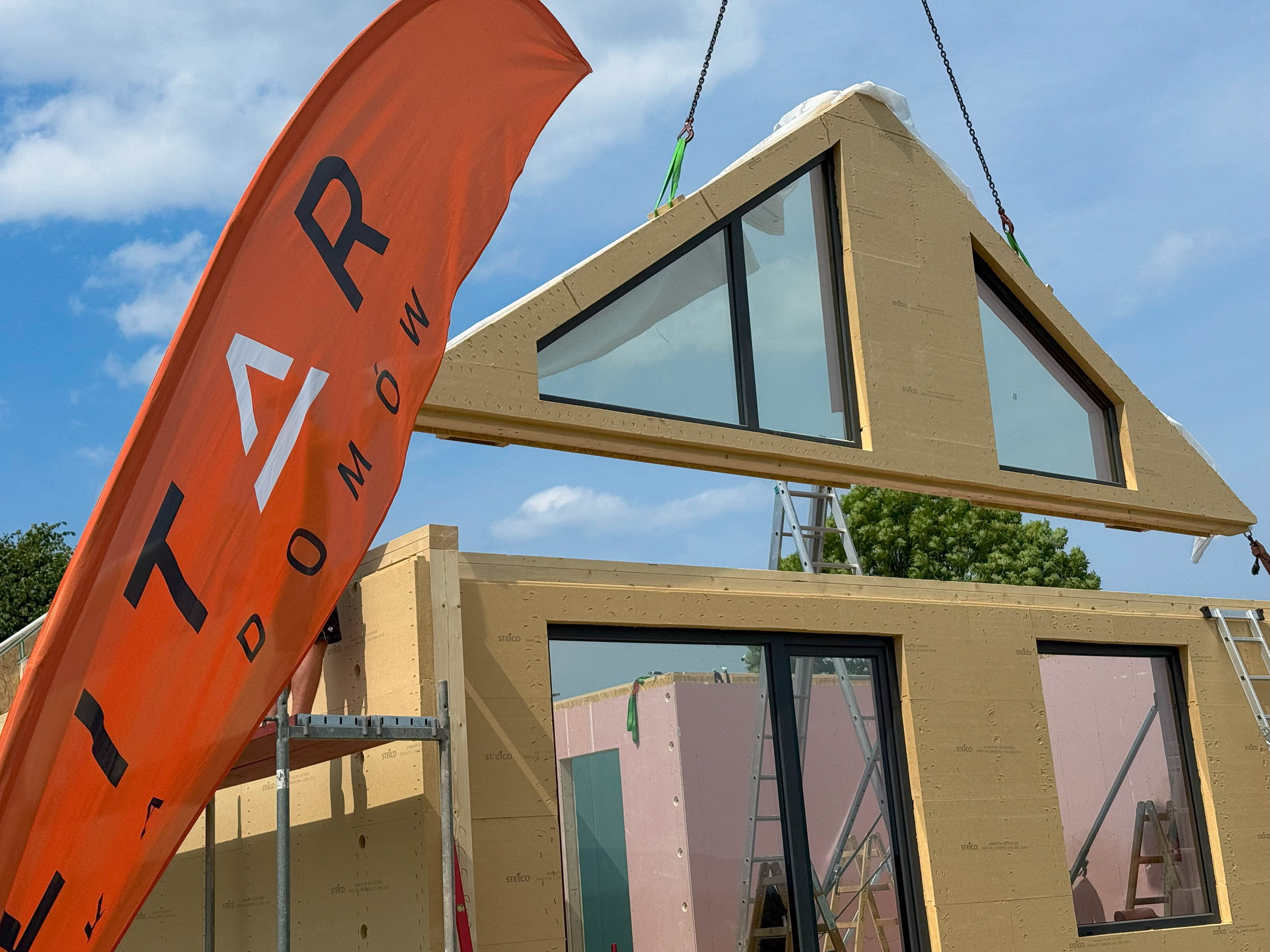 W Jasienicy zakończono montaż nowoczesnego, prefabrykowanego domu drewnianego SOLE 70 z antresolą. To całoroczny budynek o zwartej, energooszczędnej bryle, który idealnie wpisuje się w ideę nowoczesnej stodoły – połączenia estetyki, funkcjonalności i ekologii.