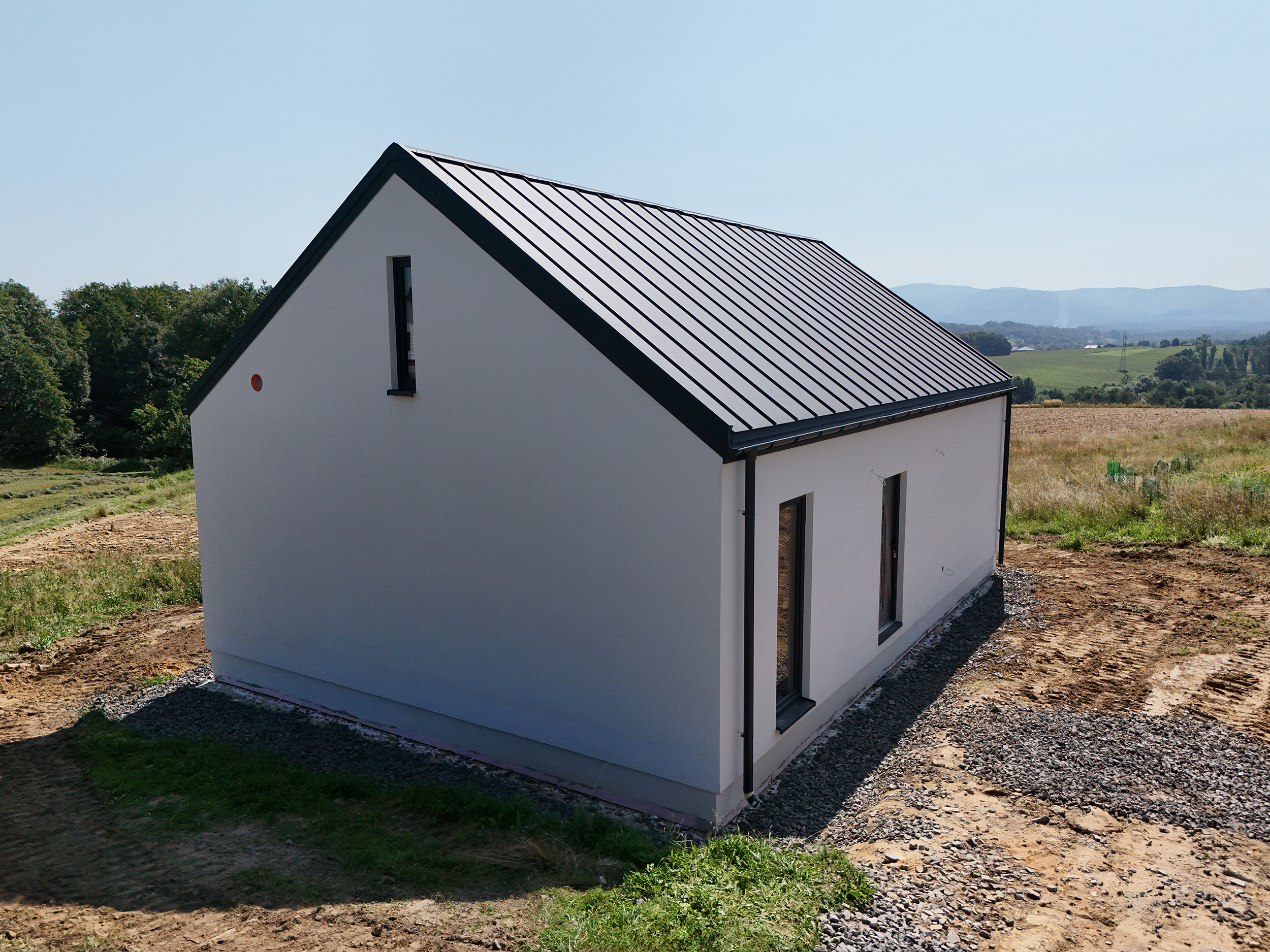 Ściany zewnętrzne osiągają doskonałe parametry izolacyjne (U=0,165 W/(m²·K)), a przesunięcie fazowe temperatury wynosi 14 godzin, co gwarantuje stabilny i przyjemny mikroklimat we wnętrzu nawet w upalne dni.