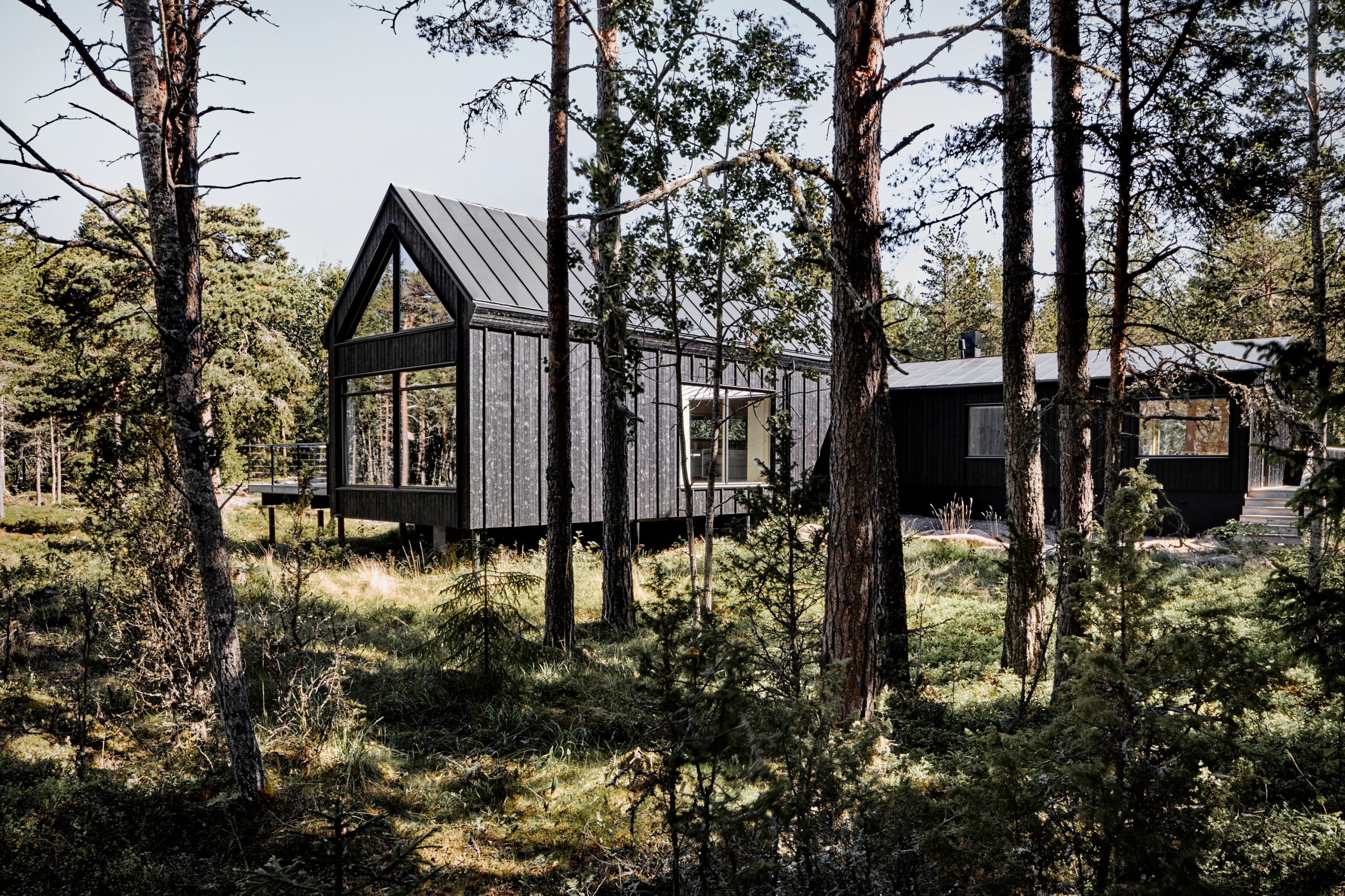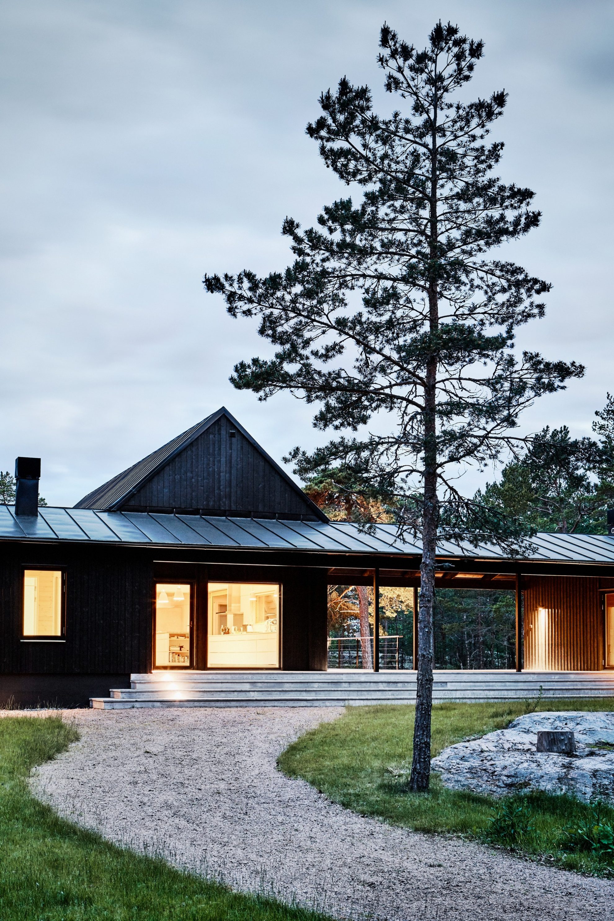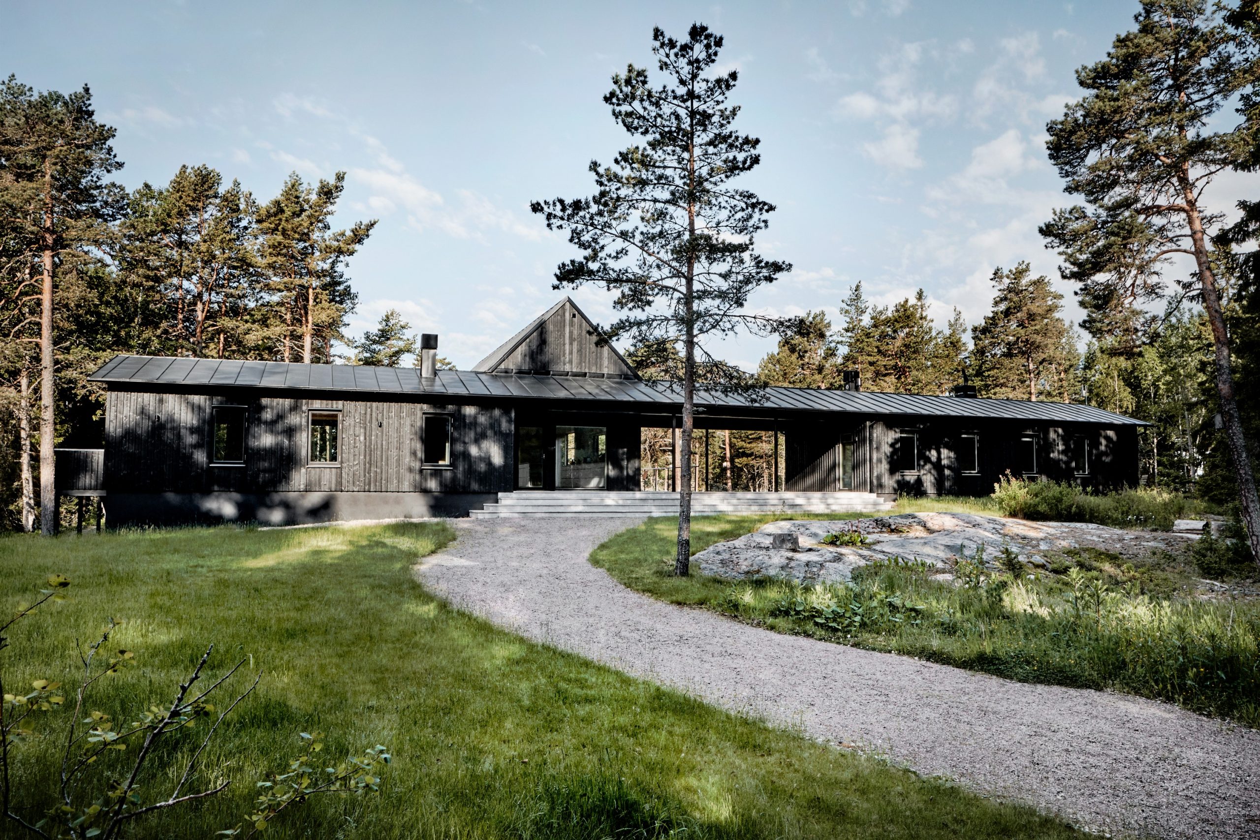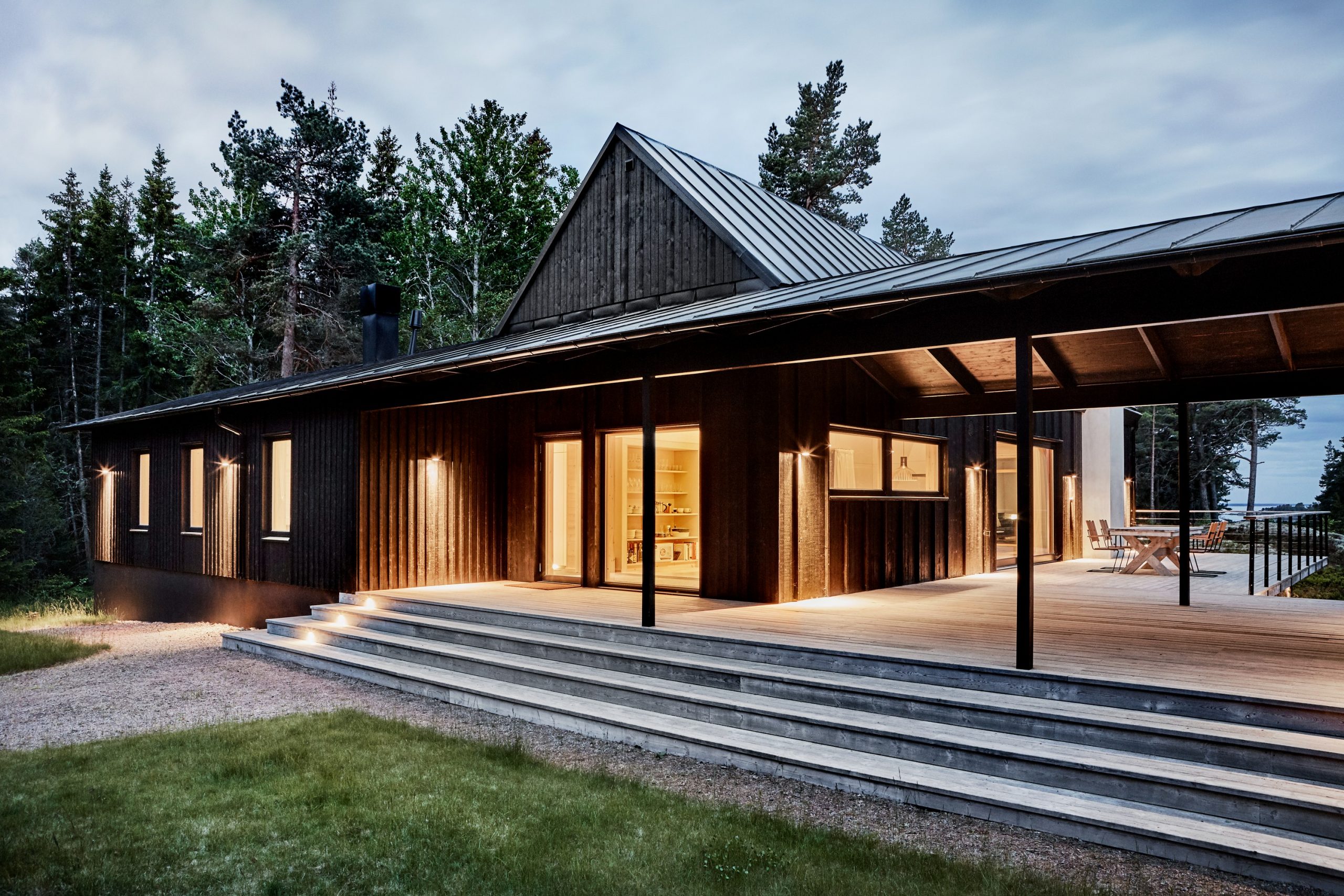 Projekt powstał zgodnie z zasadą: to działka prowadzi projekt. Dzięki wydłużonej bryle, precyzyjnemu ustawieniu okien oraz przemyślanemu rozmieszczeniu pomieszczeń i tarasów, dom otwiera się na zapierające dech w piersiach widoki na morze i lasy archipelagu. Istniejący na działce drewniany domek został zachowany i zintegrowany z nową strukturą wspólnym dachem – tworząc spójną całość, która łączy historię z nowoczesnością. Bryła przypomina nowoczesną stodołę – prostą, lecz funkcjonalną, w której dominuje drewno, lekkość konstrukcji i związek z krajobrazem. Aby dopasować się do ukształtowania terenu, centralną część domu wsparto na stalowych słupach – dzięki temu budynek wydaje się unosić nad ziemią. To architektura, która szanuje miejsce, nie dominując nad nim.
