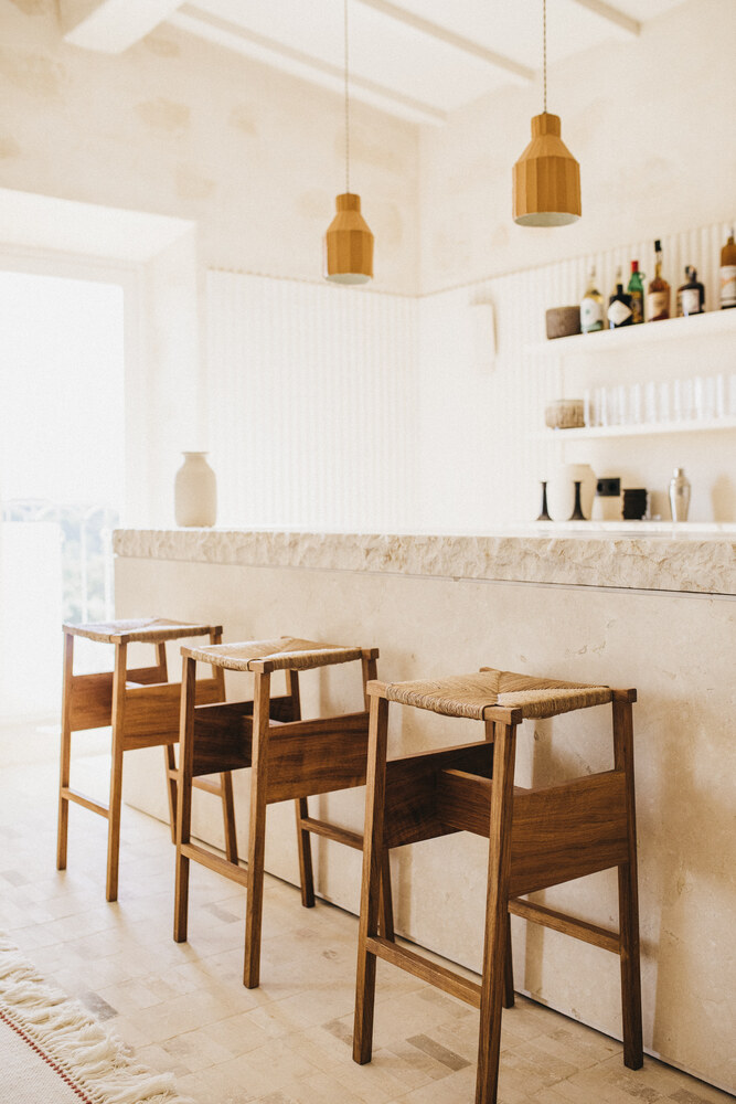 Son Blanc to projekt położony w sercu odnowionego, tradycyjnego domu wiejskiego, który łączy wiejskie życie, piękny krajobraz i tradycyjne rolnictwo z nowoczesnym podejściem do architektury. Renowacja tego obiektu rozpoczęła się od głównego domu, który był praktycznie w ruinie, ale dzięki skrupulatnej pracy udało się zachować oryginalną konstrukcję, odsłaniając istniejące sklepienia i łuki. Projekt został zaprojektowany tak, by jak najlepiej zintegrować się z naturą wyspy, co znalazło odzwierciedlenie w organicznych formach i materiałach, które zostały użyte w aranżacji wnętrz.
