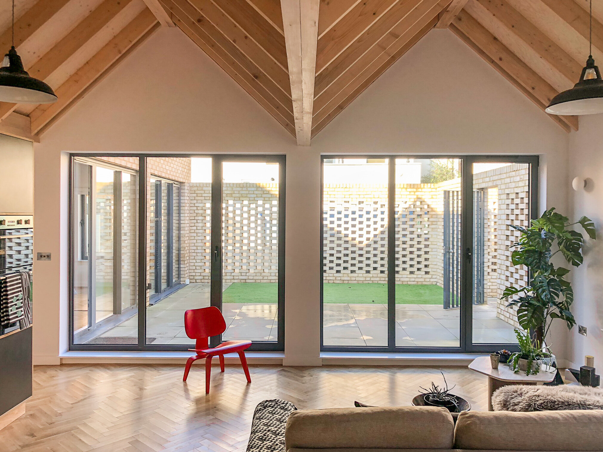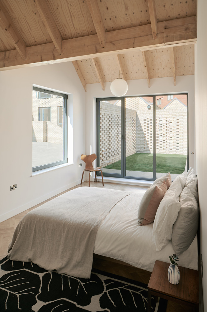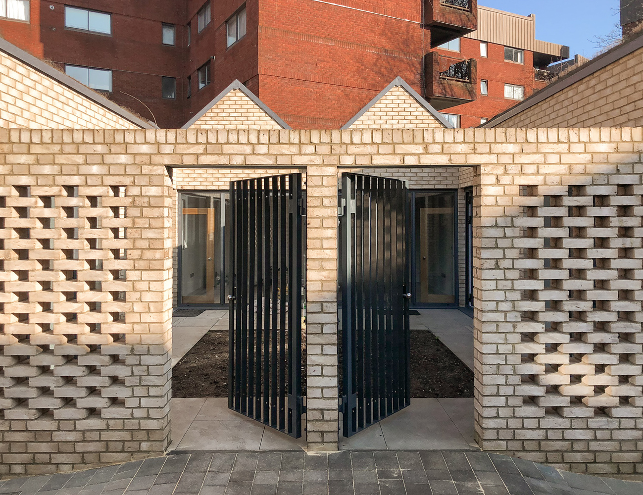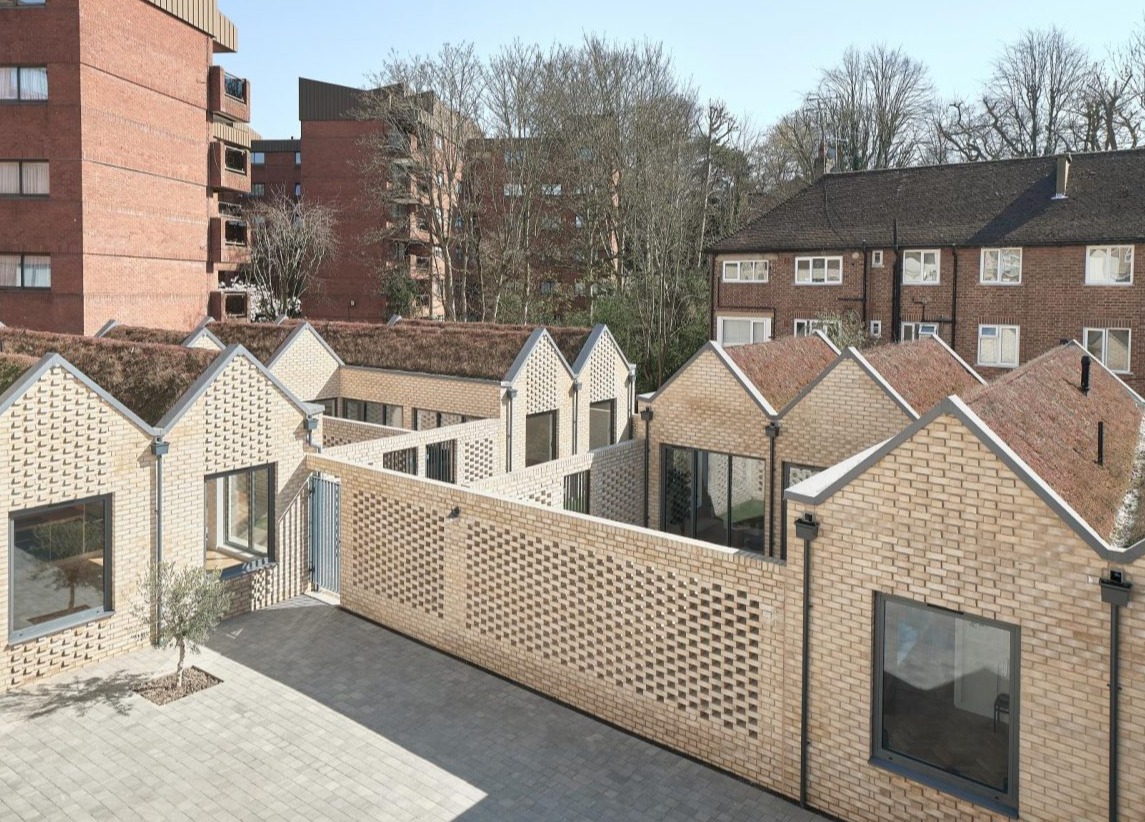 Projekt składa się z trzech nowo wybudowanych jednopiętrowych domów, każdy z dwoma prywatnymi dziedzińcami, które umożliwiają kontakt z naturą i intymność przestrzeni. Dodatkowo, częściowa przebudowa istniejącego dwukondygnacyjnego bloku pozwoliła na wybudowanie kolejnych dwóch mieszkań, które świetnie łączą nowoczesne rozwiązania z tradycyjnymi elementami, jak skośne zielone dachy, które nawiązują do londyńskich tradycji budowlanych. Wystające ozdobne cegły oraz perforowane ściany między domami zapewniają prywatność, a jednocześnie wprowadzają estetyczną teksturę do elewacji.