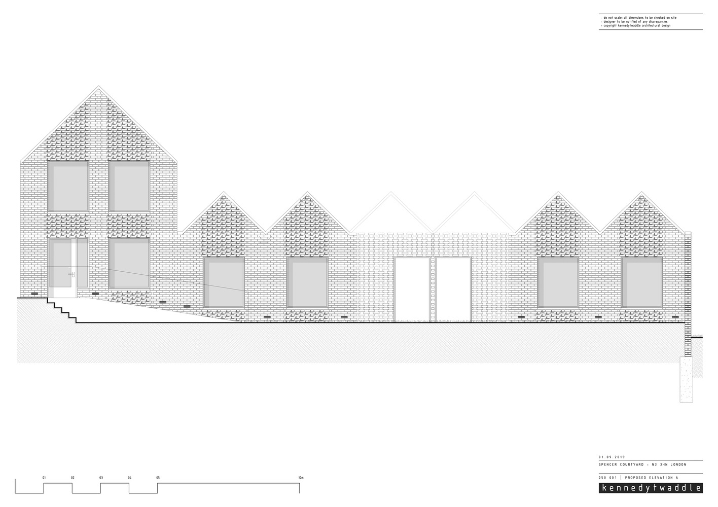 Spencer Courtyard to unikalne osiedle składające się z pięciu nowych mieszkań, które powstały na ciasnym terenie poprzemysłowym w Finchley. Projekt ten zmagał się z wieloma trudnościami związanymi z wcześniejszym użytkowaniem terenu, jednak dzięki przemyślanej koncepcji udało się stworzyć spójną przestrzeń, która harmonijnie wpisuje się w lokalny kontekst.