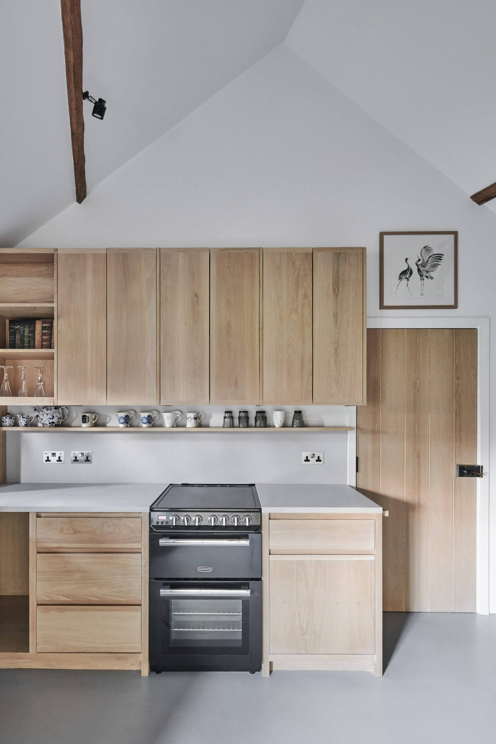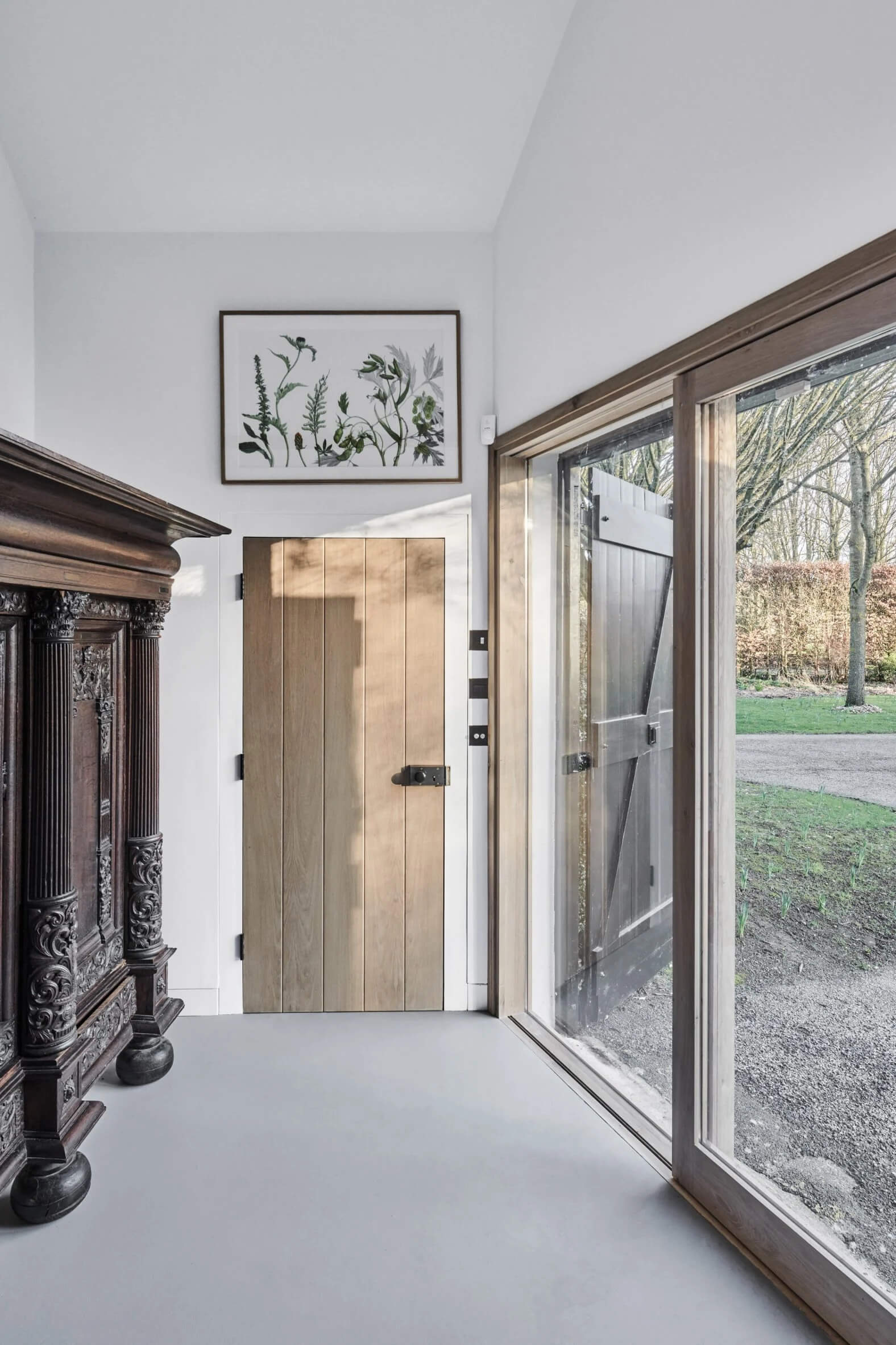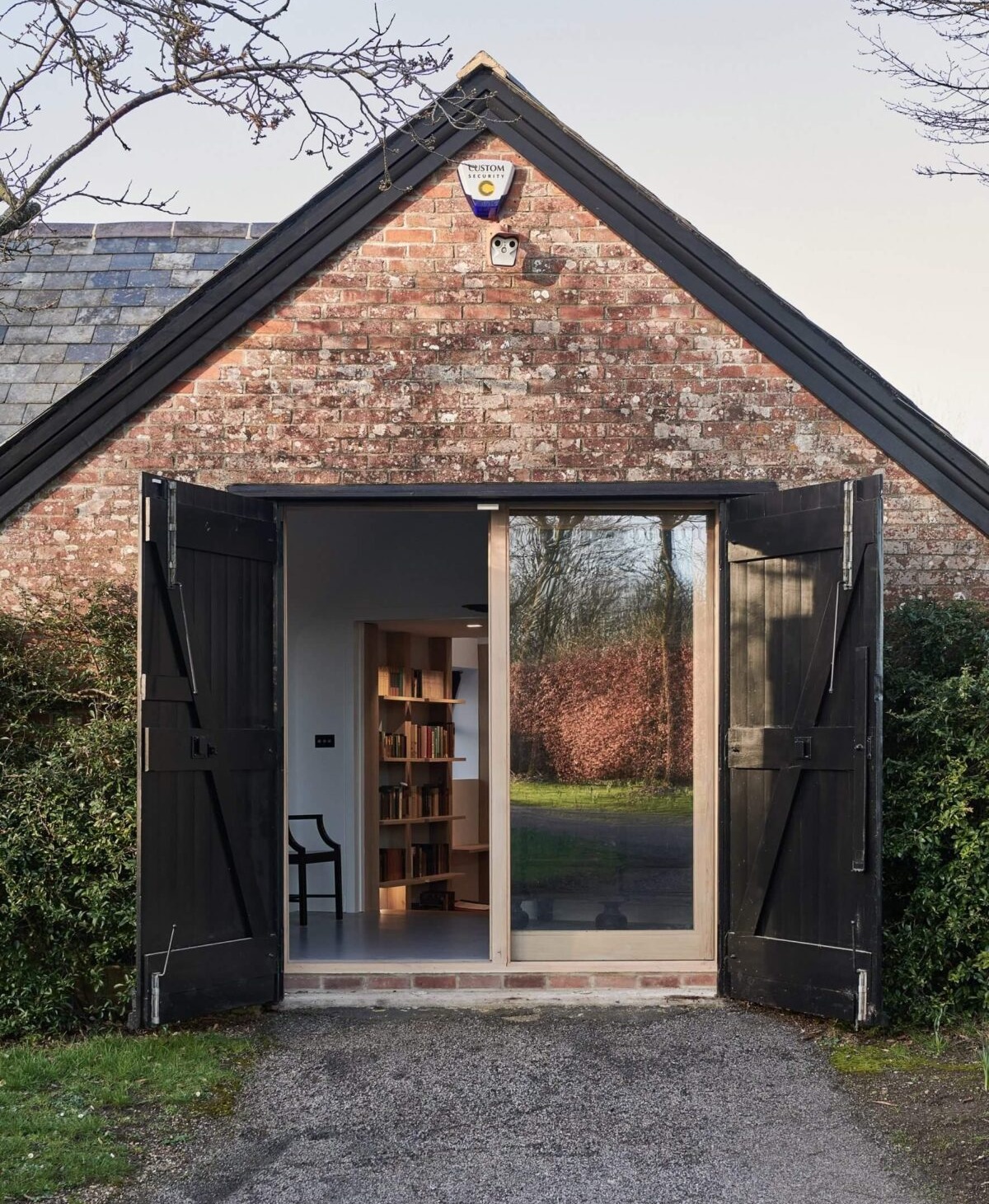 Biuro znajduje się w północnej części budynku, oddzielone od biblioteki szklanymi drzwiami łukowymi. Dodatkowo budynek mieści małą kuchnię oraz łazienkę. Projekt łączy funkcjonalność, klasyczną estetykę i szacunek dla historii, czyniąc tę przestrzeń idealnym przykładem nowoczesnej stodoły.