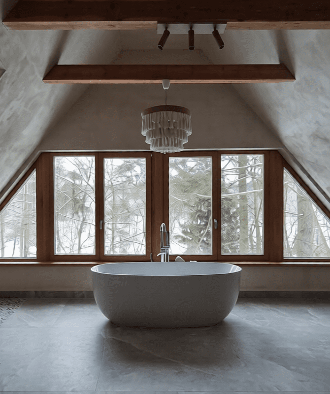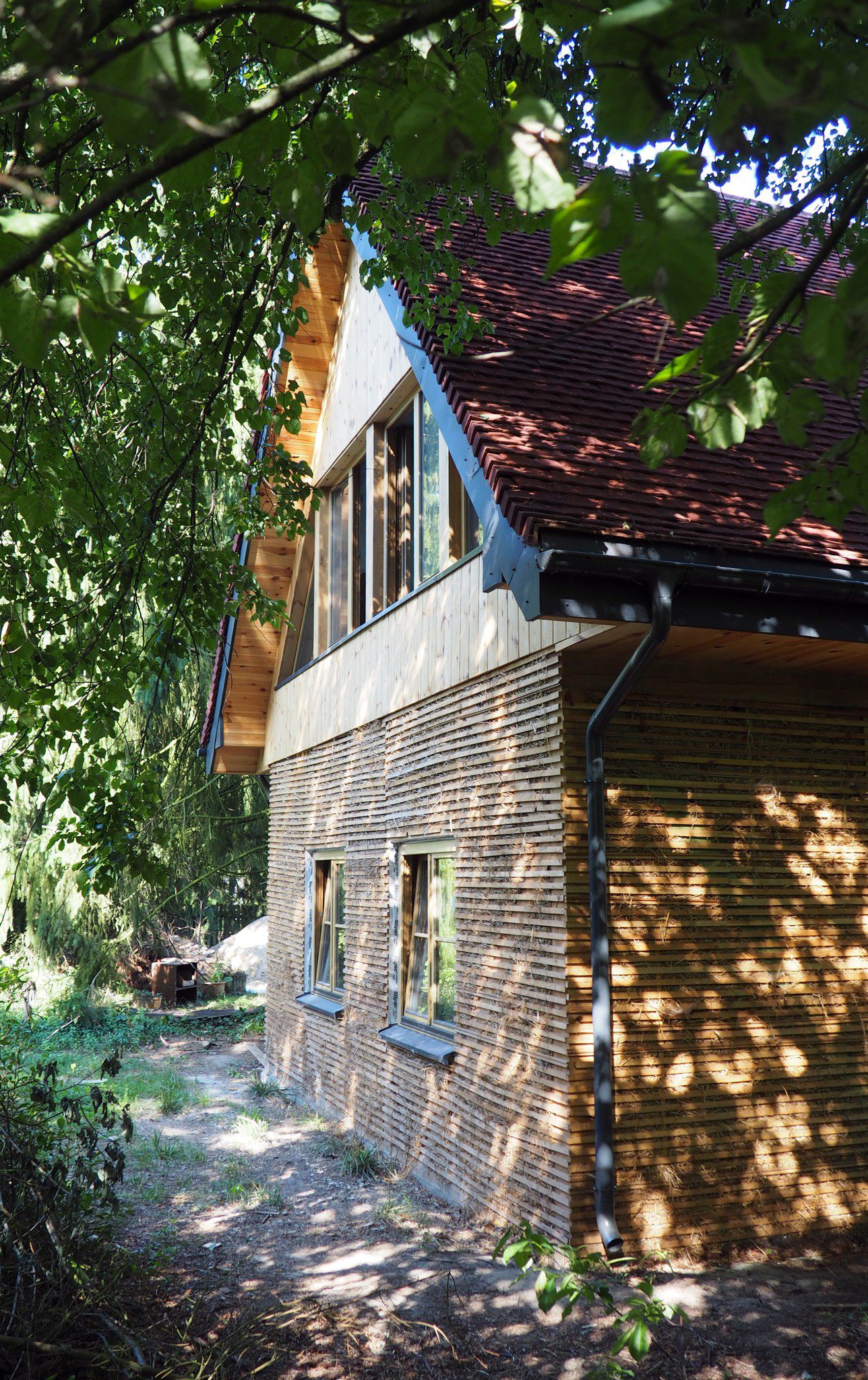 Ukryty wśród gęstych drzew, wiekowy dom wzniesiony z cegły i polnych kamieni łączonych zaprawą wapienną, z dodatkiem glinobitki, wymagał zdecydowanej interwencji. Inwestor podjął decyzję o gruntownej przebudowie poddasza, koncentrując się jednocześnie na maksymalnym zachowaniu autentycznej struktury murów parteru.