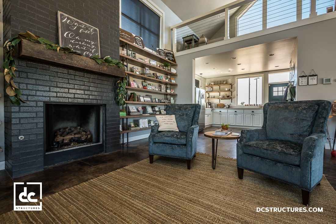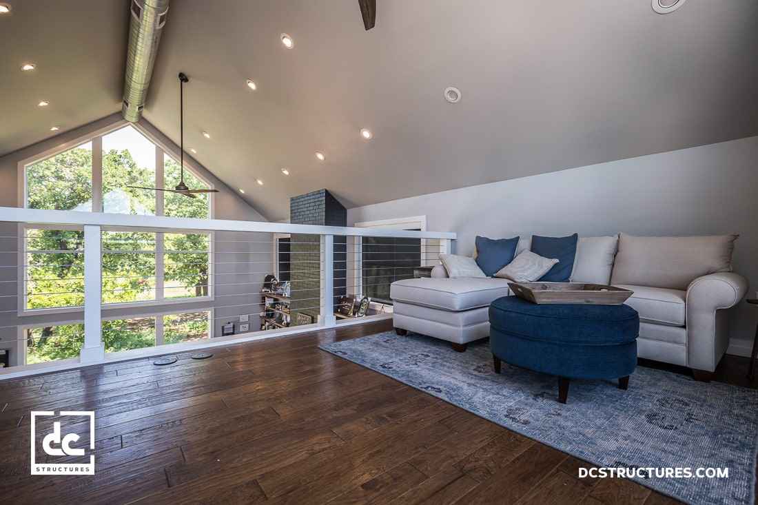 Na piętrze znajduje się mały loft, który pełni funkcję dodatkowego biura lub strefy wypoczynku. To miejsce, w którym można oderwać się od codzienności, jednocześnie pozostając w kontakcie z resztą domu dzięki otwartej konstrukcji. Naturalne materiały, duże przeszklenia i przestrzeń pełna światła sprawiają, że budynek zyskuje lekkość i ponadczasowy charakter. Projekt ten pokazuje, że nowoczesna stodoła może być jednocześnie elegancka, funkcjonalna i bliska naturze – idealna dla tych, którzy cenią prostotę i nowoczesny design.