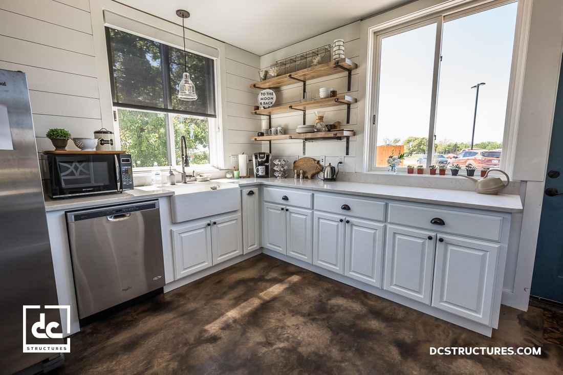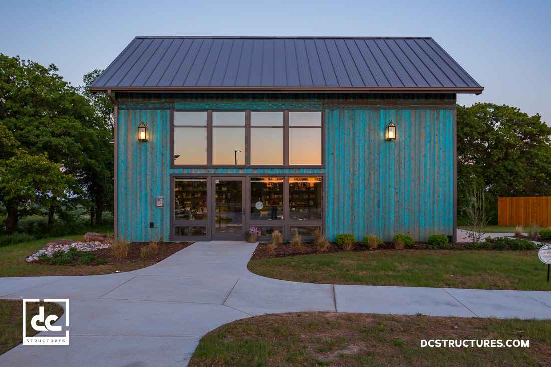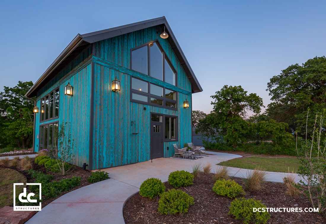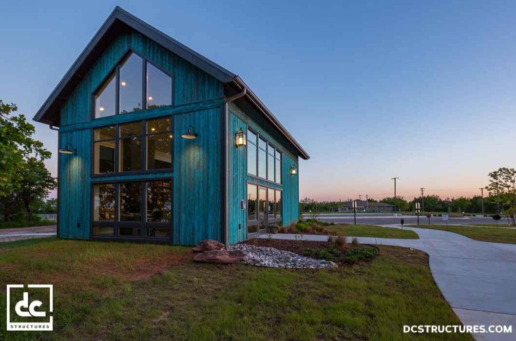 Ten niezwykle prosty w formie dom o powierzchni 90 m² to przykład architektury, w której minimalizm spotyka funkcjonalność. Konstrukcja otwiera się na otoczenie dzięki dużym przeszkleniom, w tym dwóm szklanym ścianom osłonowym, które wpuszczają do wnętrza ogromną ilość naturalnego światła. Całość zaprojektowano bez wewnętrznych słupków, dzięki zastosowaniu ukrytych, równoległych wiązarów dachowych. Taka czysta, przejrzysta struktura nawiązuje do estetyki, jaką wyróżnia nowoczesna stodoła – prostota bryły, maksymalne wykorzystanie światła i harmonia z naturą.