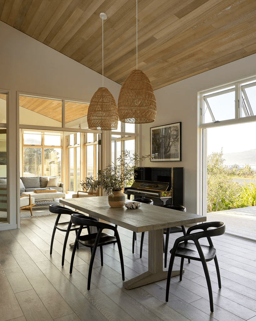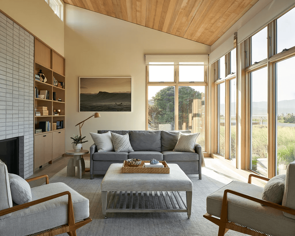 W realizacji Stinson Beach architekci wnętrz z Anyon Interior Design skupili się na wprowadzeniu minimalistycznej elegancji, która współgra z naturalnym krajobrazem kalifornijskiego wybrzeża. Przestrzeń charakteryzuje się subtelną paletą kolorów, naturalnymi materiałami i otwartym układem wnętrz, co doskonale wpisuje się w estetykę nowoczesnej stodoły – łączącej surowość z ciepłem, funkcjonalność z estetyką.