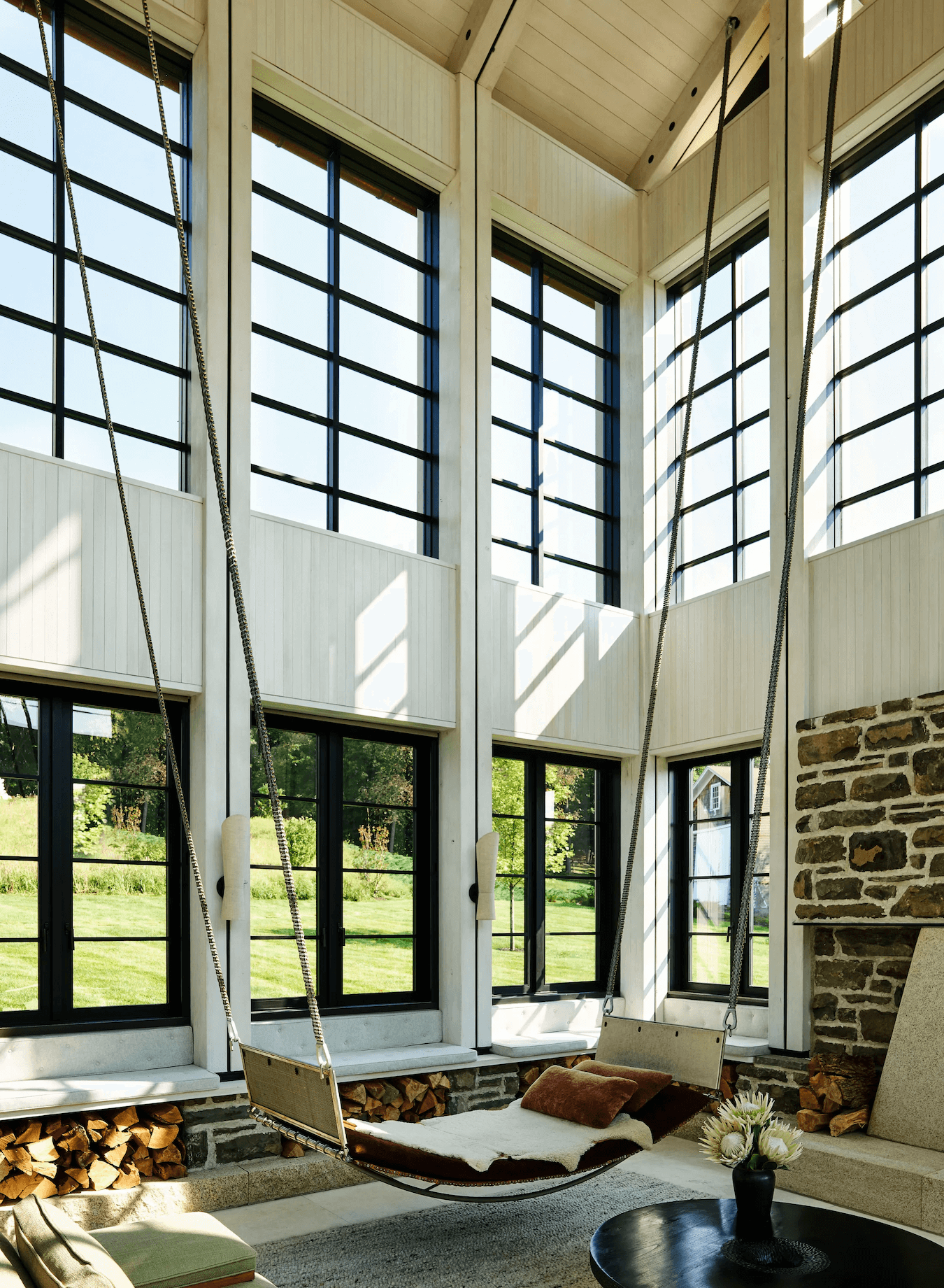Nowoczesna stodoła autorstwa Nielsa Schoenfeldera, stworzona dla Beverly Kerzner, to przykład wyjątkowej współpracy, która trwa ponad 20 lat. Ten unikalny projekt powstał na rozległej, 127-hektarowej działce w malowniczej dolinie rzeki Hudson, gdzie krajobraz wzgórz, rzeki i historycznych stodół zainspirował do stworzenia domu głęboko zakorzenionego w naturze.