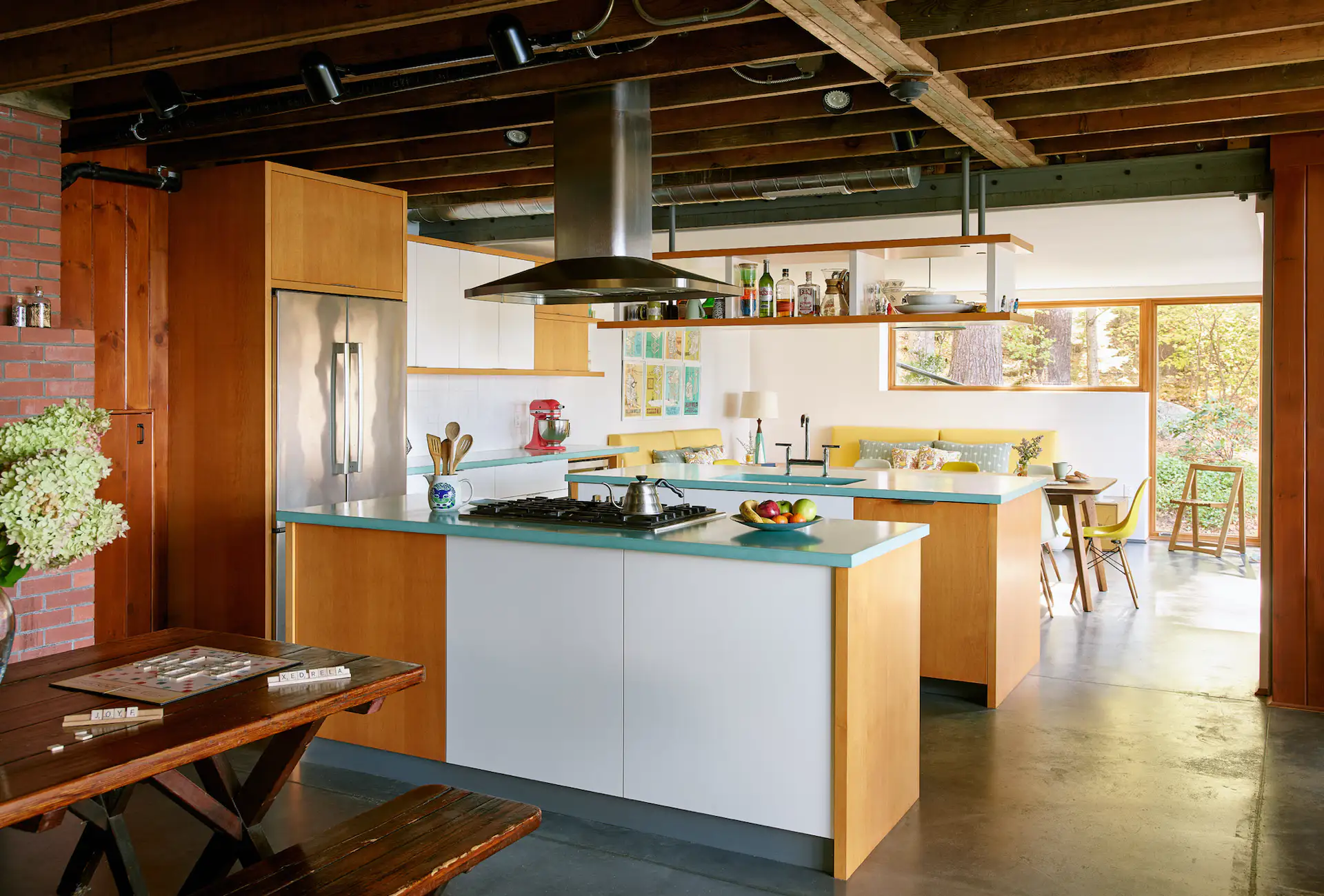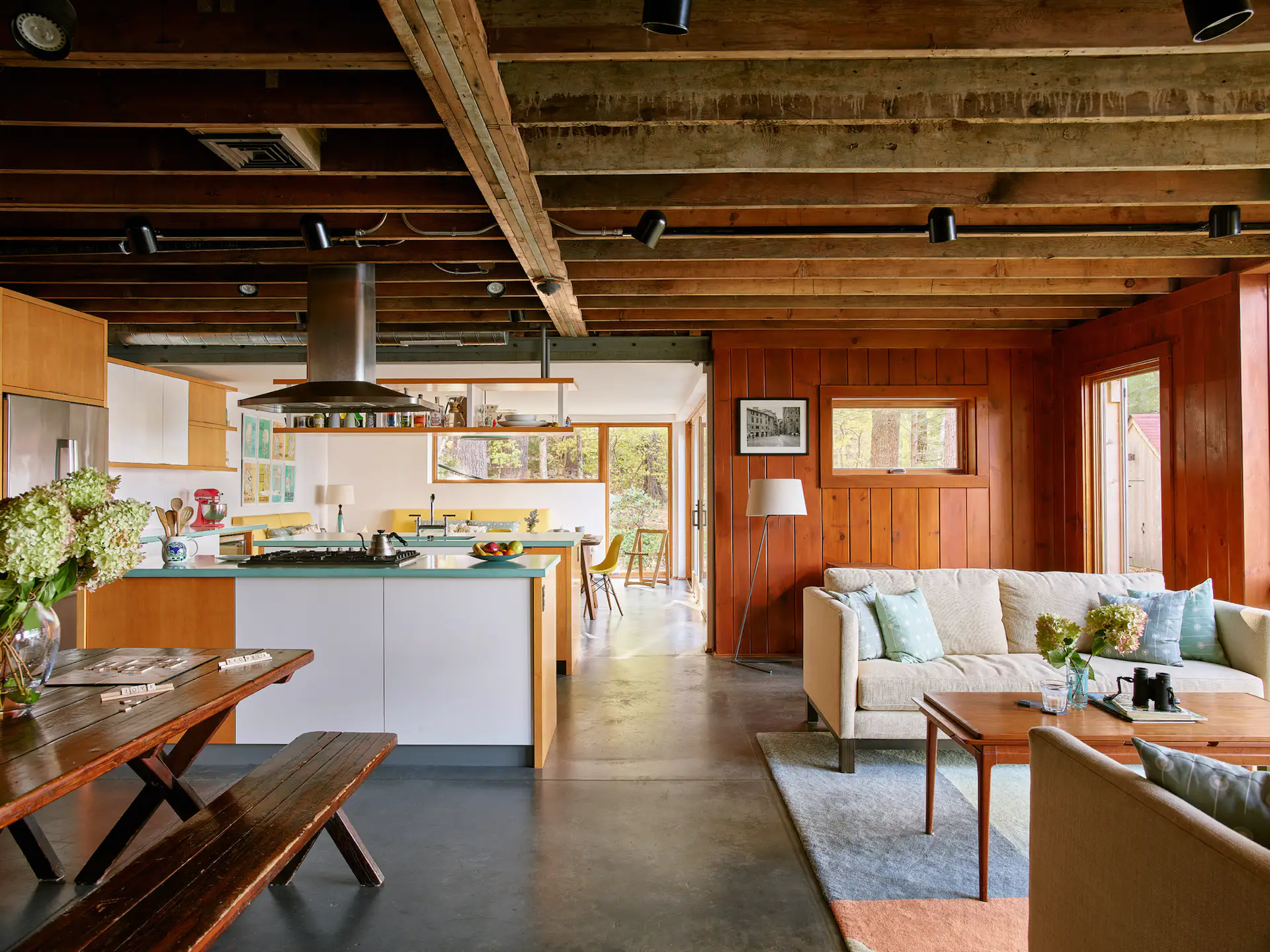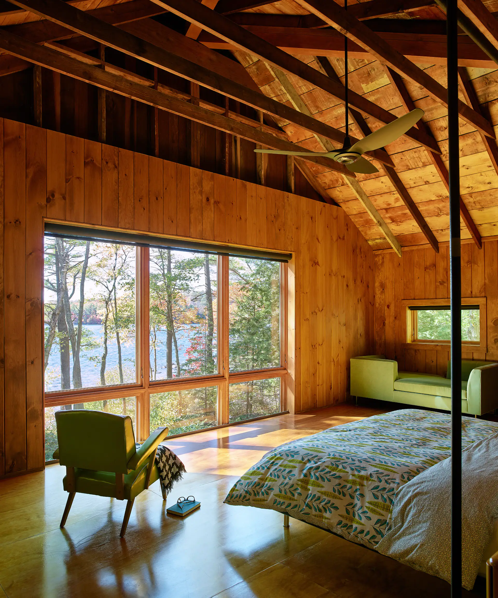 Stodoła nad jeziorem w regionie Monadnock w New Hampshire to projekt, który łączy rustykalny urok z nowoczesnym stylem, zachowując ducha lat 50. XX wieku. Dzięki pracy architektki Katie Cassidy Sutherland, budynek, będący niegdyś letnią bazą obozową, przeszedł subtelną renowację, która koncentrowała się na poprawieniu komfortu, bez utraty charakteru. Kluczowym wyzwaniem było ogrzanie przestrzeni w chłodne miesiące, przy zachowaniu sękatych desek i drewnianych belek, które były integralną częścią wnętrza.