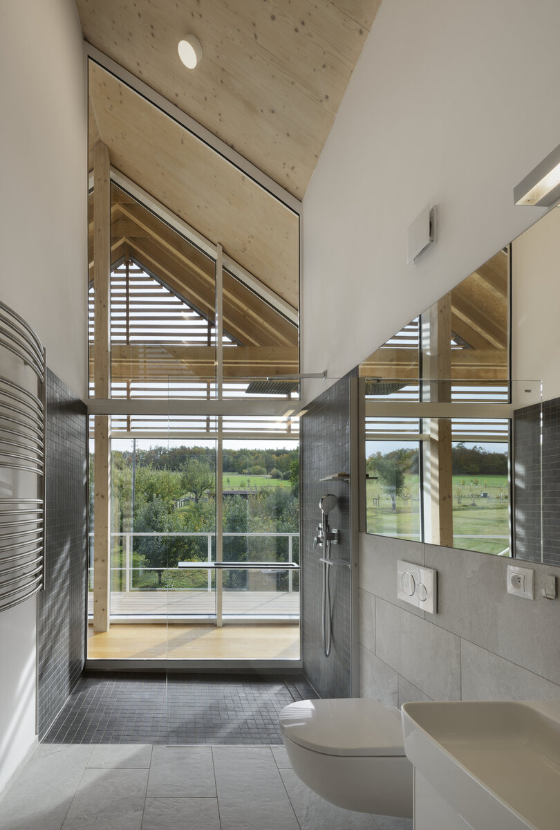 Fasada jest przesunięta o około 1,50 m, aby zapewnić wystarczającą ochronę przed słońcem. Takie rozwiązanie chroni wnętrze przed wzrokiem ciekawskich, a użytkowanie budynku jest ledwo widoczne z zewnątrz.