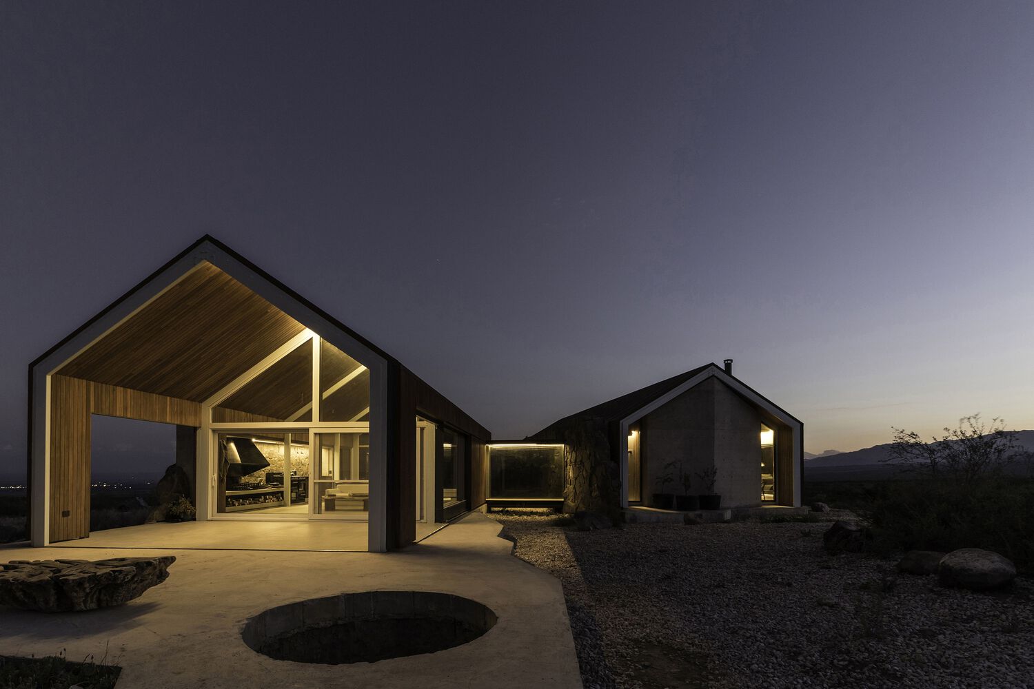 Aby w pełni wykorzystać widoki, pierwotnie cztery fasady zostały przekształcone w osiem. W tym celu budynek podzielono na dwa oddzielne moduły – jeden pełni funkcję przestrzeni wspólnej, a drugi mieści sypialnie. Obie części połączono przeszklonym mostem, który dodaje lekkości i pozwala na harmonijne przenikanie się architektury z otoczeniem.